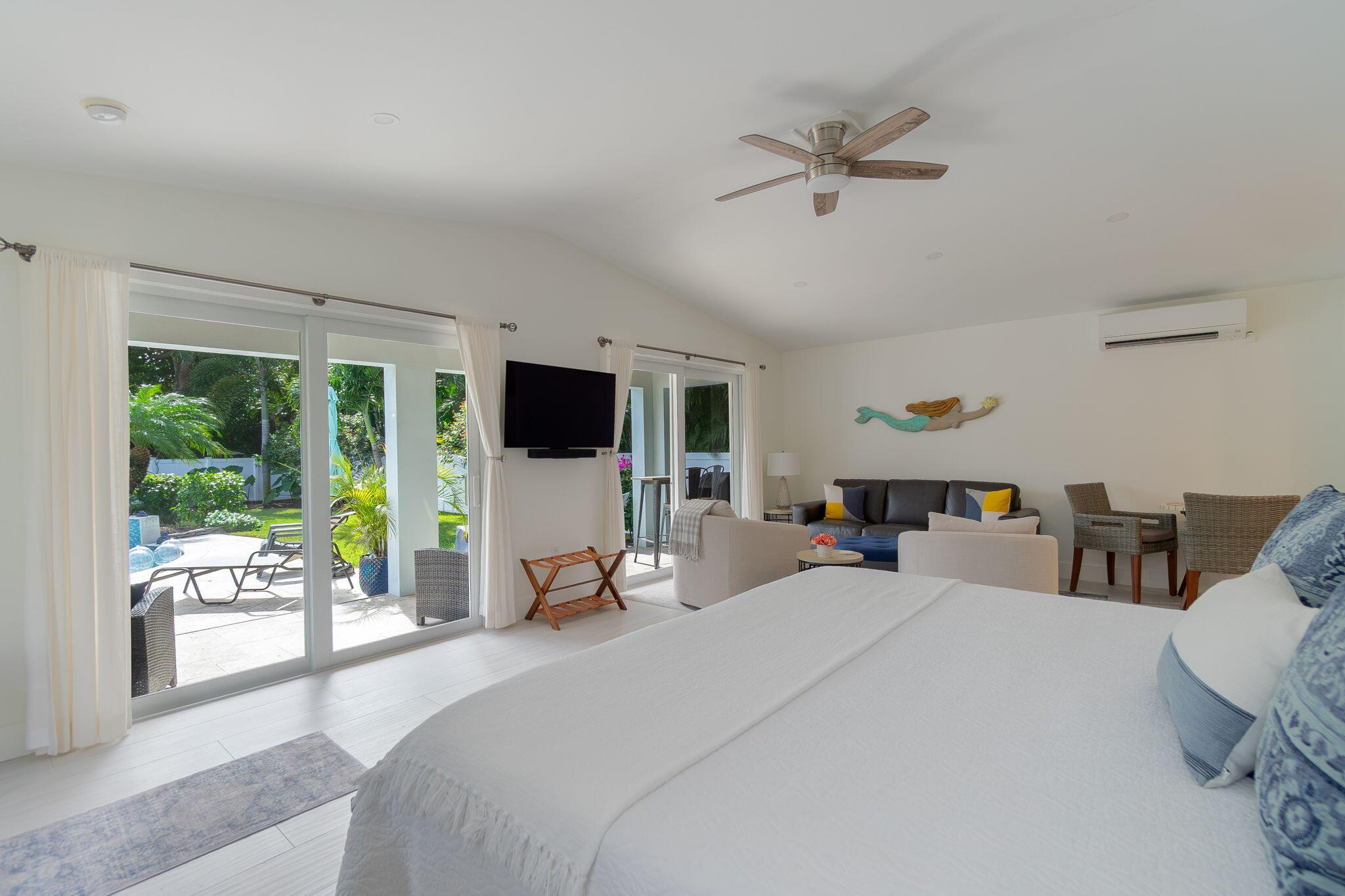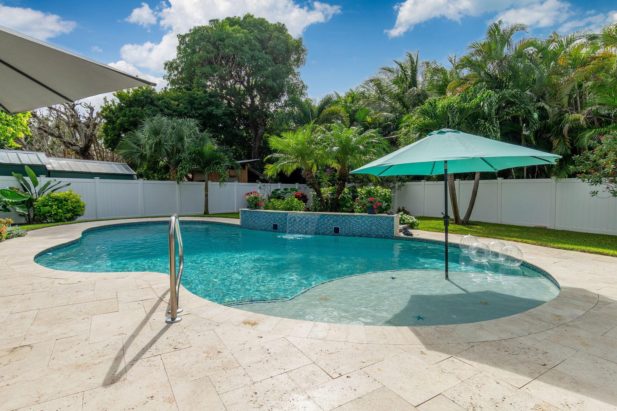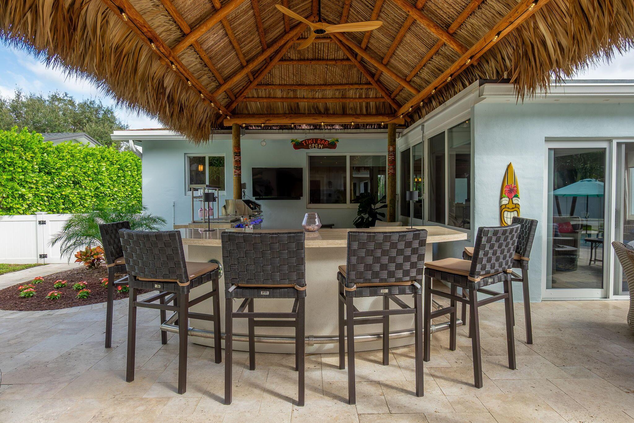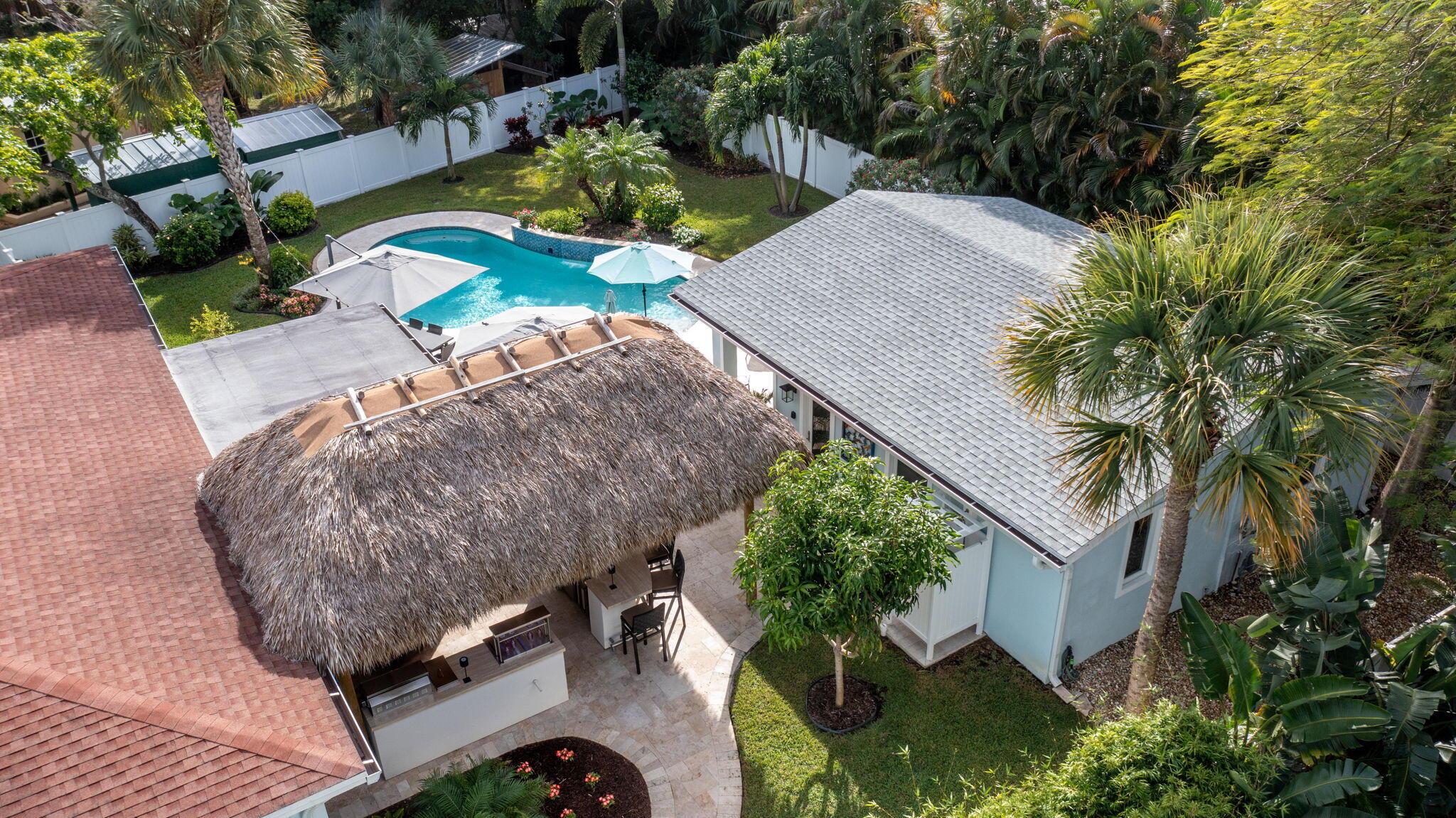 Welcome to your private tropical retreat in Delray Beach! This beautifully updated single-family home features a 2-bedroom, 2-bath main residence on one level, showcasing impact glass throughout, modern finishes, and a bright, open layout designed for effortless Florida living. Step outside to your own resort-style backyard oasis--complete with a sparkling swimming pool, lush landscaping, and an inviting tiki hut with a built-in BBQ, bar seating, and ample space for entertaining. Every detail of this outdoor paradise has been thoughtfully curated to create the ultimate relaxation and entertainment setting. The property also includes a beautiful guest house, offering bedroom, full bath, living area, and complete kitchen,