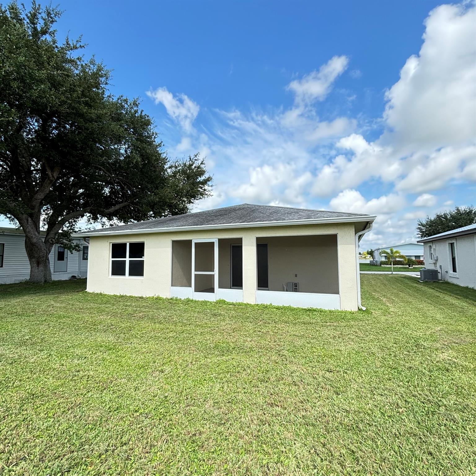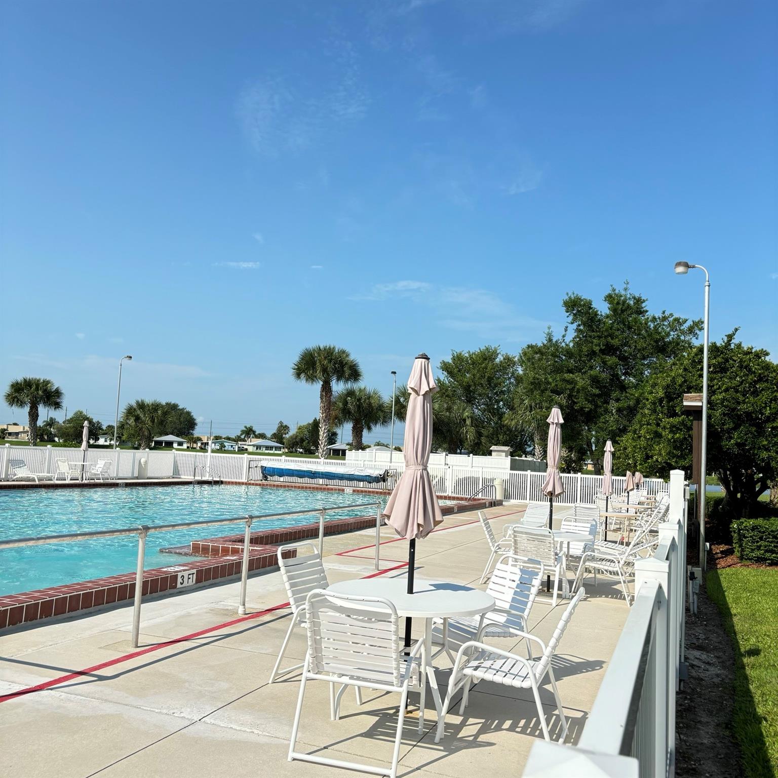 Welcome to Spanish Lakes Fairways, a vibrant 55+ community where comfort & leisure blend seamlessly. Enjoy a wealth of amenities incl free golf, big clubhouse, 2 heated pools, tennis, pickleball, shuffleboard, bocci, exercise & more. This 2-bedroom, 2-bath CONCRETE BLOCK home features a split floor plan, walk-in closet & shower in main bedroom, all appliances including W/D, private covered/screened lanai, 1-car garage & double driveway for added parking. The home is located in the pet-friendly area. Lawn care, trash + amenities incl in monthly land-lease fee, ensuring a hassle-free lifestyle.