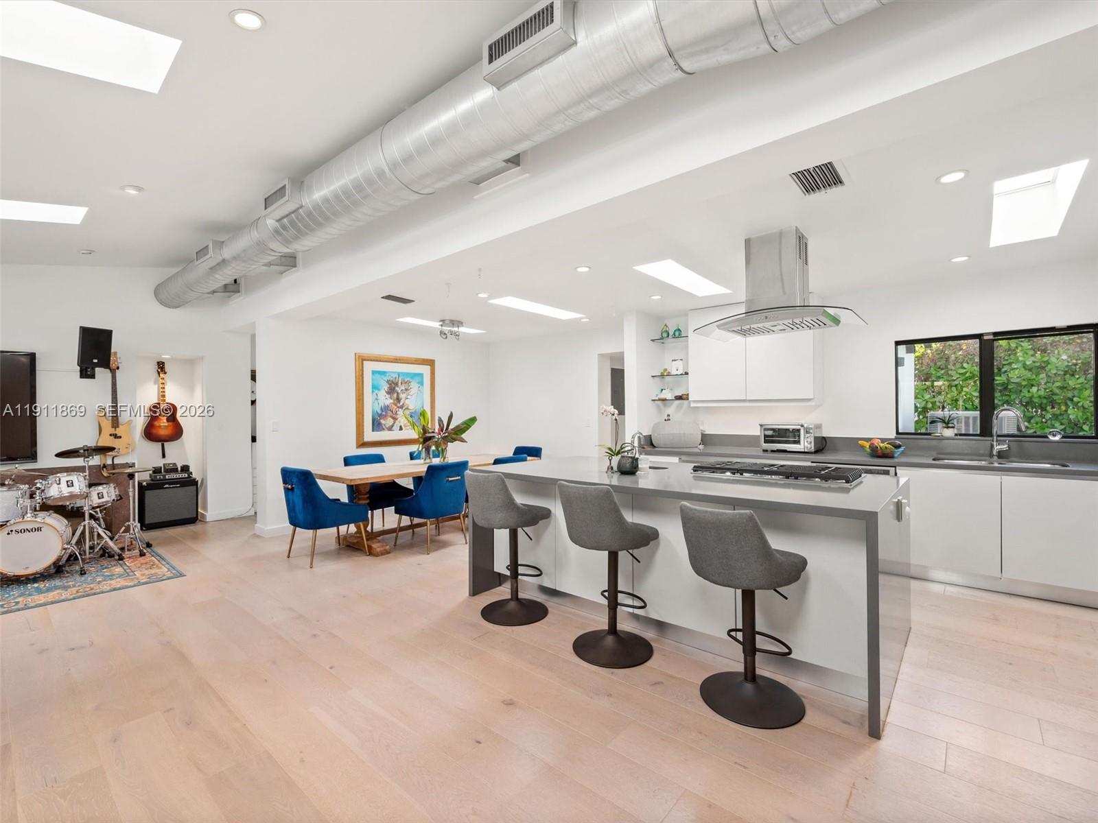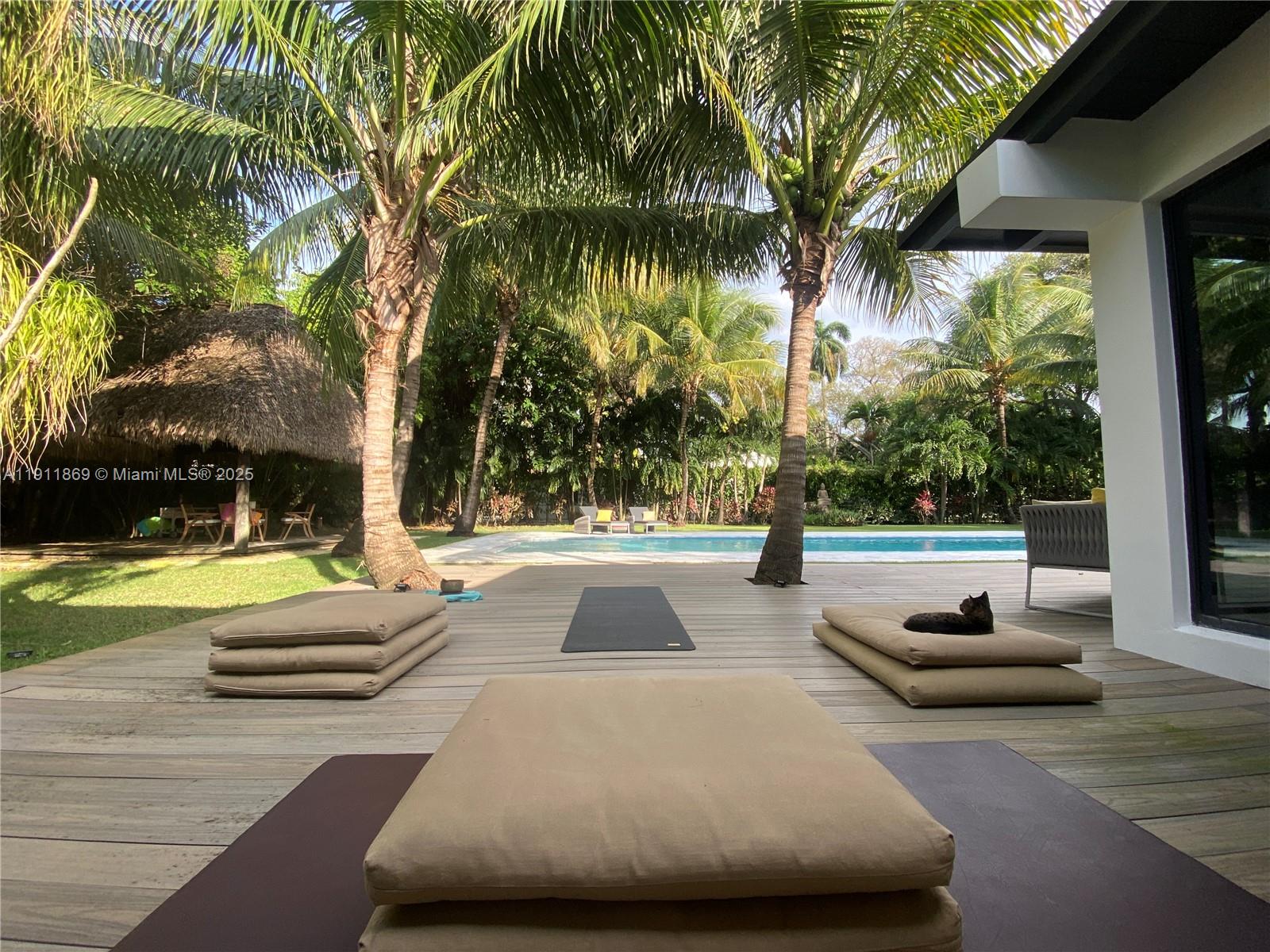 Enter this quiet, tropical retreat with the calming feel of Southeast Asia. Fully Renovated in 2018 this 3 BD/3BA home sits on a 19,600 SF double lot with towering coco palms. Inside, solid oak floors and marble baths ground the home with simple & beautiful materials. The chef’s kitchen opens to a glass-lined living area with views of the garden & pool. The modern home has impact doors & windows, a new roof, and sky lights. A wide deck offers space for meditation or lounging. The tiki hut creates an easy outdoor living area, perfect for relaxing in the shade, reading, or dining. The large salt water pool completes the outdoor sanctuary. The entire setting feels blessed and transportive. Located in El Portal, where streets are lined w mature shade trees and time moves a little slower.