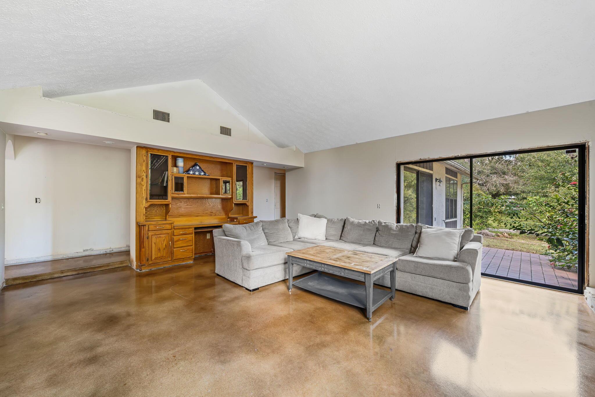 Situated on almost a half-acre lot offering exceptional privacy, this spacious 3BR, 2.5BA home features over 2,000 sq ft under air, with renovations already underway. Interior updates include polished concrete flooring, a fully updated kitchen with new cabinets, quartz countertops, and all-new stainless steel appliances. Bathrooms offer three new toilets, a new pedestal sink in the half bath, and a new double-sink vanity and shower in the guest bath. The interior has been prepped and partially painted during the renovation and is ready for the remaining finish work. The living room features high ceilings and a striking stone fireplace. A brand-new septic system and tank were recently installed. An excellent opportunity to complete your vision.