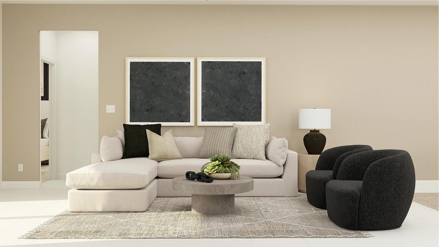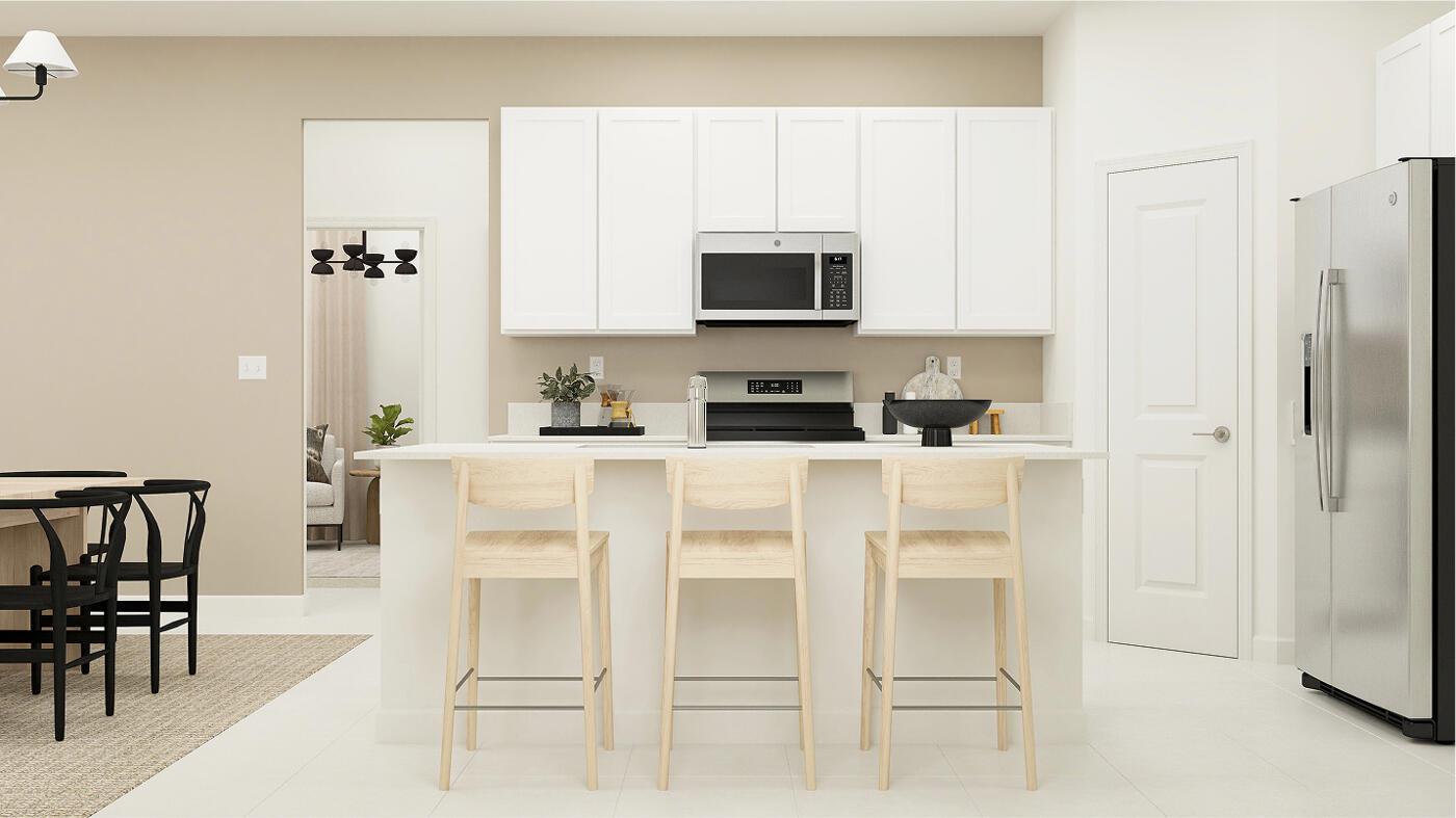 This new single-story home features a smart layout that prioritizes ease of living. Down the foyer is an open-plan design shared by the kitchen with a center island, dining room and family room, which extends out to the covered lanai. On the opposite side of the home are all three bedrooms to provide a restful retreat, including the owner's suite with an attached bathroom. At the front is a versatile two-car garage.Prices, dimensions and features may vary and are subject to change. Photos are for illustrative purposes only