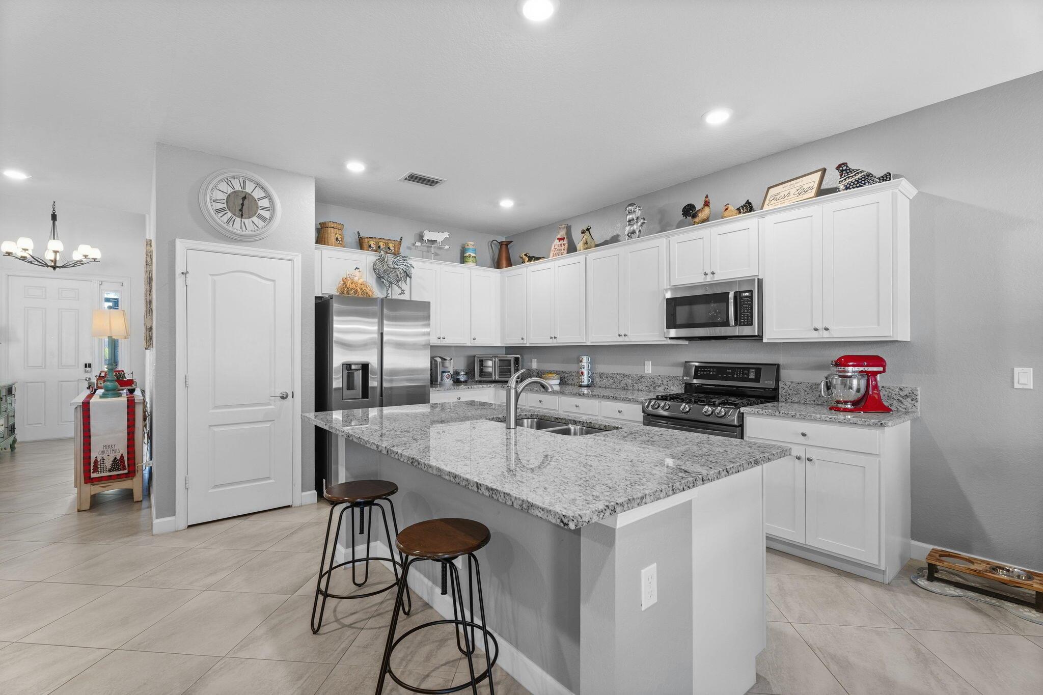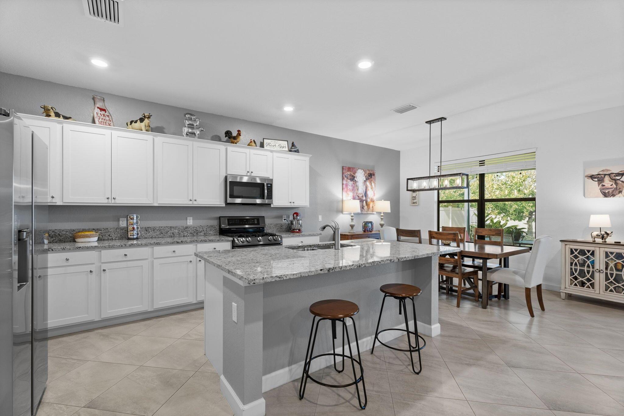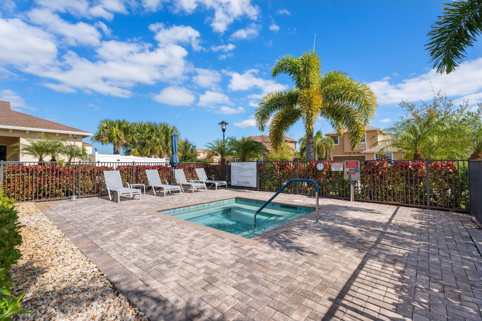 Beautiful well maintained home in the Verona Trace community of Vero Beach. 3 Bedroom, 3 Full Bathroom, 3 Car Garage home with a custom designed backyard oasis. Inside there's an open concept kitchen living and dining area with diagonal tile flooring. The kitchen features ample counter space, white cabinetry, granite countertops, a spacious island, pantry and a gas stove. Each guest bedroom is located near a full bathroom, ensuring privacy for all guests and making it great for multi-generational living. Primary bedroom overlooks the backyard and has a spacious walk in closet. Primary bathroom features a large walk in shower, dual sinks and a separate water closet. The custom designed backyard has something for everyone. Enjoy indoor/outdoor living with the