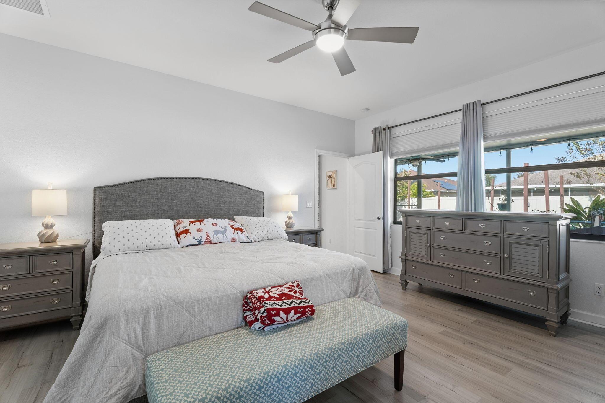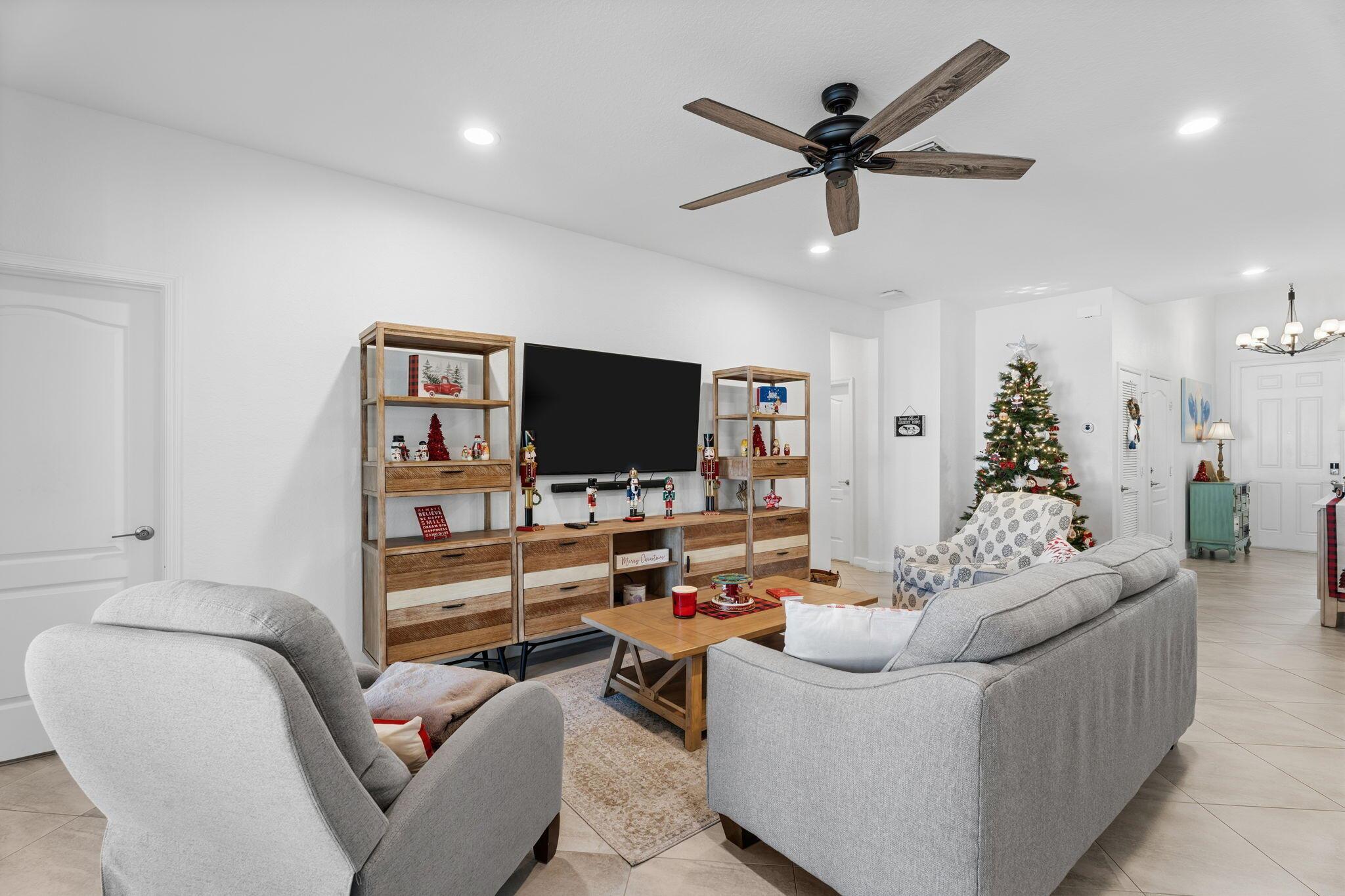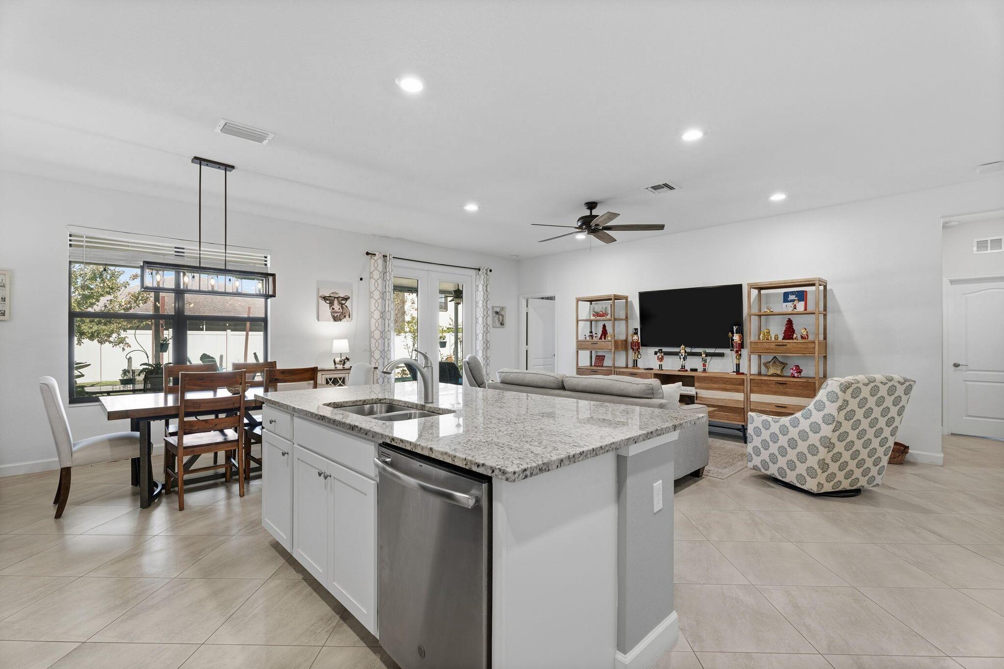 Beautiful well maintained home in the Verona Trace community of Vero Beach. 3 Bedroom, 3 Full Bathroom, 3 Car Garage home with a custom designed backyard oasis. Inside there's an open concept kitchen living and dining area with diagonal tile flooring. The kitchen features ample counter space, white cabinetry, granite countertops, a spacious island, pantry and a gas stove. Each guest bedroom is located near a full bathroom, ensuring privacy for all guests and making it great for multi-generational living. Primary bedroom overlooks the backyard and has a spacious walk in closet. Primary bathroom features a large walk in shower, dual sinks and a separate water closet. The custom designed backyard has something for everyone. Enjoy indoor/outdoor living with the