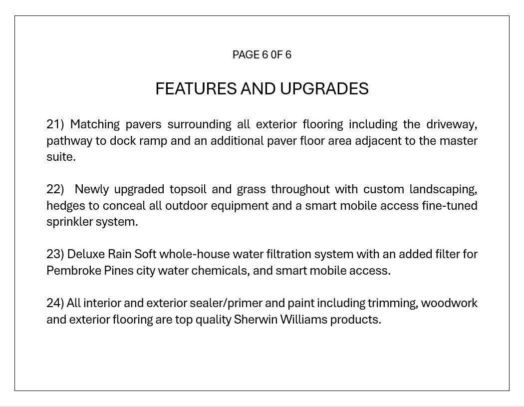Modern, fully upgraded lakefront smart home in a private Pembroke Pines community. This stunning 3/2 features porcelain tile throughout, impact windows/doors, custom closets, elegant bathrooms, and a luxury kitchen with solid wood cabinetry, premium counters, stainless appliances, and a wine cooler. The finished double garage adds flexible living with A/C, LED lighting, and matching tile. Enjoy seamless smart control of lighting, climate, irrigation, water filtration, and security. Step outside to a resort-style backyard with a maintenance-free dock, solar lighting, built-in speakers, a sleek covered patio, and a modern pergola — all overlooking peaceful lake views. Move-in ready perfection!