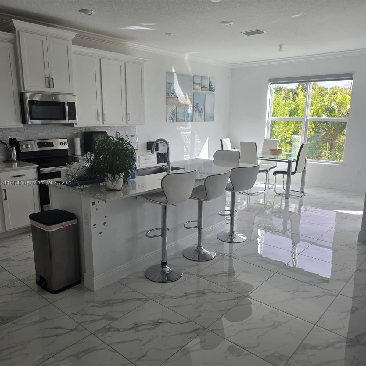 Stunning 5-bedroom + loft/office, 3-bath single-family home with amazing lake views. Meticulously maintained with upgrades including wood flooring, stylish lighting, stainless steel appliances, smart home features, and impact windows and doors. Enjoy a custom-landscaped backyard with a relaxing patio. Conveniently located near I-95, the Turnpike, and 869. Move-in ready!