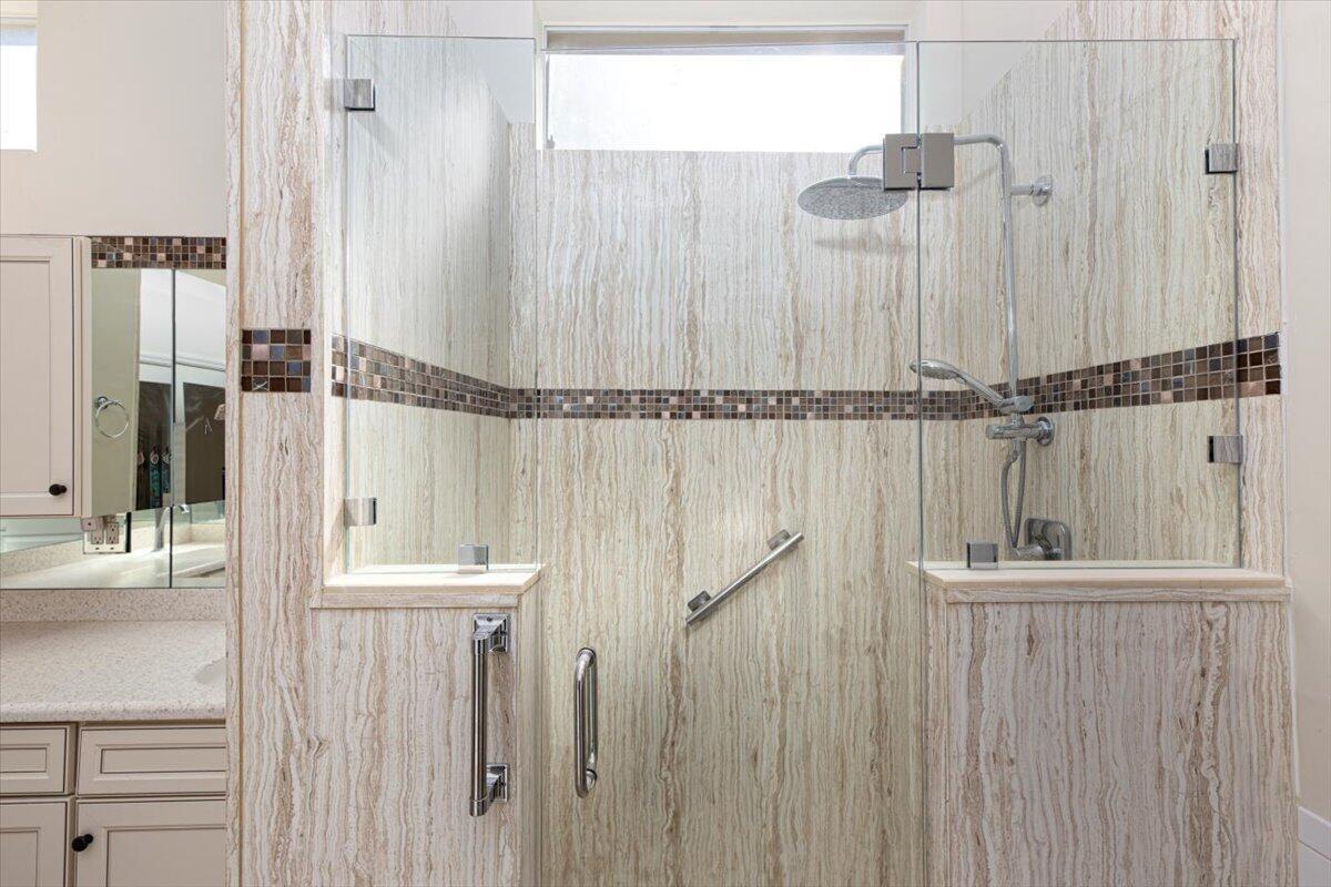 Stunning CBS 3 bed/2bath + DEN lakefront home in TownPark at Tradition. Step through the covered and screened entryway into double front doors to find yourself greeted with ceramic tile flooring throughout the main living areas and a spacious great room with crown molding. The versatile kitchen was built for function/flexibility, and features granite countertops w/ a custom Italian tiled backsplash, custom wood cabinetry with copious storage space, and a breakfast bar/nook for easy dining. The master suite features voluminous ceilings, two walk- in closets, lakefront views, and an ensuite bath complete with dual sinks and a separate walk in shower. The covered and screened lanai features views of an expansive and serene lake. Fenced in yard and impact window/accordion hurricane shutters.