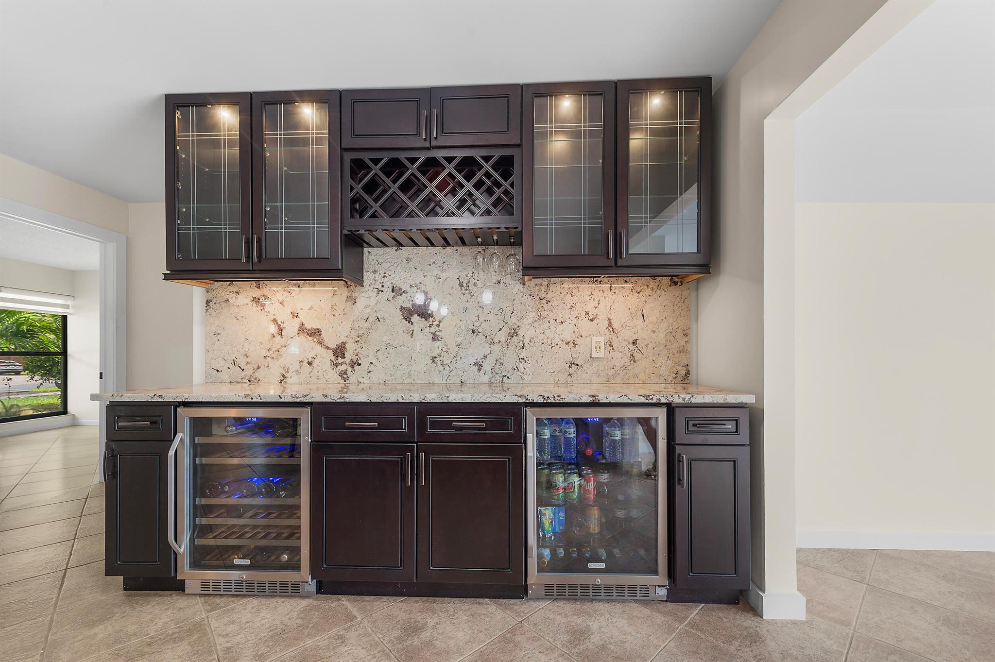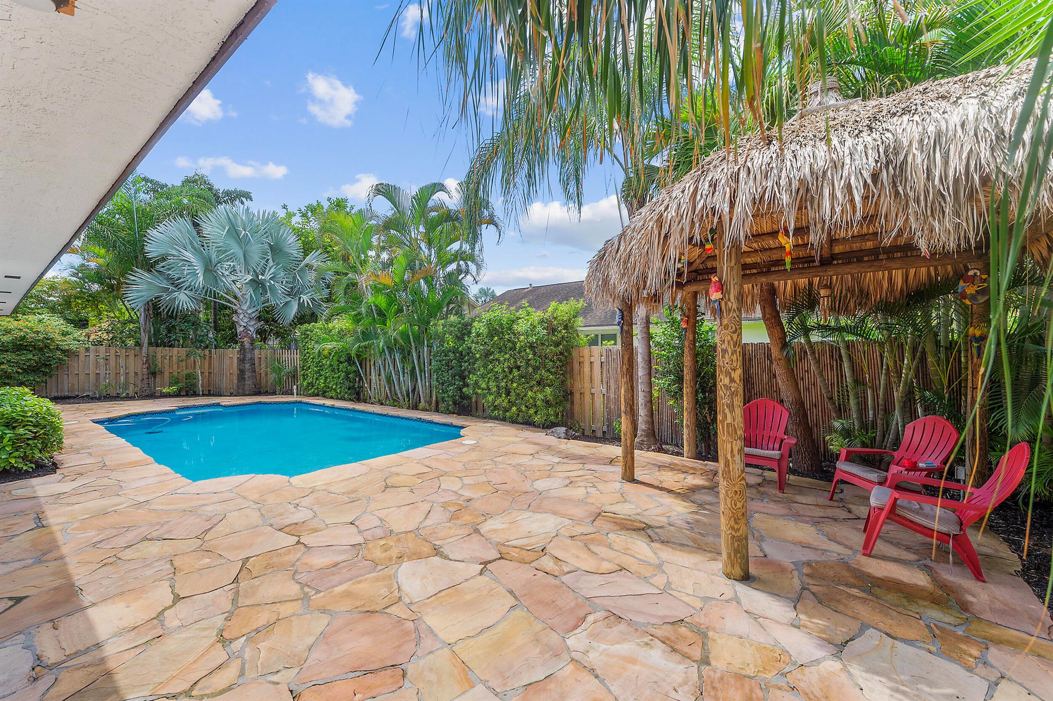 Updated 3BD/2BA pool home in highly desirable Pembroke Lakes NO HOA! Features a remodeled kitchen with large island, gas stove with pot filler, ducted range hood and built-in bar with dual wine coolers. Perfect for entertaining. Natural gas services stove, water heater and dryer. Open layout with wood-burning fireplace, impact windows, built-in closets, new window treatments, a (2016) AC and (2021) gas water heater. Enjoy the resurfaced pool, custom rock-paved patio, tiki hut with electric and mango tree. 2-car garage with in-wall AC, cabinets and sink. Close to shopping, dining, A rated schools, parks and highways!