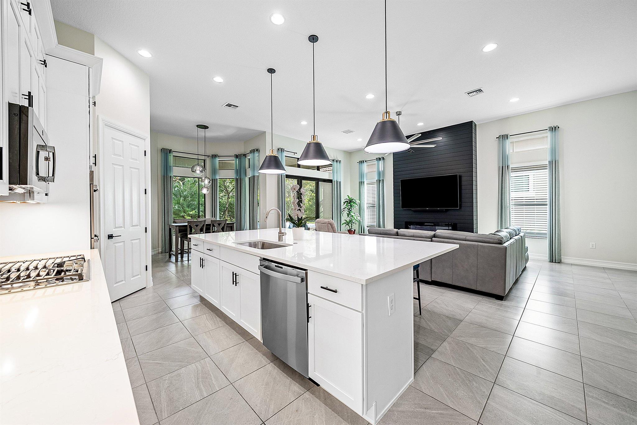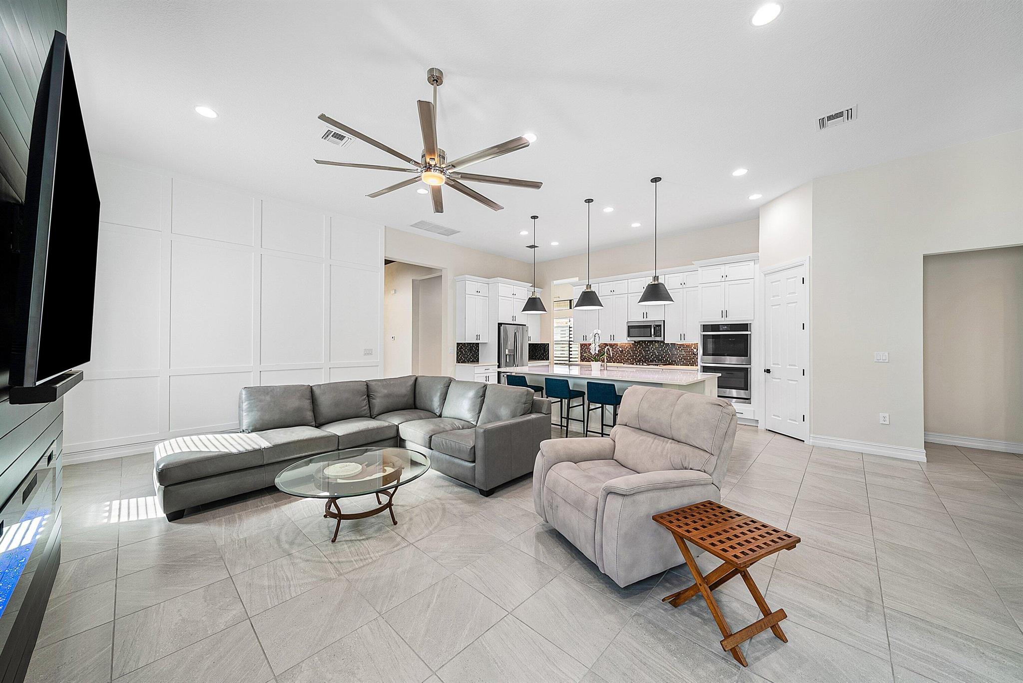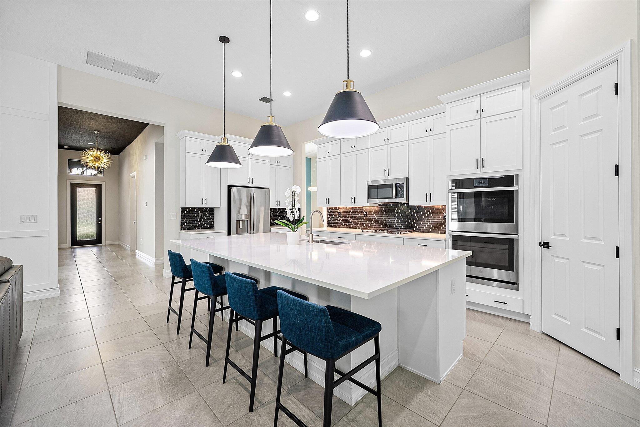 Welcome to a stunning, designer-appointed home in Four Seasons. Located at 9076 Leon Circle, this highly upgraded residence offers modern elegance with smart design. Boasting 2,714 square feet, it features two spacious bedrooms and three luxurious bathrooms. An open floor plan and expansive windows fill the home with natural light, highlighting high-end finishes throughout. Enjoy the serenity of a screened lanai with a garden view, situated on a 6,000 square foot lot. Join in on the active 55+ lifestyle and experience sophisticated living today.