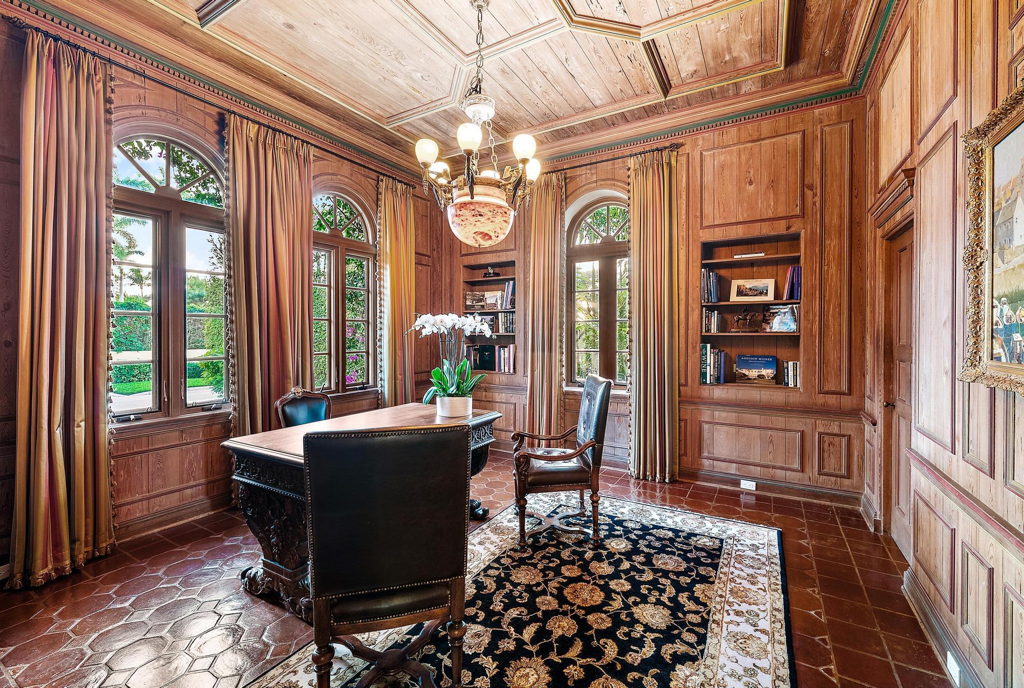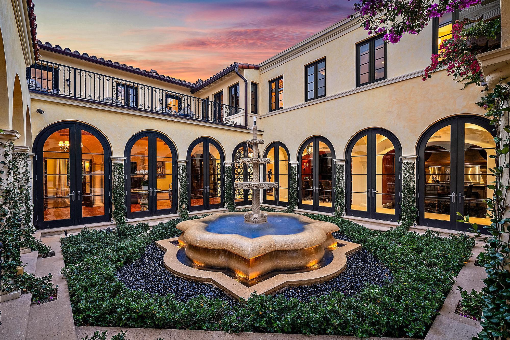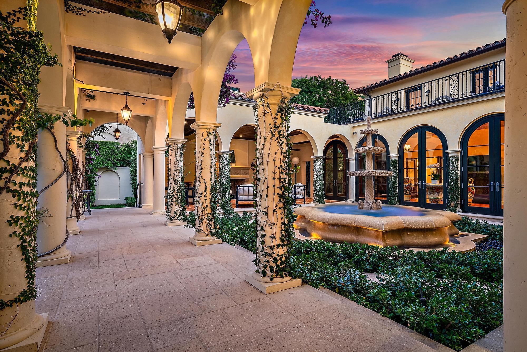 Villa Dolce is Palm Beach! Exquisite details throughout this Maurice Fatio estate, with many original features combined with current renovations for today's lifestyle. The dining room with beautiful pecky cypress ceilings creates the perfect environment for entertaining. The grand living room and adjacent loggia overlook the pool, gardens and fountain. All major rooms surround the property creating access to the outside making it perfect for indoor outdoor living. The original staircase leads to the private primary bedroom suite complete with sitting room, den, dual baths and a private staircase down to the spa. In addition are three guest bedrooms with baths en-suite. A spacious terrace can be reached from the bedrooms which overlook the property. Separately located Guest/Staff quarter