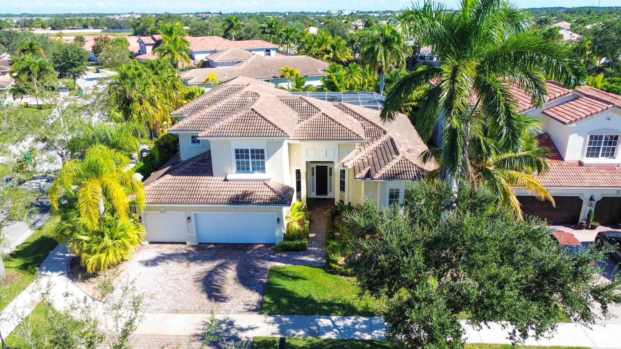 Luxury 5BR + Den, 5BA, 3CG Pool Home in The Estates at Tradition! This elegant 2-story corner lot Toll Brothers home features crown molding, chair rail, stone gas fireplace, plantation shutters, & wood-look tile floors. Separate living, dining room w/full wet bar, family room areas. The gourmet kitchen offers 42'' wood cabinets, granite counters, gas cooktop, & island. Main floor Primary suite w/jetted tub, dual sinks & tiled shower. Upstairs boasts a loft + two large ensuite bedrooms. Enjoy outdoor living w/a resort-style pool, Viking appliance summer kitchen & screened lanai, electric sun shade, private fenced yard, landscape lights hard wired or on a timer, cabana bath, 3-zone A/C. Whole house back up generator, impact glass, accordion, electric shutters. Perfect for your larger fami