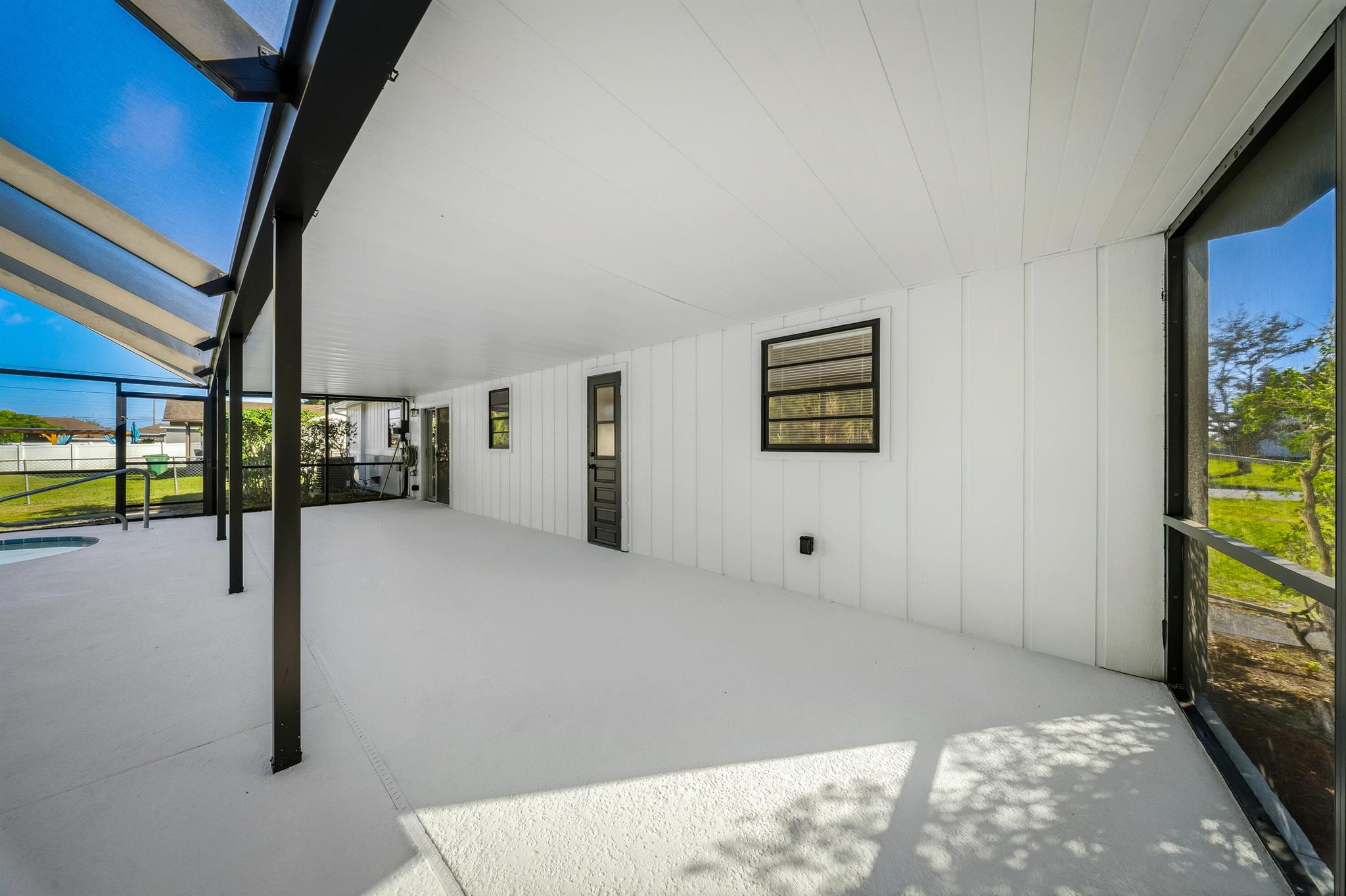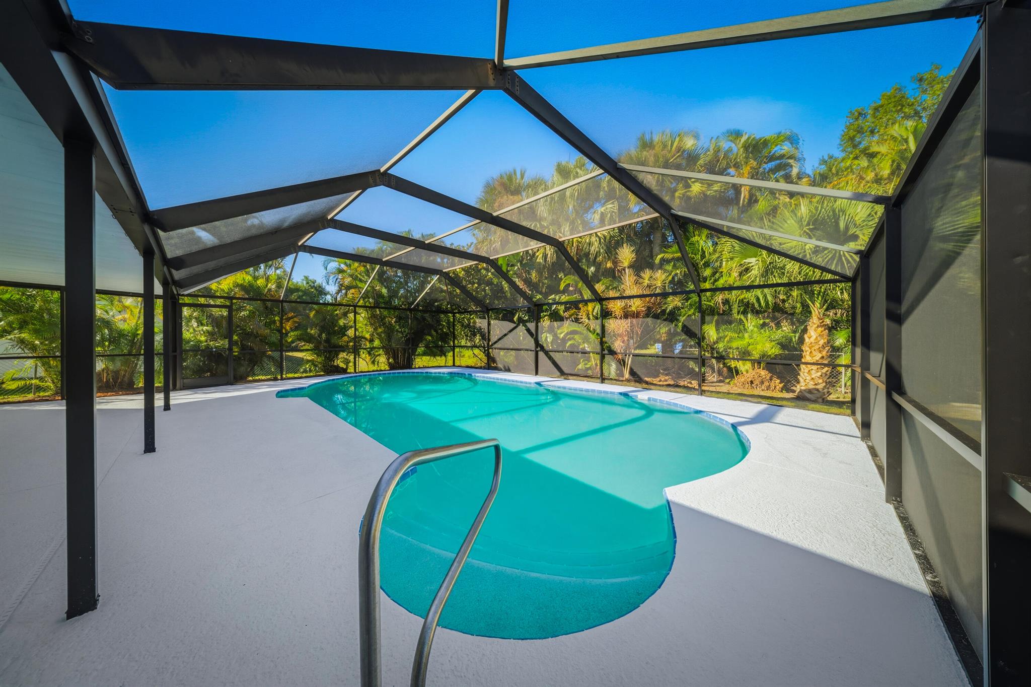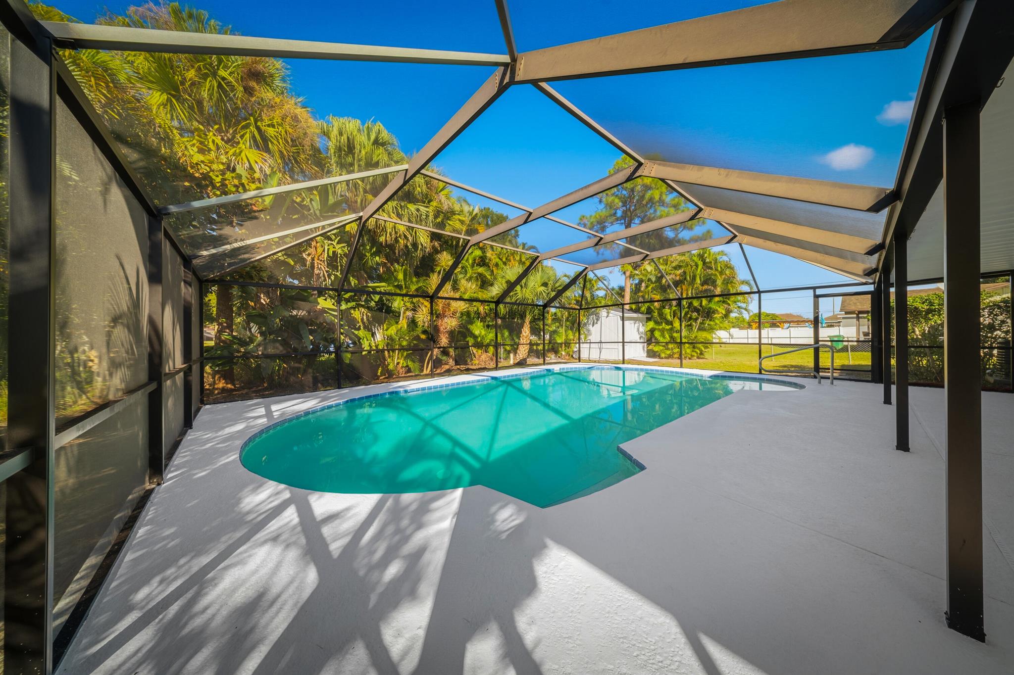 Come see this 3/2/2 beautifully renovated screen enclosure pool home in an outstanding location! Home is situated in a quiet and quaint neighborhood - just minutes away from the Turnpike, I-95 and Tradition. This house comes with a brand new 2025 roof - just replaced, brand new white shaker kitchen cabinets, new quartz countertops and backsplash, newer stainless steel appliances, all new water fixtures, switches/outlets, ceiling fans/lighting fixtures and much more...! It also comes with brand new vanities, gorgeous tile in the bathrooms, brand new luxury vinyl planks and elegant baseboards throughout the whole house. It features an accent wall with a gorgeous interior WPC wall panel to decorate some of the living spaces in the house.