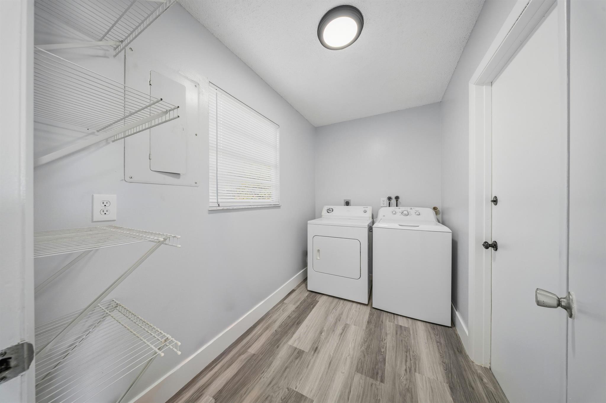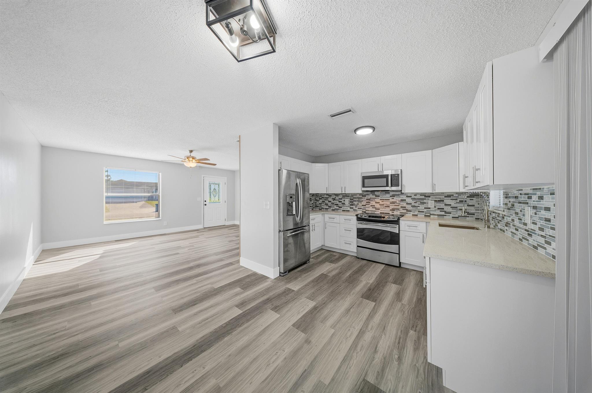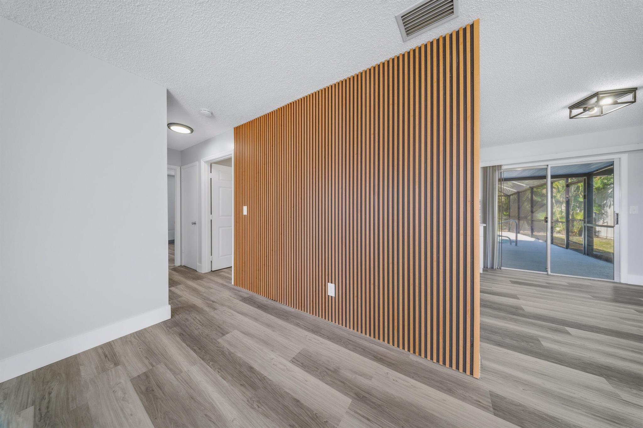 Come see this 3/2/2 beautifully renovated screen enclosure pool home in an outstanding location! Home is situated in a quiet and quaint neighborhood - just minutes away from the Turnpike, I-95 and Tradition. This house comes with a brand new 2025 roof - just replaced, brand new white shaker kitchen cabinets, new quartz countertops and backsplash, newer stainless steel appliances, all new water fixtures, switches/outlets, ceiling fans/lighting fixtures and much more...! It also comes with brand new vanities, gorgeous tile in the bathrooms, brand new luxury vinyl planks and elegant baseboards throughout the whole house. It features an accent wall with a gorgeous interior WPC wall panel to decorate some of the living spaces in the house.