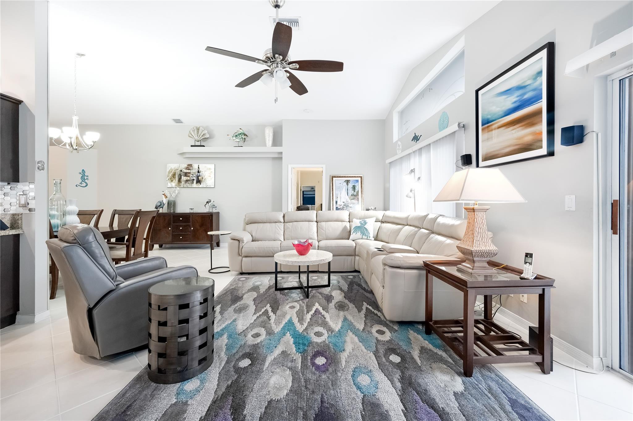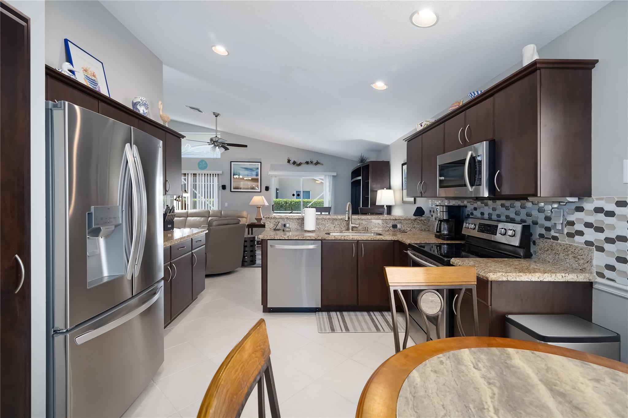 This beautifully maintained and upgraded 3 bedroom home offers comfortable stylish living in a vibrant 55+ community. A new roof, new outdoor tile on the lanai, and updated kitchen cabinets provide peace of mind and modern appeal. The open living area features vaulted ceilings, creating a bright and spacious setting perfect for relaxing or entertaining. Located in a highly sought-after active adult community, residents enjoy a wide array of entertainment, recreational facilities and clubs, ensuring there's always something to do and new friends to meet. Move-in ready and thoughtfully updated, this home is the ideal choice for enjoying the Florida lifestyl