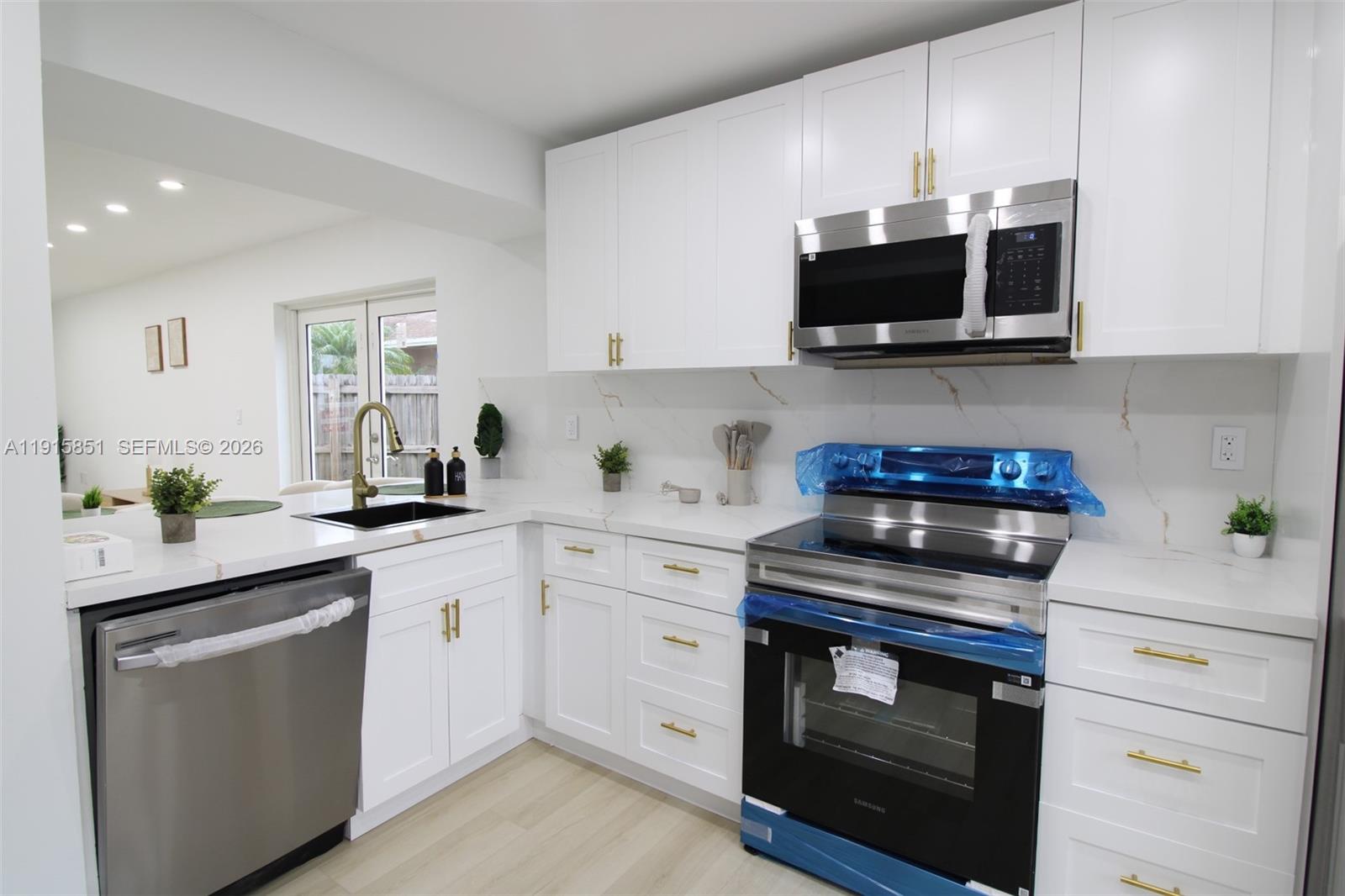 3 bed / 2 bath home, fully remodeled inside and out. IMPACT WINDOWS AND DOORS installed with PERMITS provides safety, energy efficiency, and should easily qualify for insurance discounts, The roof is in excellent condition with many years of life left. The designer kitchen features Calacatta Gold quartz countertops, backsplash, complemented by stainless-steel appliances and soft-close cabinetry. Beautifuly remodeled Bathrooms. Durable waterproof vinyl flooring throughout. Tankless water heater, and fresh interior paint. Spacious driveway and a beautiful backyard with a large storage shed. Great Cutler Bay location near US-1, Turnpike, shopping, schools, and Black Point Marina. Quiet, family-friendly neighborhood with easy access to Miami and the Florida Keys. Easy To Show - SUPRA