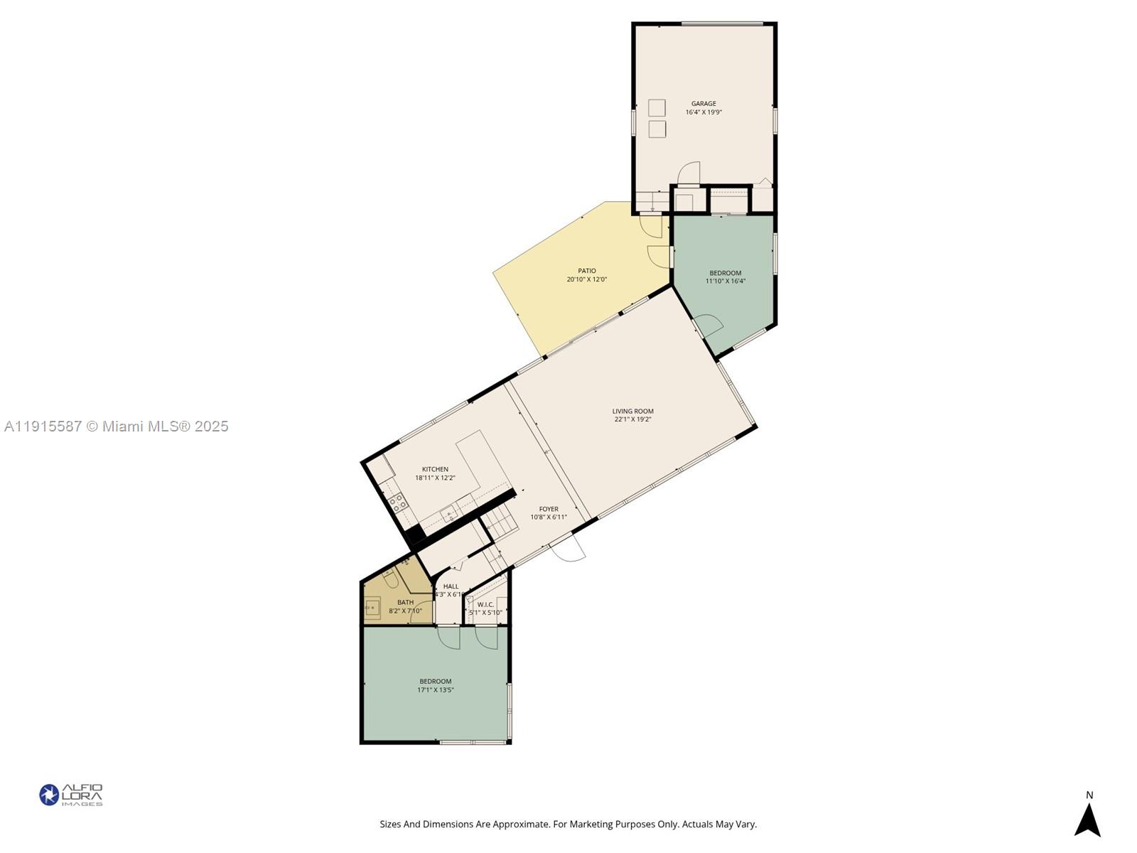 This beautifully updated 3-bedroom, 2-full-bath residence is perfectly situated East of US-1 in highly desirable Miami Shores. Located on a tranquil, non-through street, it offers exceptional privacy while being just a short stroll from the picturesque bayfront. Step inside to an open-concept floor plan bathed in natural light, streaming through new hurricane impact glass windows. The heart of the home is a fully updated kitchen that flows seamlessly into the main living and dining areas, ideal for entertaining. Enjoy the dramatic scale provided by high ceilings. The home features two zones of central A/C & an attached one-car garage. Outside, the oversized backyard is a private oasis, featuring mature fruit trees, a lovely patio area, and ample space to design and install a custom pool.