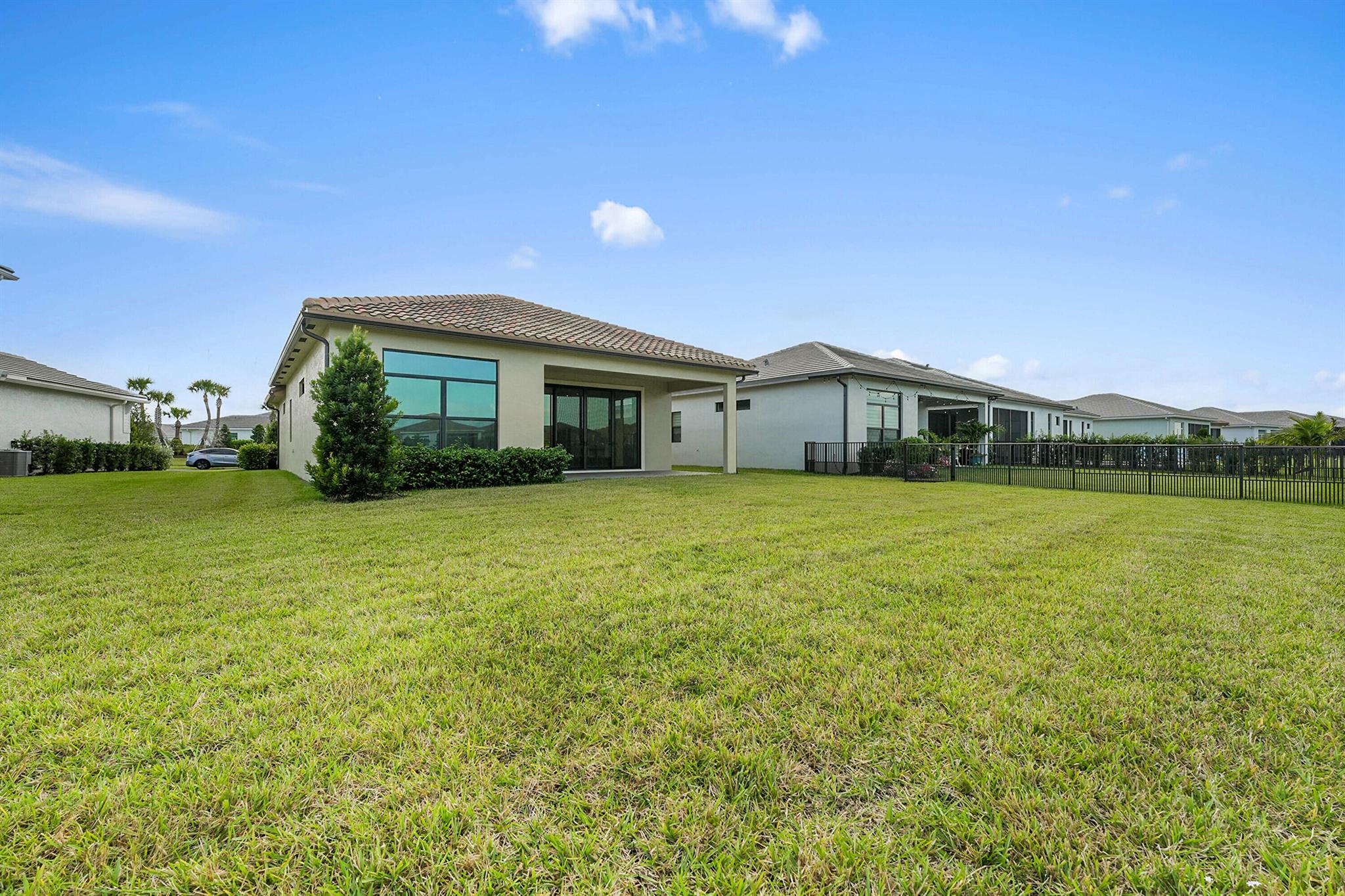 This 2024 CBS home in PGA Verano offers a split floor plan, premium upgrades and a move-in-ready lifestyle. Featuring 3BR/2BA, this bright and open layout includes impact glass, sleek tile flooring, quartz counters, stainless appliances, 16'x10' sliders, and a large kitchen island. The extended lot showcases long lake views, ideal for a future pool. Enjoy a spacious primary suite with spa-like bath and walk-in closet. Verano's resort-style amenities include indoor/outdoor pools, 27 pickleball courts, clubhouse, fitness, tennis, and more. HOA includes cable, internet, lawn care, and security.