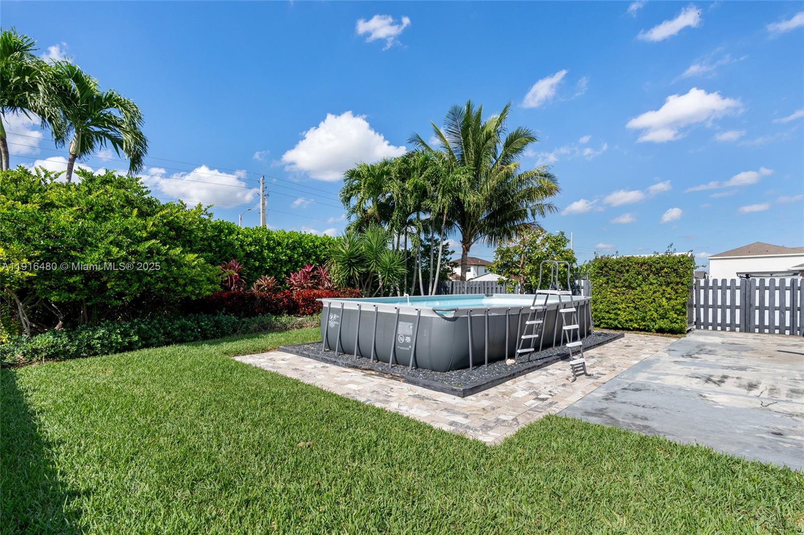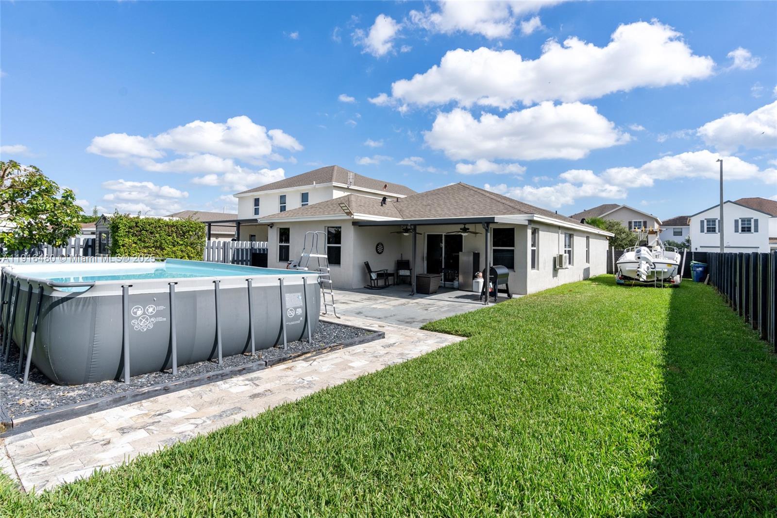 Built in 2018, this modern 4-bedroom, 2-bath home features an open-concept floorplan and a two-car garage. The oversized lot offers beautiful landscaping, a covered backyard terrace, and an above-ground pool ideal for relaxing or entertaining. There’s also designated space to park a boat on the side of the home. With no HOA and located just feet from the “A” rated Somerset Academy Silver Palms, this property delivers comfort, convenience, and freedom in a highly desirable area.