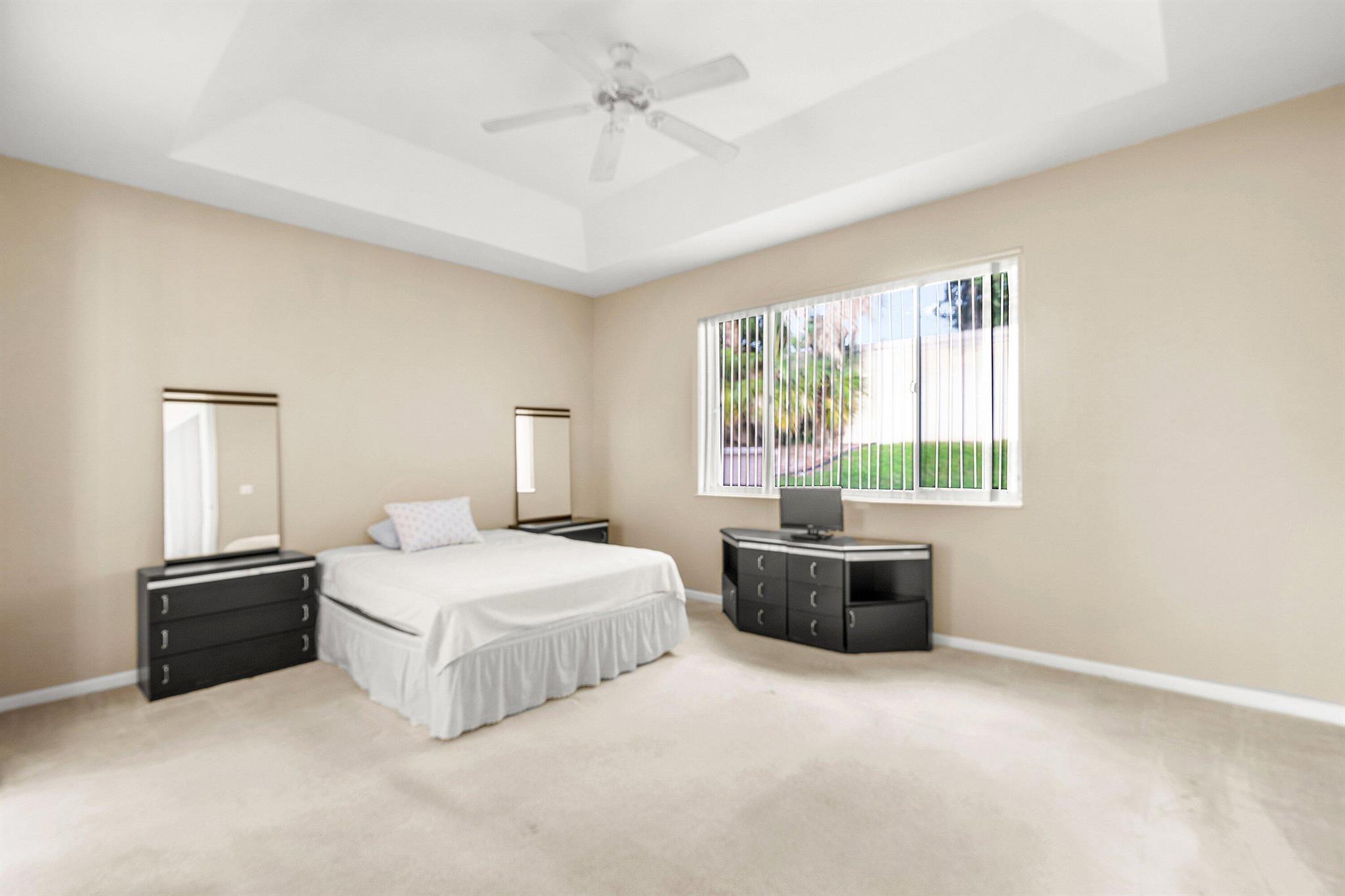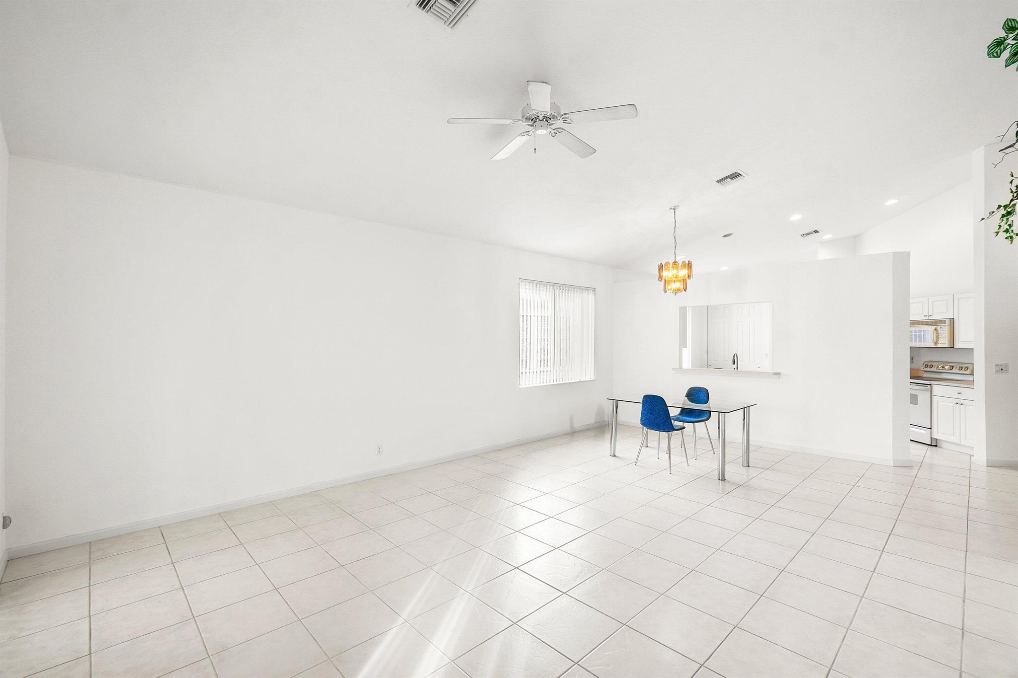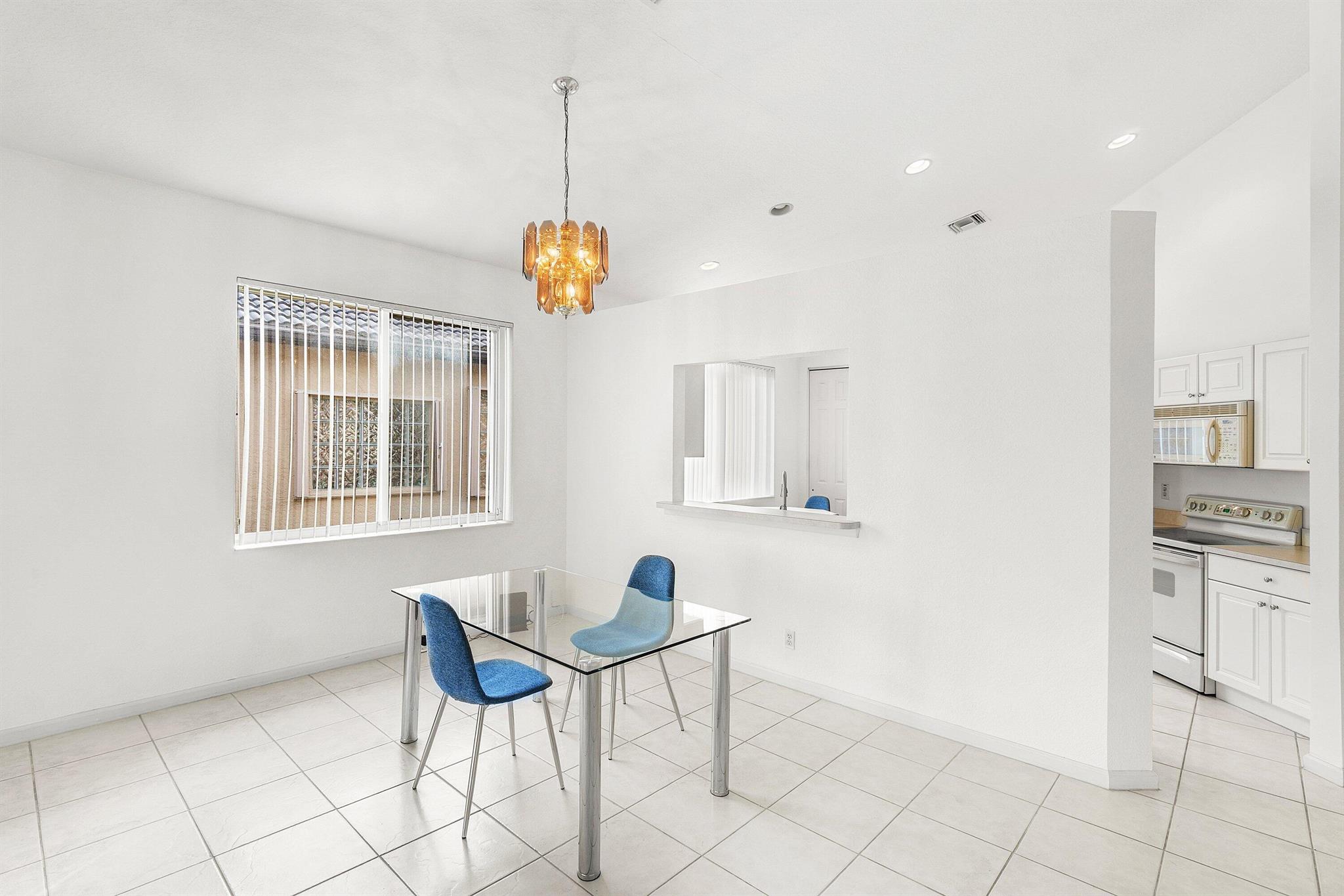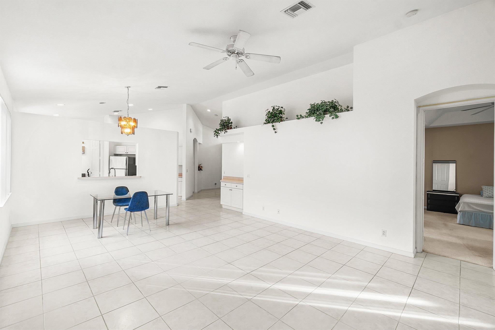Welcome to this light and bright 3-bedroom, 2-bath Portofino model home with a 2 car garage, located in the highly sought-after Venetian Isles community of Boynton Beach. Inside, you'll find an open and airy split-bedroom floor plan featuring a bright great room with vaulted ceilings, hi hat lighting, neutral light tile in living areas and large windows that fill the home with natural light. The kitchen offers ample cabinet space, a cozy breakfast nook, a convenient pass-through to the dining area, large pantry, newer stainless steel refrigerator, a pots and pans pull out and tons of counter space. The primary suite includes generous closet space and a master bath with dual vanities, a tub and a walk-in glass door shower. Two additional bedrooms (both with closets!) provide