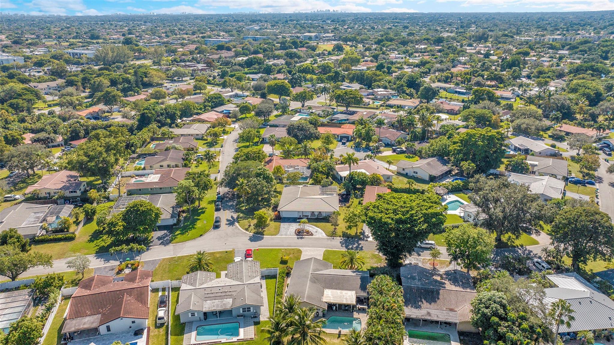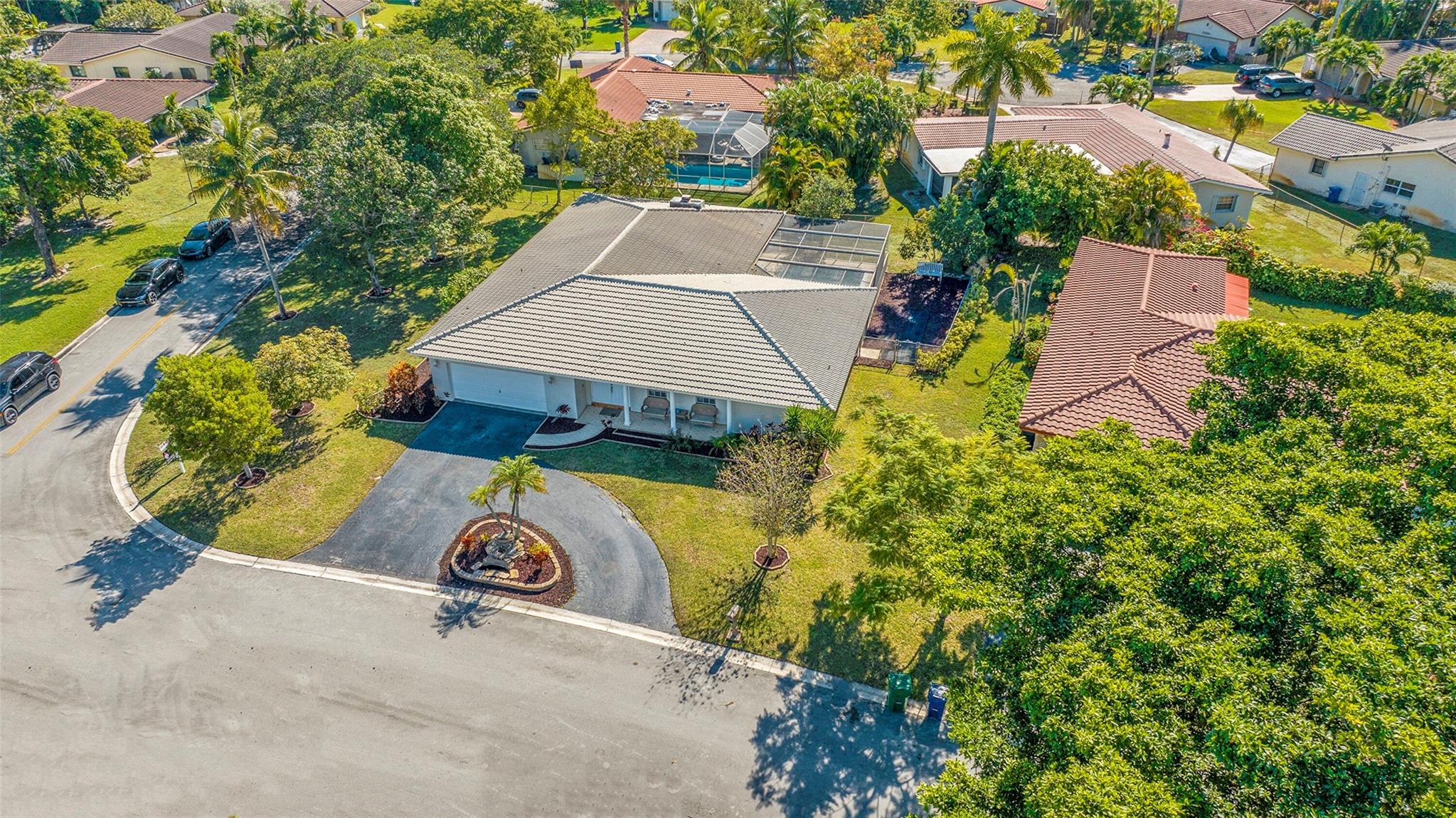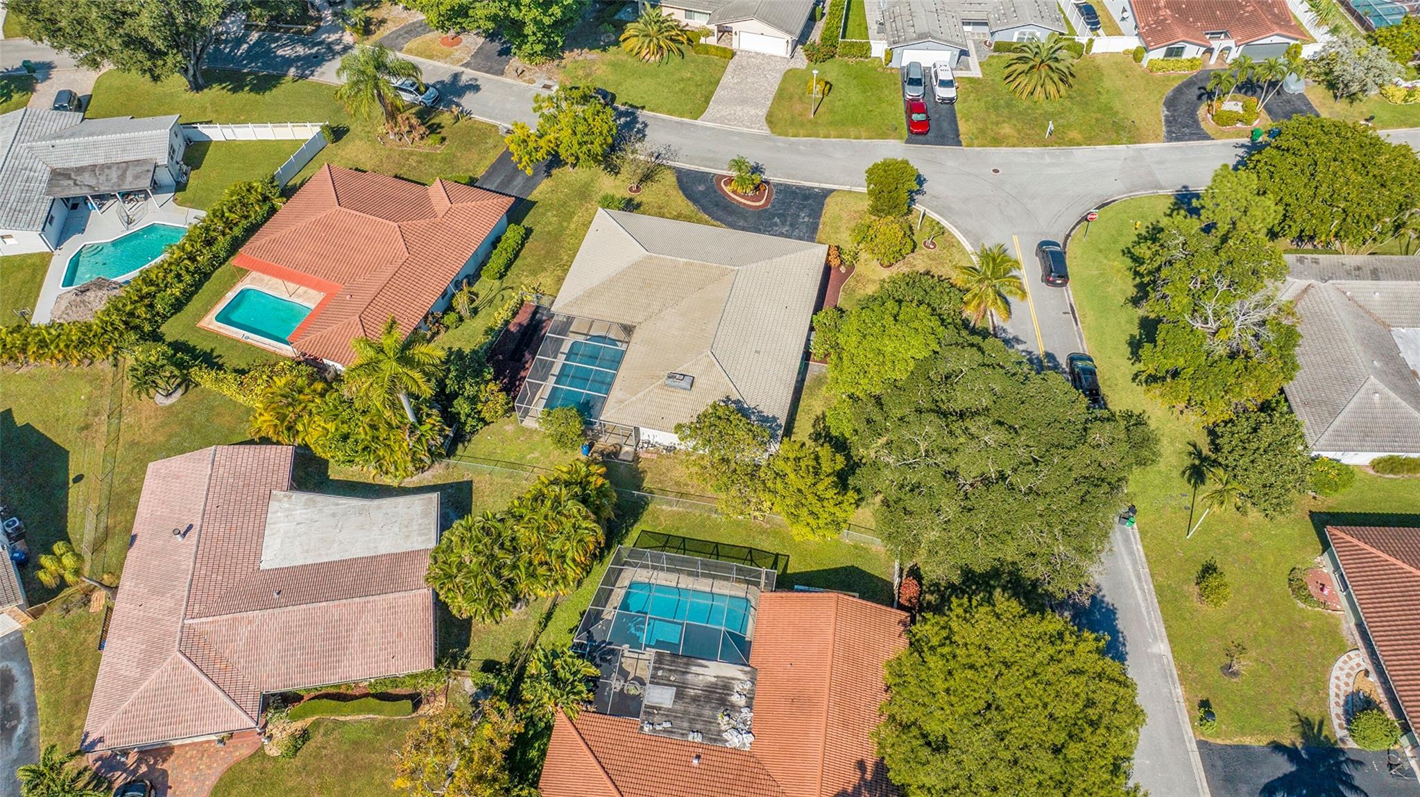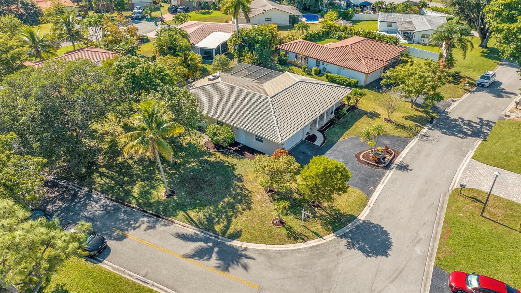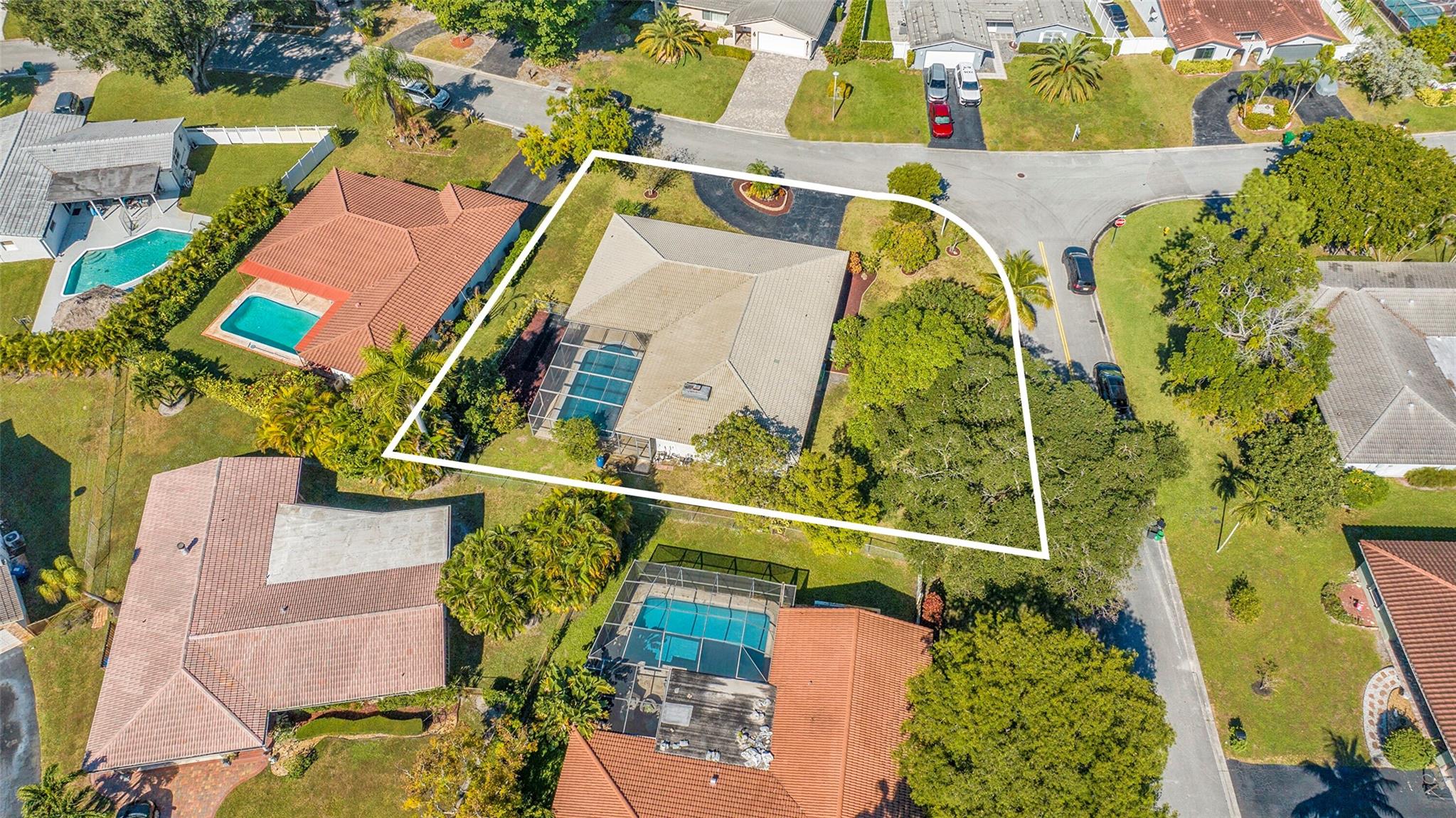 Spacious 4BR/2BA single-family home on an OVERSIZED CORNER LOT over a quarter acre—perfect for a large family seeking space and comfort. This home features a bright split floor plan with tile and laminate flooring, French doors, and a warm, inviting family room centered around a charming brick fireplace. The kitchen offers granite countertops, stainless-steel appliances. Step outside to an expansive fenced yard with mature mango trees and a screen-enclosed pool, ideal for gatherings, relaxing weekends, and year-round outdoor fun. The property also includes a 2-car garage and a circular driveway that provides EXTENSIVE parking for family and guests. Located in a welcoming, family-friendly neighborhood with NO HOA, offering freedom, privacy and convenience close to parks and schools.