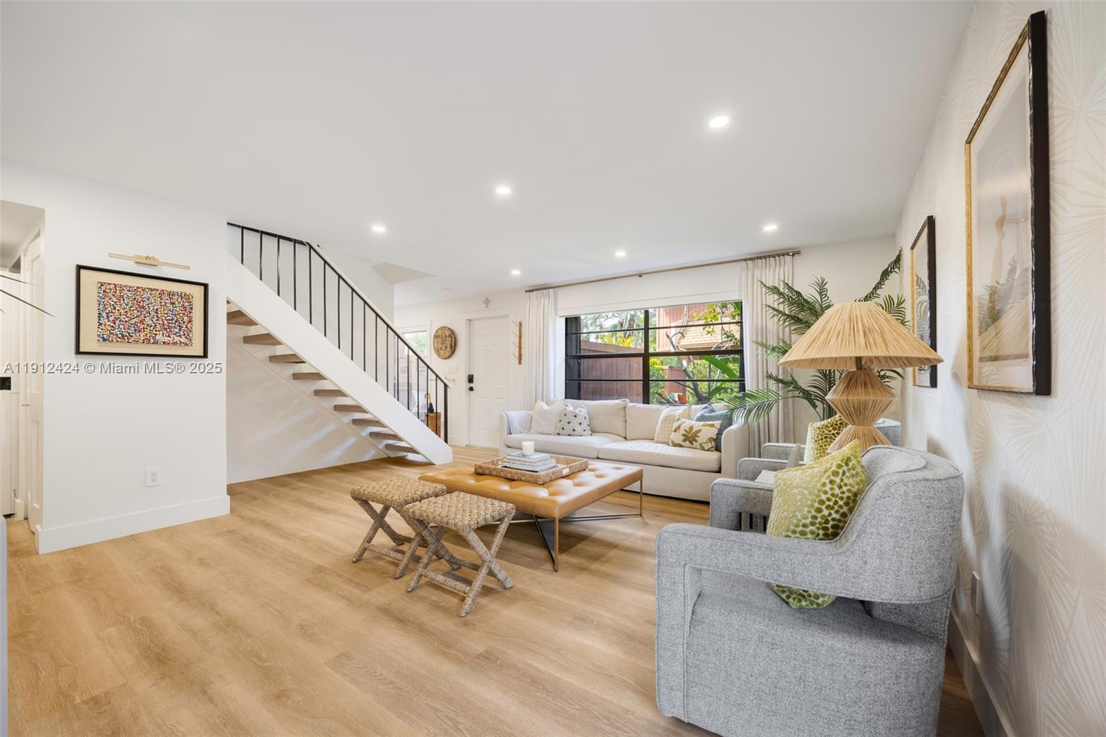 Beautifully remodeled and thoughtfully curated, this 3BD/2.5BA townhouse in gated Snapper Village offers warm, modern living with seamless indoor–outdoor flow. The home features LED recessed lighting throughout, updated kitchen with quartz countertops, custom cabinetry, built-in pantry, and a full-length bench that anchors the dining area. The bright living room opens to a lush, fenced backyard designed for relaxing and entertaining. Upstairs, all bedrooms include built-out closets and refined finishes. A front courtyard, dedicated storage room, and landscaped setting further enhance this home. The community offers resort-style amenities including a pool, tennis courts, playground, and 24-hour security, with an HOA that includes exterior maintenance, cable, internet, water, and more.