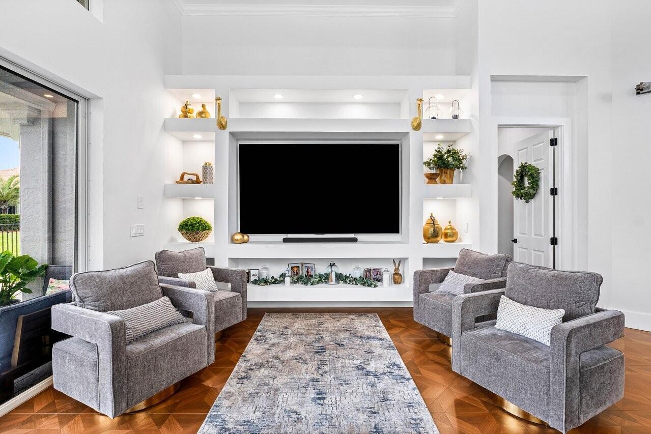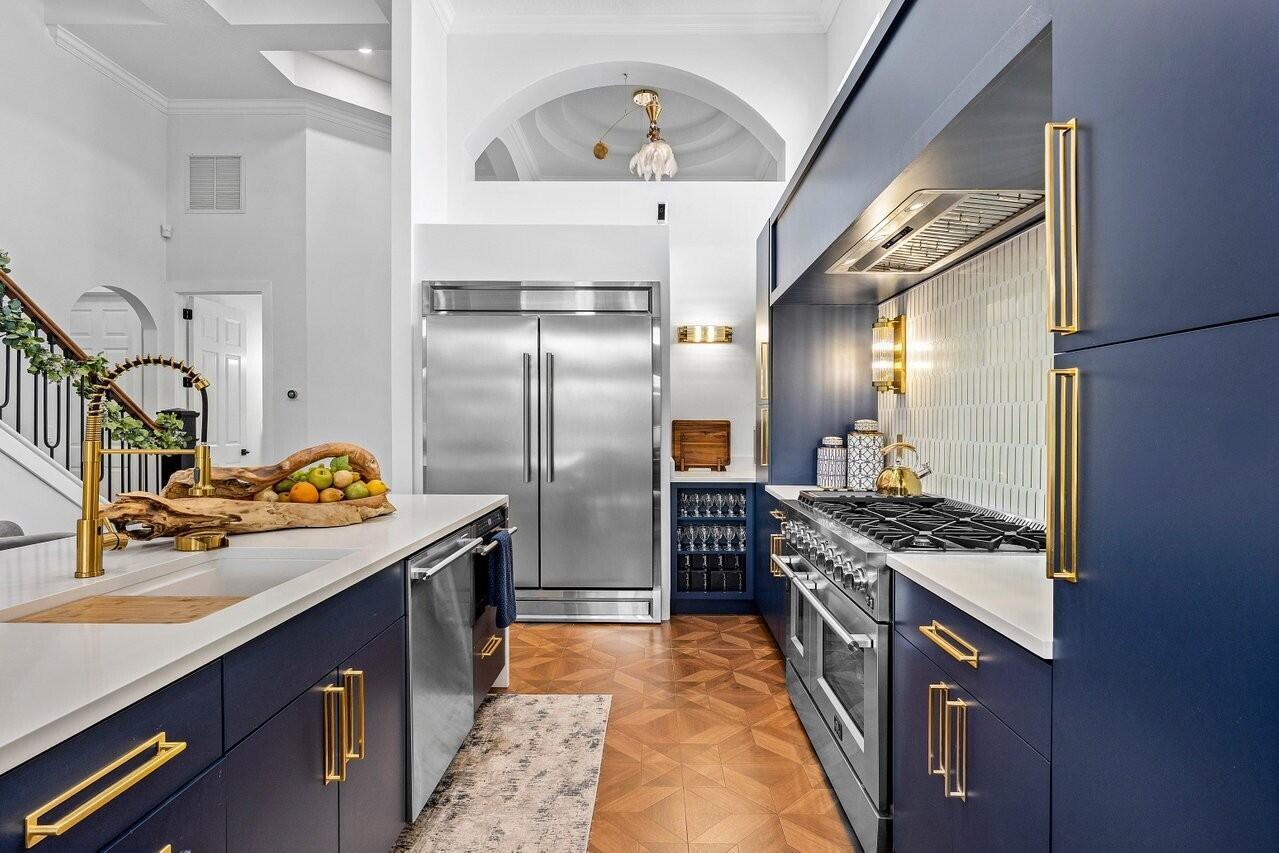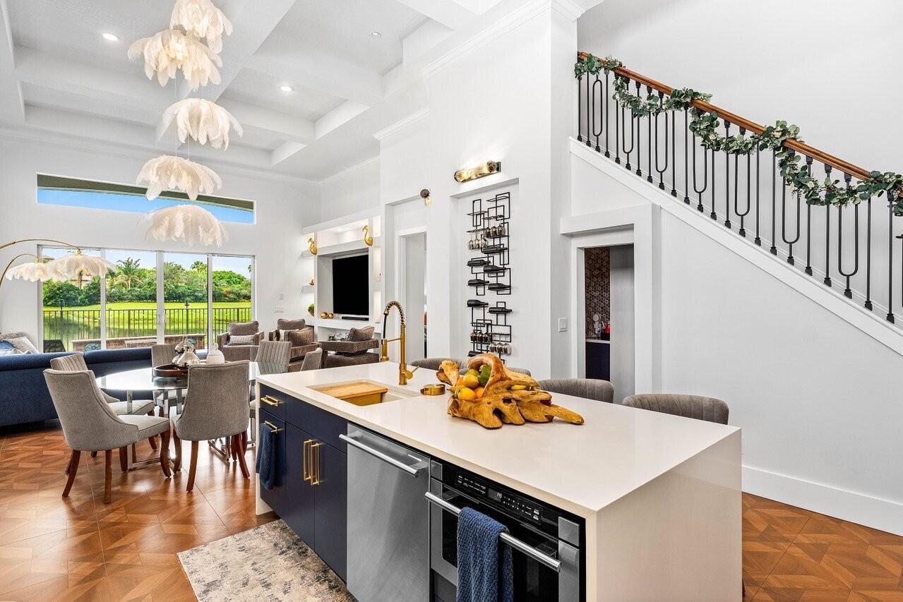 NO MEMBERSHIP REQUIRED! Water view, modern 4 bed, 4.5 bath smart pool home in Tesoro gas/golf community. Fully renovated with all-suite bedrooms, chef's kitchen w/8-burner gas stove, quartz waterfall counters, touchless faucets, cup washers, walk-in pantry & laundry. Custom baths, antimicrobial levers, smart charging outlets and lighting, Alexa displays, built-in new 98'' smart TV w/sound bar. Integrated Roborock vacuum/mop system. 2 new HVACs w/HEPA & halo sanitation.Newly resurfaced salt pool, waterfall, new filter and heater. Epoxy garage, EV charger with $38 monthly unlimited charging plan.Ring cameras/security. Home warranty and wind mitigation report for discount.