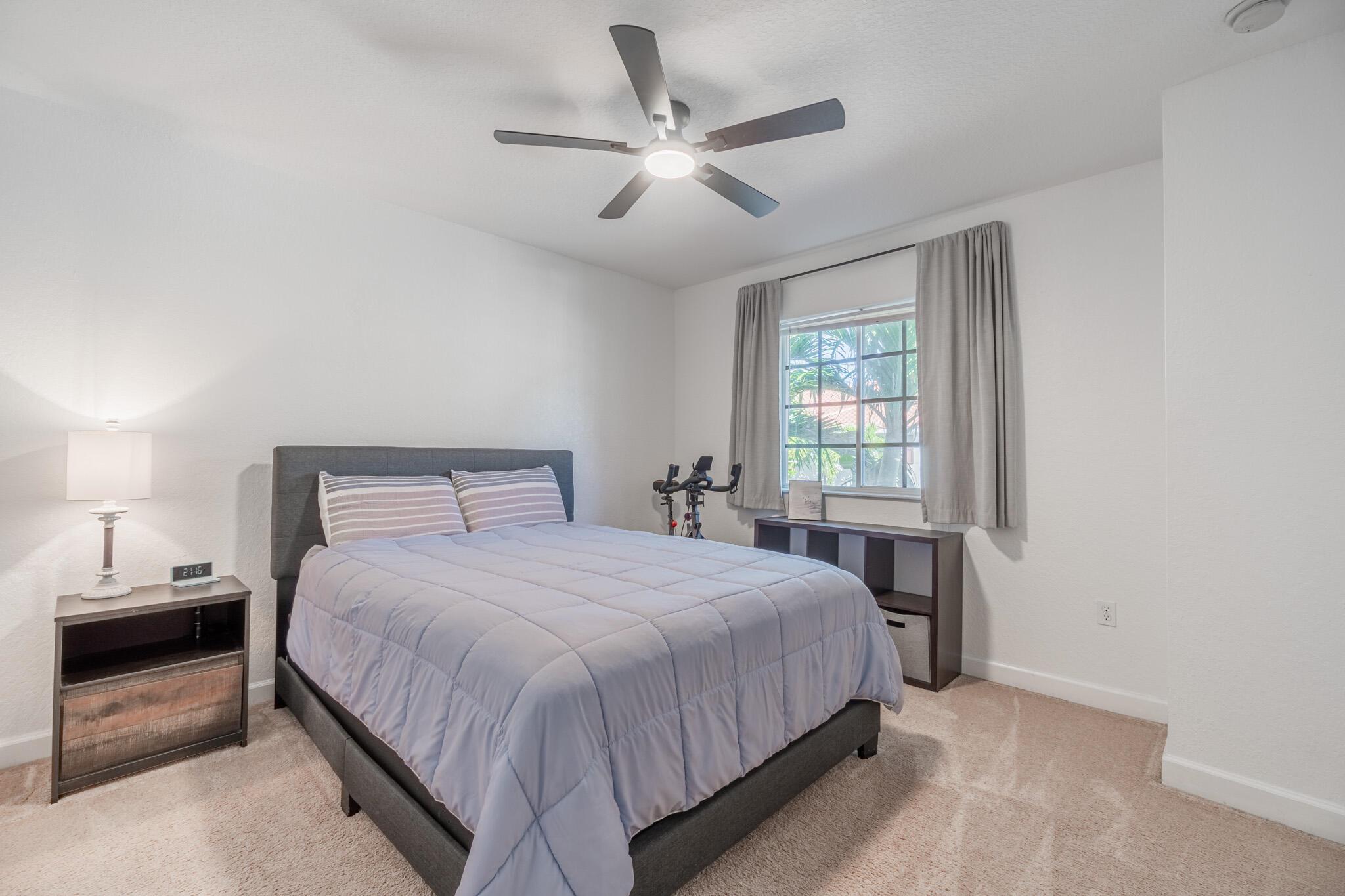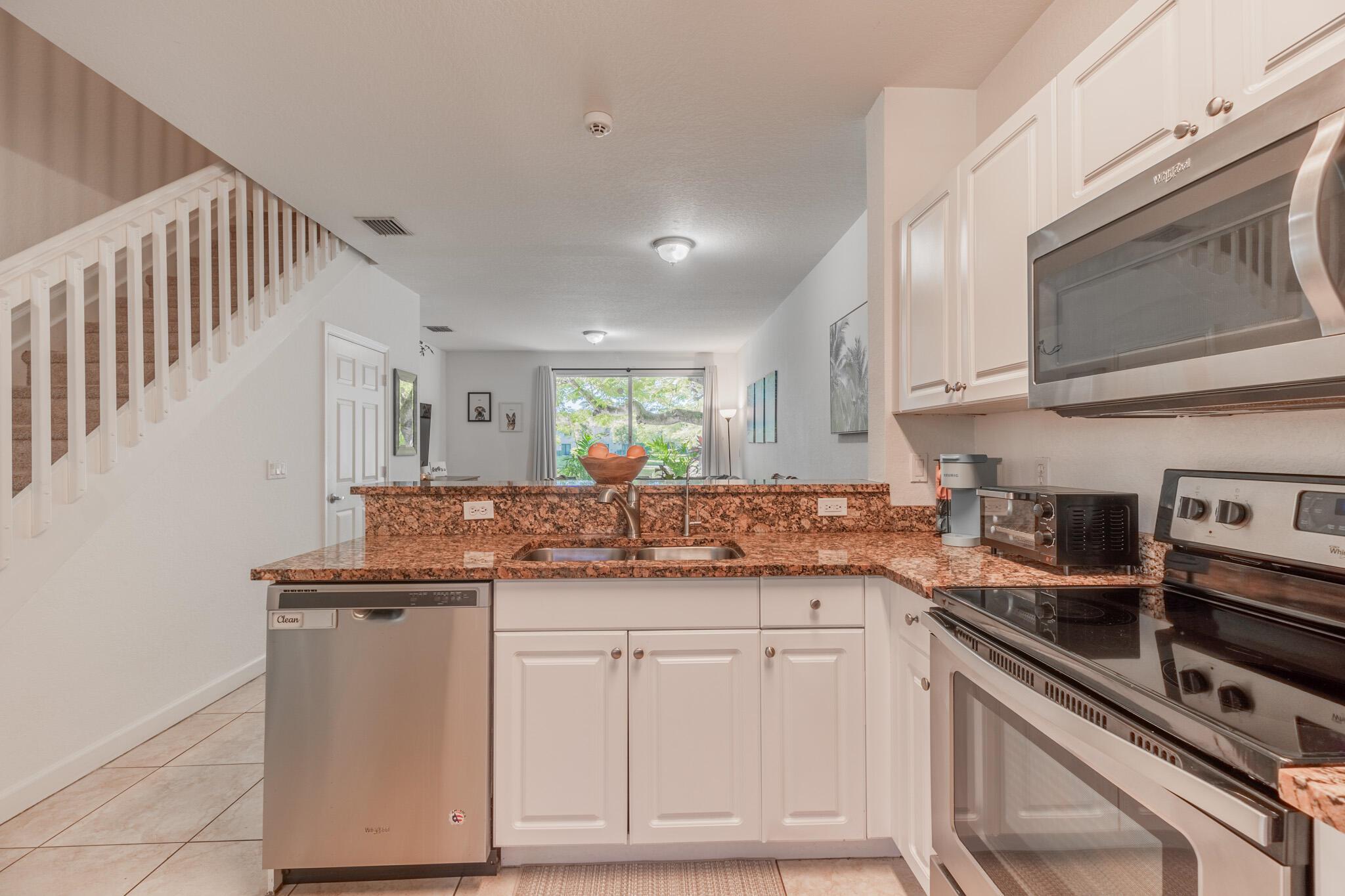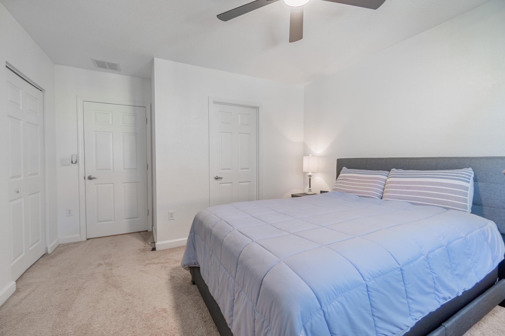 Beautiful CBS 2 bedroom, 2.5 bathroom townhouse offering 1,221 square feet with a bright, functional layout. Upstairs features two spacious master suites plus a loft ideal for an office or flex space. The kitchen includes new stainless steel appliances, granite countertops, and a 2022 reverse osmosis system. Upgrades include a 2018 AC, 2025 roof and gutters, and a newer washer and dryer. Enjoy tile downstairs, carpet upstairs, and a covered patio with tranquil lake views. Centrally located in a gated community with a clubhouse, gym, pool, and low HOA.