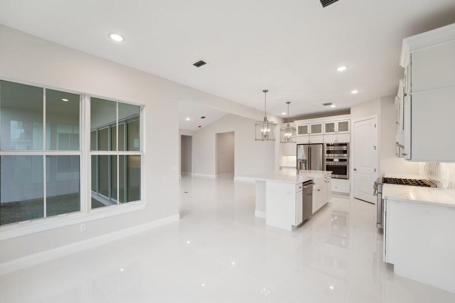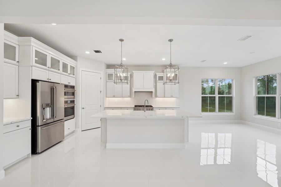 Stylish Bell Floorplan with Lake Views & Designer-Curated Loft LookThis Bell offers a seamless blend of comfort, versatility, and modern style. A secluded Extra Suite Plus provides an ideal setup for multigenerational living, offering privacy and flexibility for extended family or guests.The beautiful kitchen showcases white cabinetry paired with quartz countertops, delivering a clean, sophisticated aesthetic that complements the home's designer-curated loft look. The inviting great room stands out with its striking vaulted ceiling, creating an airy, open atmosphere perfect for gatherings.The pristine primary suite includes a cozy sitting room and a well-appointed primary bath, offering a peaceful retreat at the end of the day. A convenient home office provides a productive