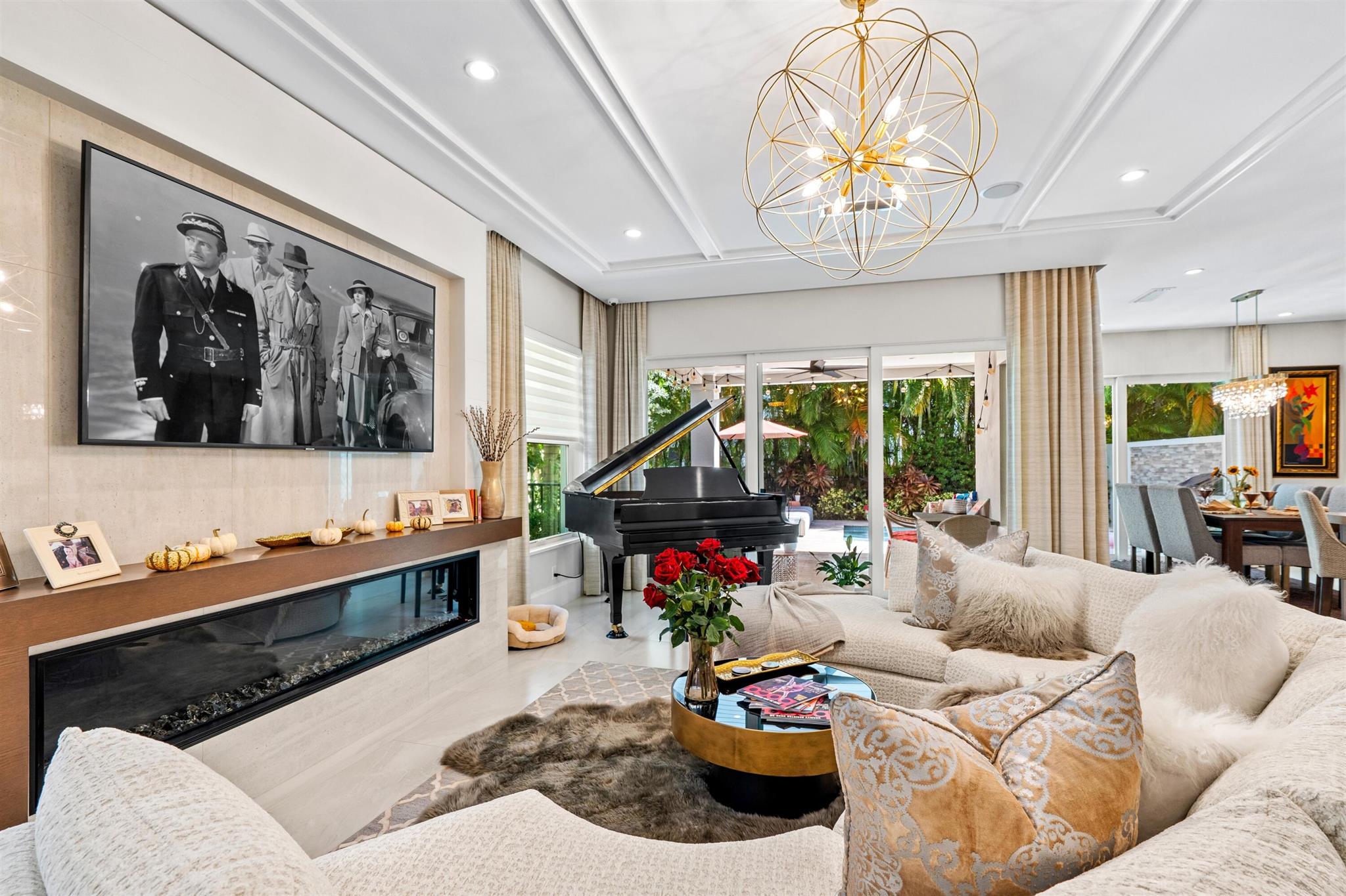 Experience the epitome of coastal luxury just one block from the beach in Boca Raton Riviera. This impeccably designed 2020-built townhome defines modern elegance, offering 3 beds, 3.1 baths, and 3,960+/- total sq ft. Features include soaring 10-ft ceilings, rich wood and large-format porcelain tile floors, custom moldings, and impact glass window-walls that seamlessly blend the interior with the lush tropical landscape. The open great room concept boasts a dramatic linear gas fireplace and built-in cabinetry. The gourmet island kitchen is a chef's dream with sleek contemporary cabinetry, Caesarstone countertops, professional-grade Thermador appliances, and a natural gas range. Upstairs, a loft connects the luxurious primary suite and two guest suites.