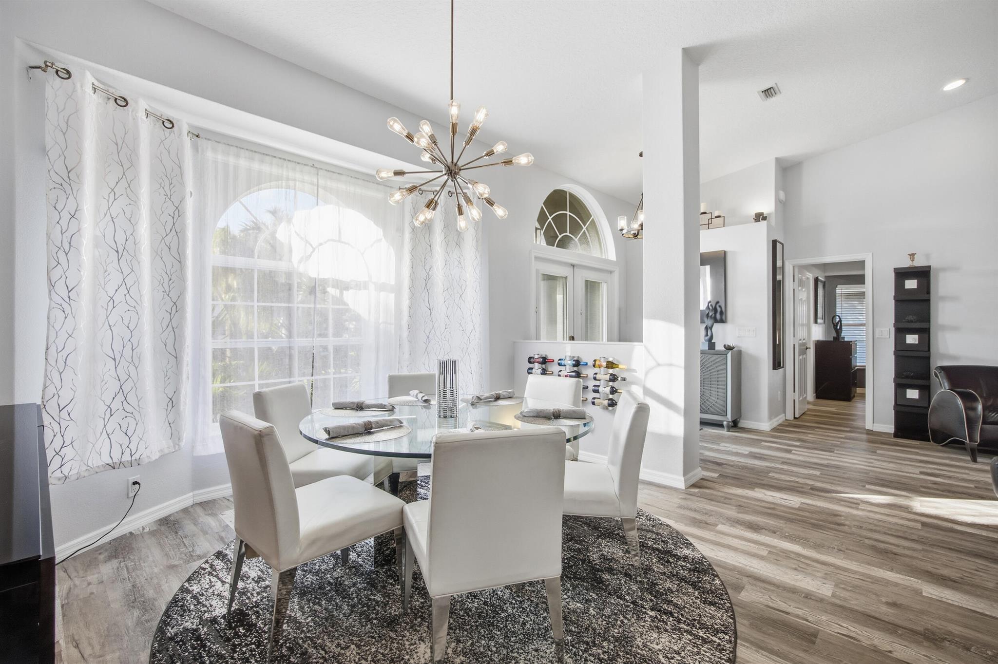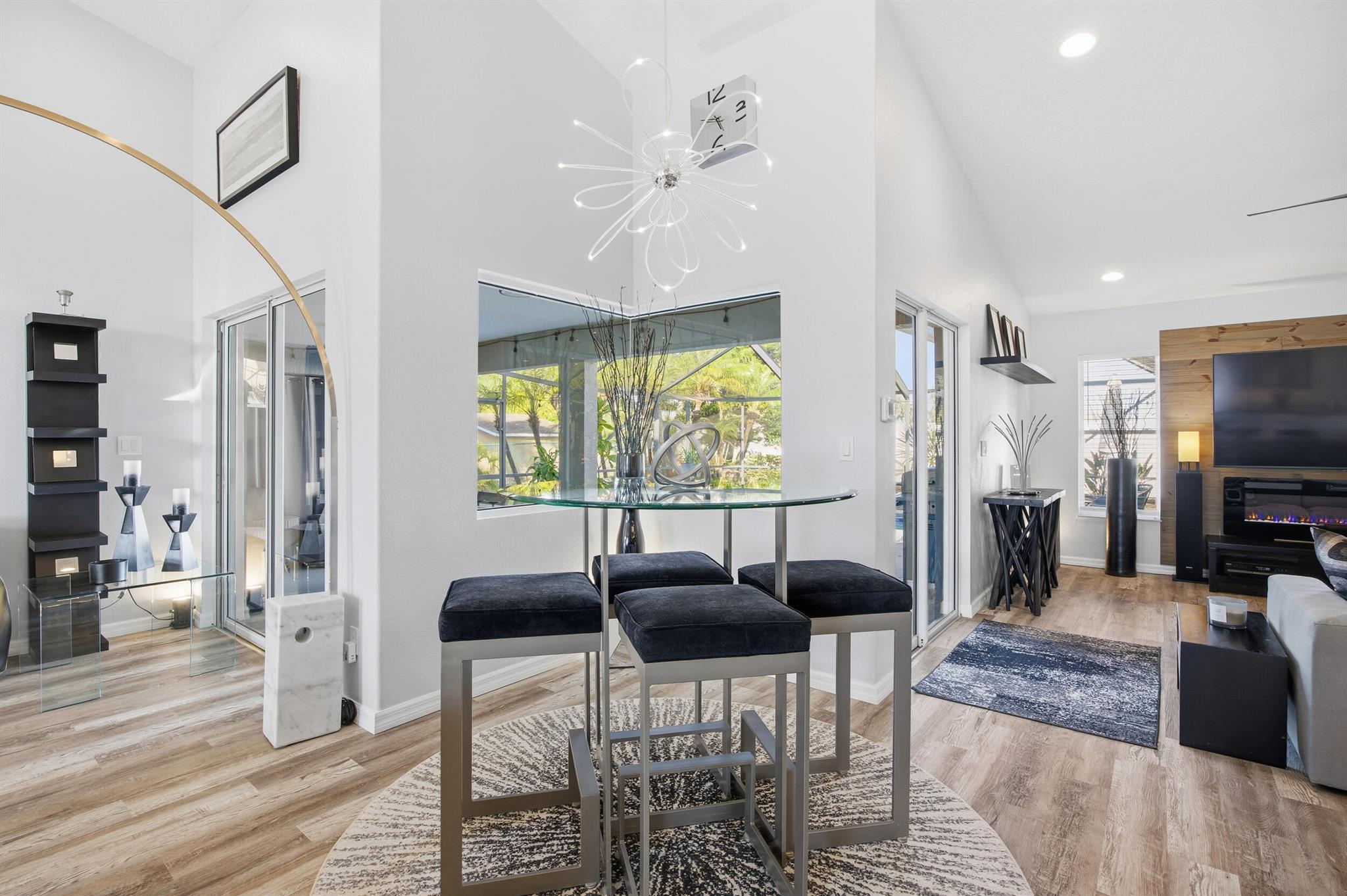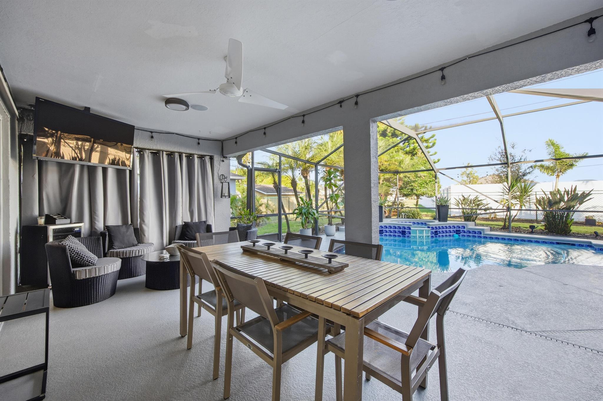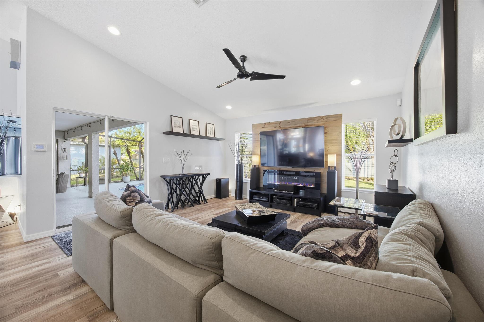 Welcome to this beautifully updated 3-bedroom, 2-bath CBS pool home offering over 2,000 sq. ft. of elegant living space in one of Port St. Lucie's most desirable neighborhoods. Designed with modern style and everyday comfort in mind, this residence features soaring volume ceilings, a bright open floor plan, and multiple living spaces perfect for entertaining or relaxing. The spacious kitchen boasts updated cabinetry, stainless steel appliances, an eat-in area, and a breakfast bar overlooking the family room--creating the ideal central gathering spot. The formal dining and living areas are filled with natural light, offering the perfect blend of sophistication and warmth.