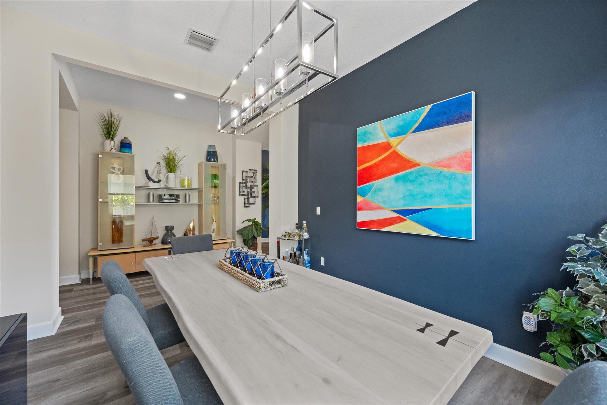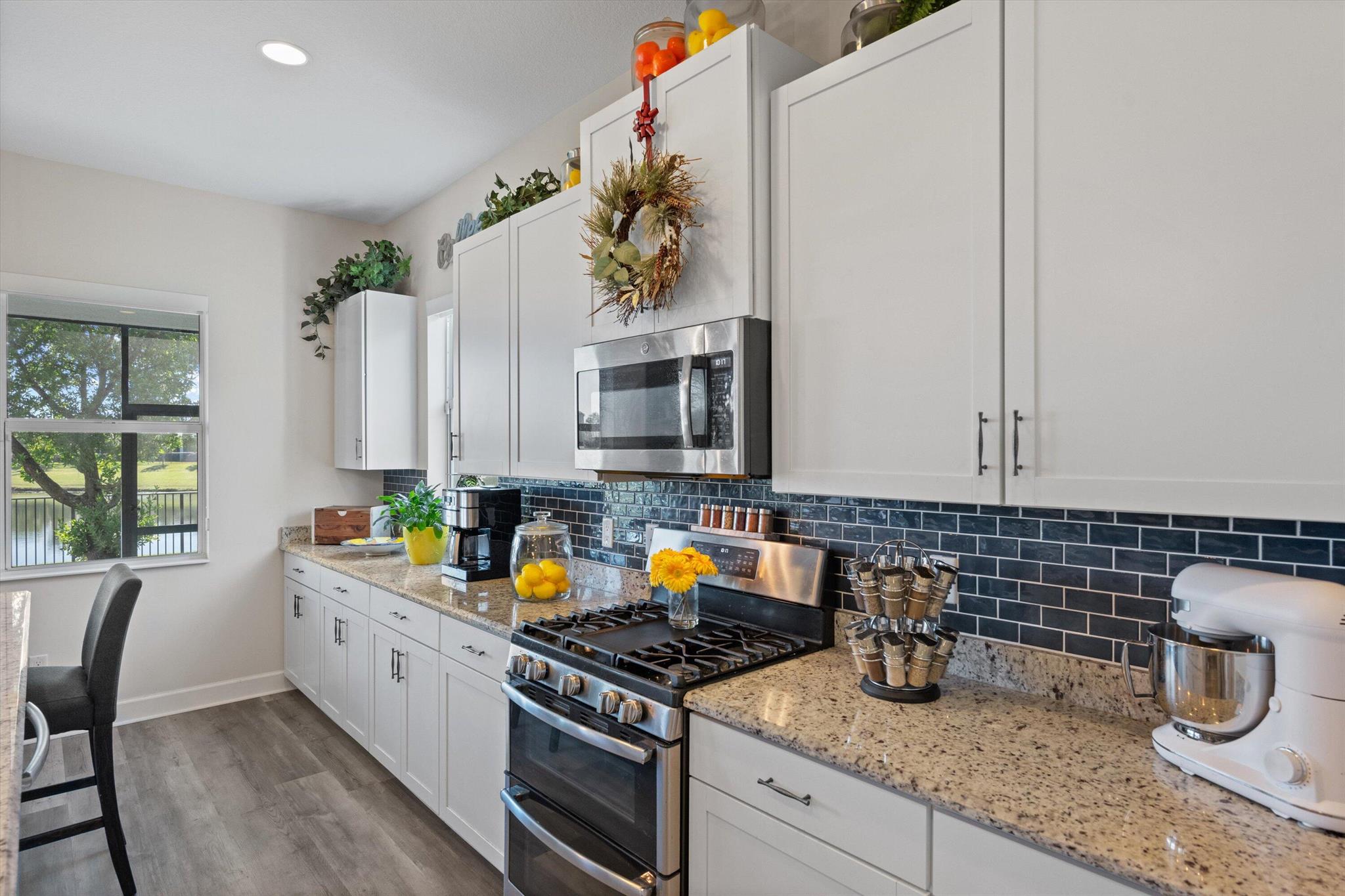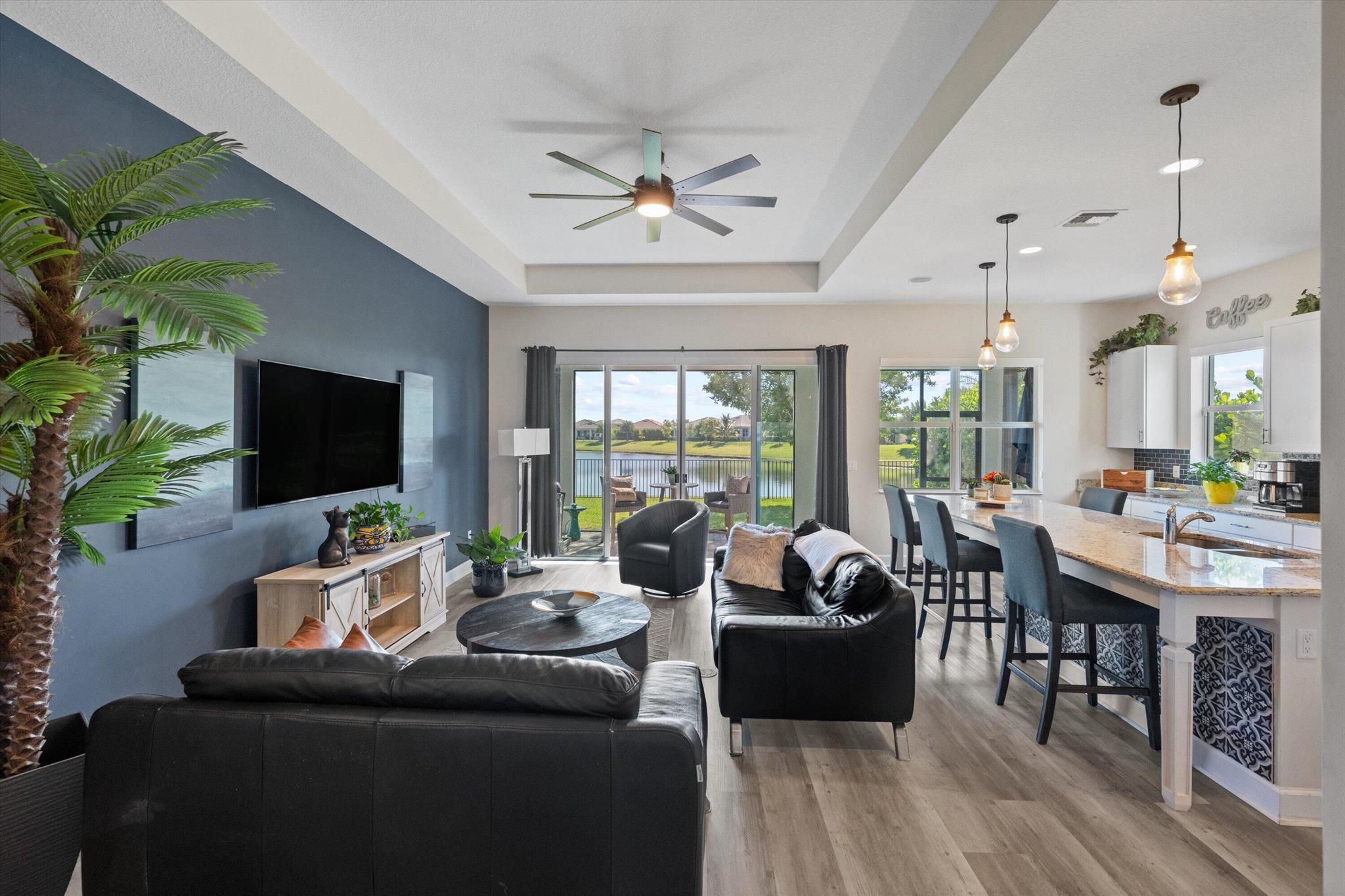 Come see this beautiful, spacious 4 BR / 2.5 BA lakefront home! High ceilings, large windows, and a covered/screened patio provide for an open, airy feel and indoor-outdoor living. Some of the many upgrades include: Core-Fill 500 in exterior CBS walls for strength and energy-efficiency, HVAC UV light, Roller shades, Seamless master shower enclosure w/ dual shower heads, Gas range, extended kitchen island and buffet fully fenced yard and so much more! The house has tile floors throughout, with luxury vinyl on top in the living areas, which can be easily removed to revert to the underlying tile. Located in a gated community with resort style swimming pool, this property offers everything you need to enjoy the best Florida lifestyle!