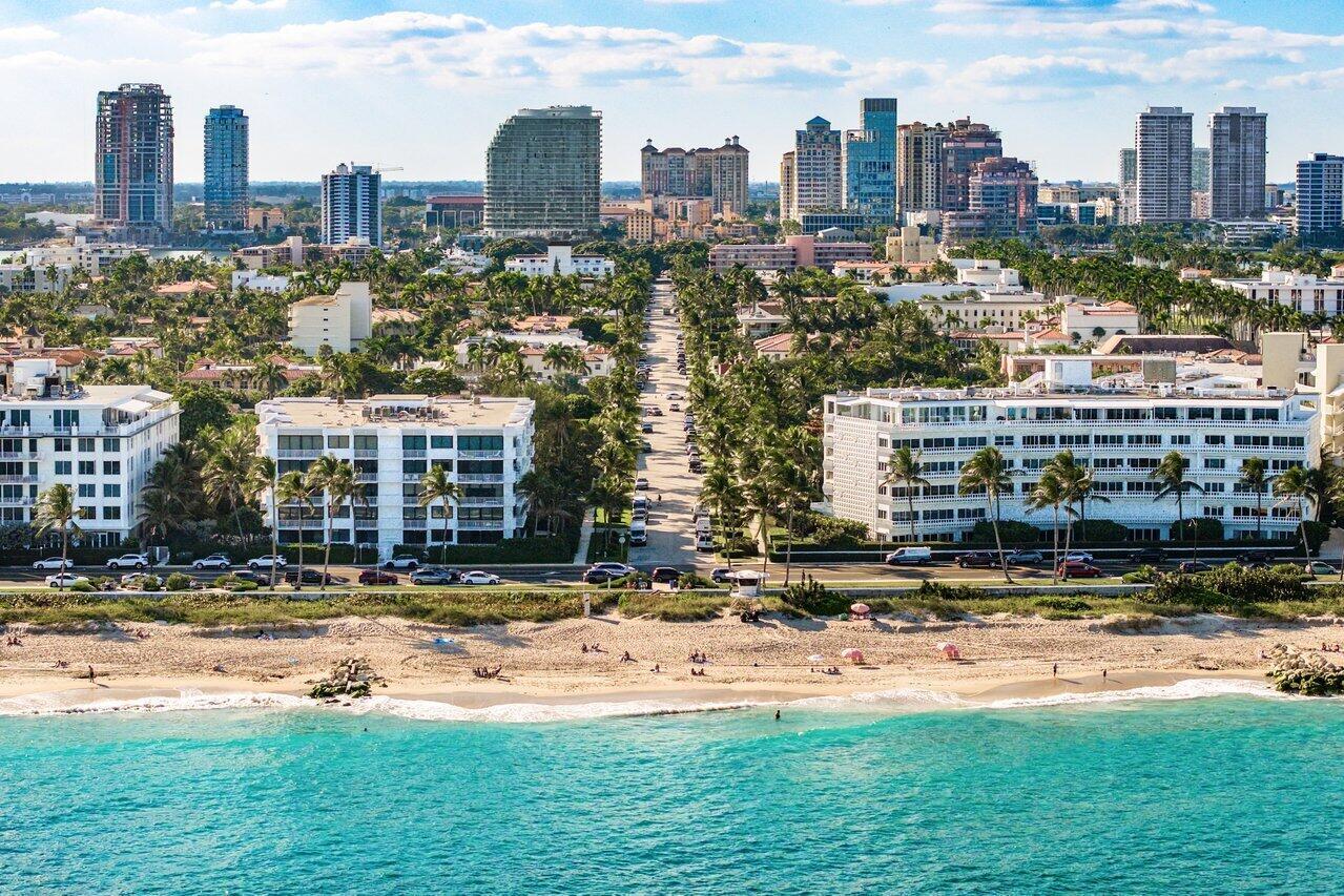 Stunning landmarked jewel blending timeless architecture with modern luxury on a pristine ocean block in the heart of town. Sited on a 12,825 sq ft lot, this renovated Mediterranean Revival estate rises 3 stories and includes a 4-bedroom, 4.5-bath main residence and a beautifully appointed two-bedroom/two-bath guest house. Filled with natural light and exquisite details, the home features a double living room with fireplace, 10' ceilings, formal dining room, library, and inviting family room. Chef's kitchen with Lacanche range, marble counters, custom island and built ins. French doors throughout lead to a covered coquina stone patio and heated salt water pool. Primary suite with marble fireplace, walk-in closet and elegant bath. 3 additional en-suite bedrooms, light oak wood floors,