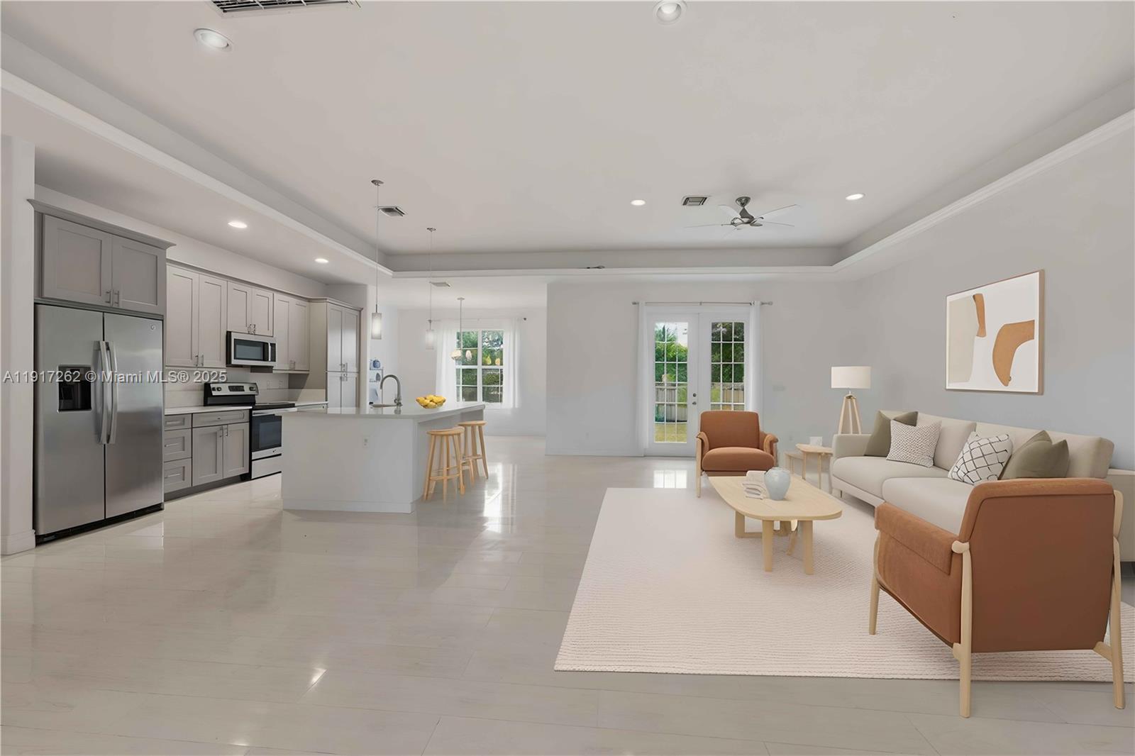Welcome to this spacious Port St. Lucie home offering over 2,000 sq ft of living space on a generous 10,000 sq ft lot. This property features upgraded flooring and bathrooms. French doors, and elegant tray ceilings in living room and master bedroom, along with a comfortable, well-designed layout, large living areas, abundant natural light. Located in a quiet, established area of PSL, the home offers convenient access to major roadways, shopping, parks, and schools. With no HOA, bring your ideas—there’s ample room for future upgrades such as a pool, patio, or expanded outdoor living. Call Daniel for showings, 24-hour notice required.