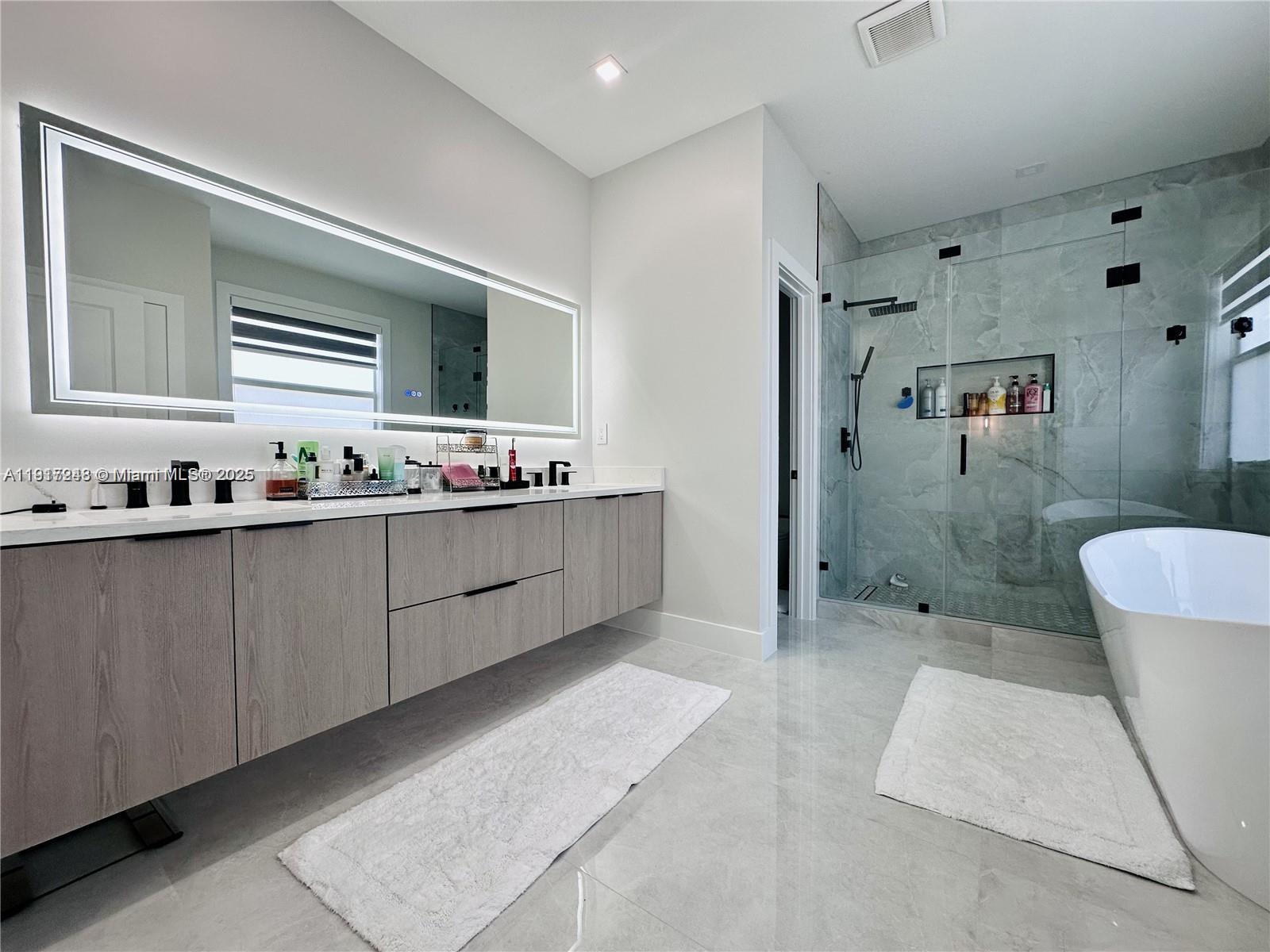 Stunning Single Family Home with Premium Upgrades. Welcome to this beautiful home that offers 5 bedrooms, 4.5 bathrooms, and a three-car garage. Designed for comfort and style, it features custom cabinetry, quartz countertops, premium appliances, garage floor epoxy, and tile flooring throughout. Enjoy peace of mind with impact windows and doors and a saltwater system. For added convenience, there is a full bedroom and bathroom on the first floor, ideal for guests. Step outside to a generously sized backyard, offering plenty of space to build your dream pool and create your own private oasis perfect for entertaining or relaxing in total privacy. This home combines exceptional features and endless potential in a highly desirable location. NO HOA. Schedule your showing today!