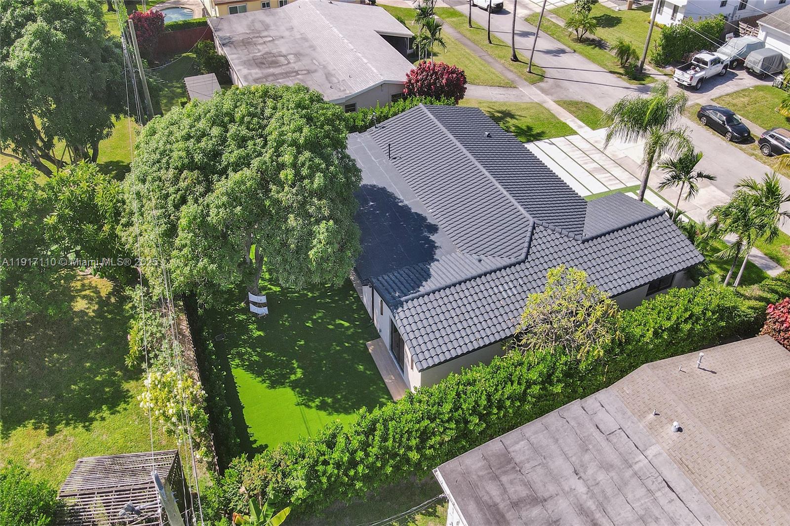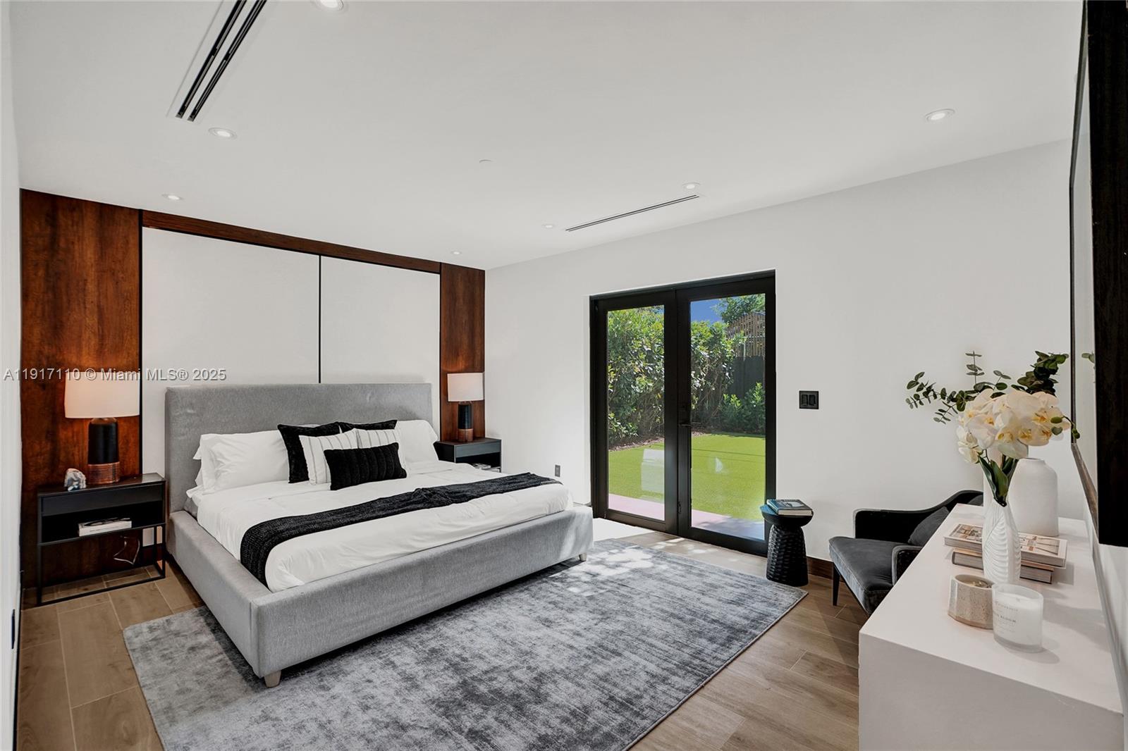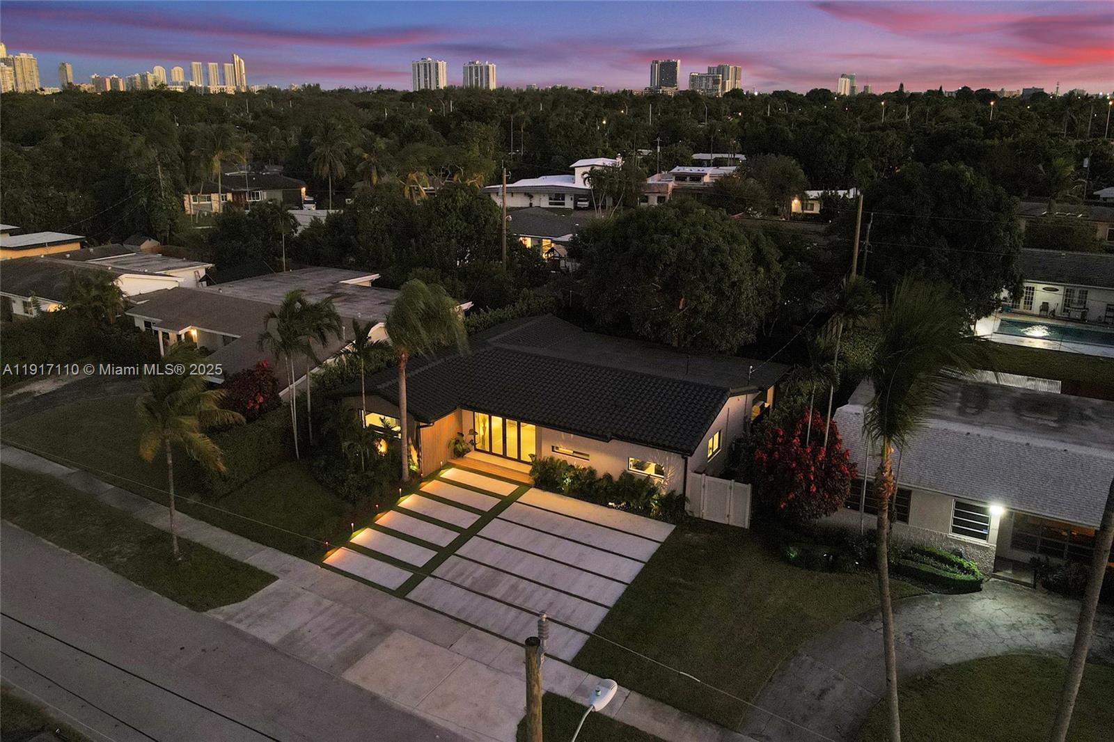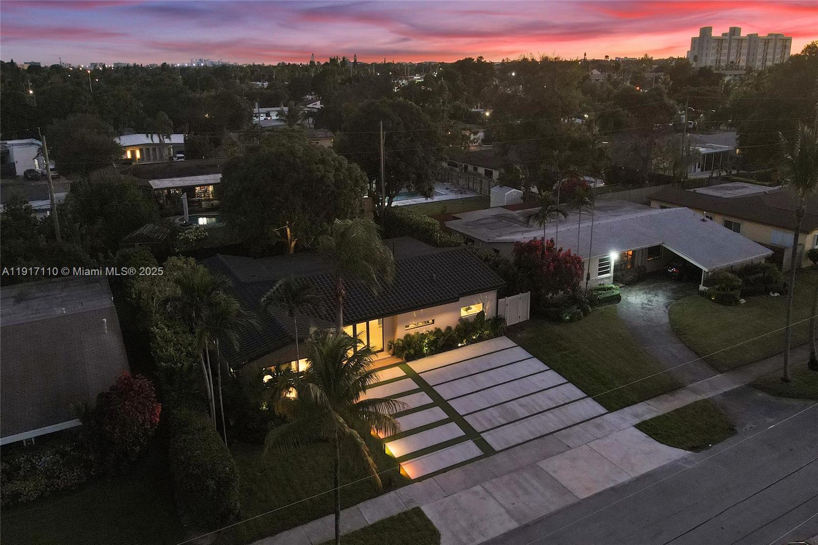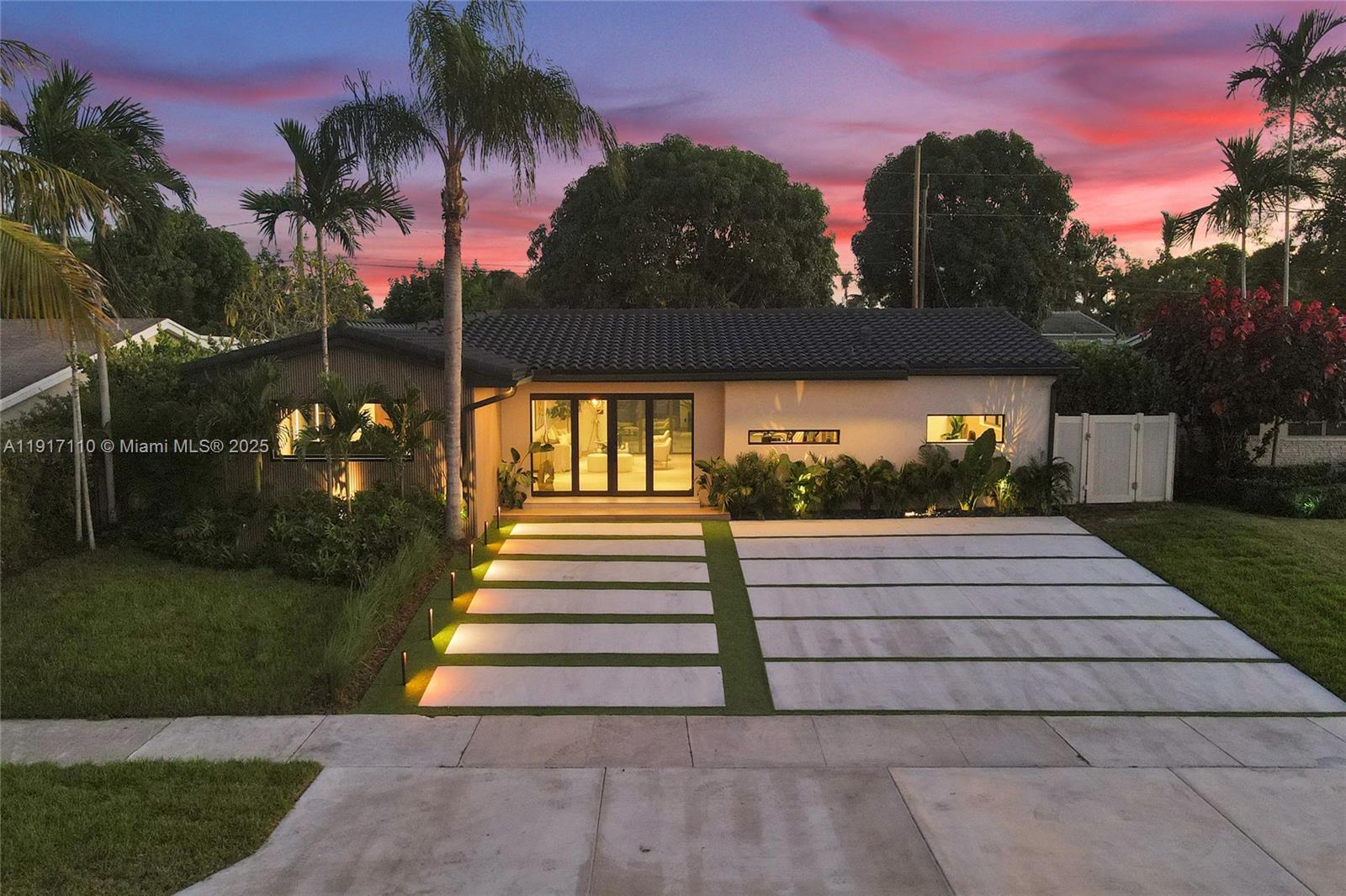 Stunning, fully remodeled modern home featuring clean architectural lines, warm natural tones, and top-quality finishes throughout. The open-concept layout highlights a sleek Italian-style kitchen with custom wood cabinetry, quartz countertops, and top-of-the-line appliances, including stainless steel appliances. This elegant residence features impact-resistant windows and doors, Italian-built-in closets, large porcelain floors, high ceilings, and designer LED lighting. The spacious living and dining areas are surrounded by glass sliders that fill the home with natural light and create a perfect indoor-outdoor flow. The outdoor space is designed for entertaining, featuring a built-in BBQ, artificial grass, and beautifully landscaped gardens. Every detail combines luxury and functionality