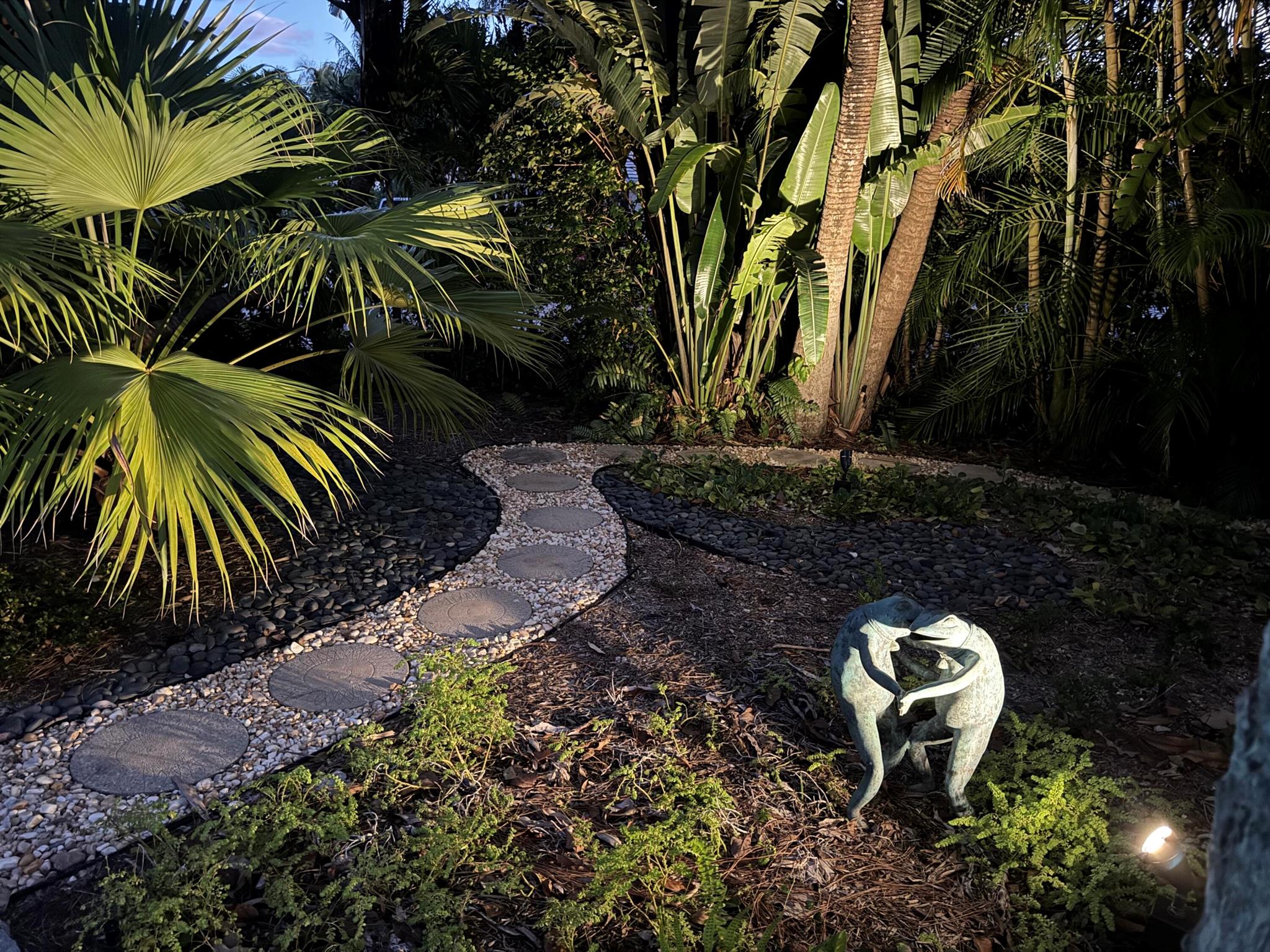 Custom designed by award-winning architect Bob Currie--and originally built as his personal residence--this remarkable home is an architectural treasure in one of Gulf Stream's most desirable, private communities, Place Au Soleil. Offering four bedrooms, three and a half baths, and more than 3500+ square feet of thoughtfully curated living space, the home blends refined artistry with modern comfort, all surrounded by lush, native landscaping that attracts butterflies, birds, and gentle breezes from the nearby Intracoastal. The grounds have been reimagined by Florida native-plant designers to create a water-conserving habitat brimming with essential pollinators and coastal wildlife, and include a dwarf Julie mango tree.A walk through the front garden brings guests along a path