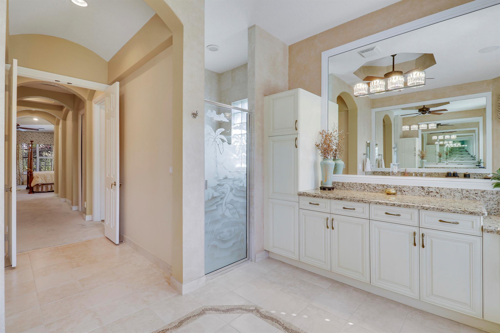 CUSTOM BUILT POOL HOME WITH GOLF & WATER VIEWS in the prestigious Scarborough Estates neighborhood of PGA Village! This elegant 4BR+Office+Flex/4.5BA/3CG home offers plenty of living space for everyone to enjoy. Some of the many special features include IMPACT GLASS windows & doors, GENERATOR, NEWER ACs (2021), new WH (2025), office with built in shelving unit, spacious lanai with pool and summer kitchen, elegant kitchen with butler's pantry and master bedroom suite with dual water closets. The minute you step through the front door the stunning vistas will catch your eye through the floor to ceiling windows. The spacious kitchen features a gas cooktop, granite counters, tumbled marble backsplash, new refrigerator & dishwasher (2024), newer double ovens & food warmer and breakfast bar.