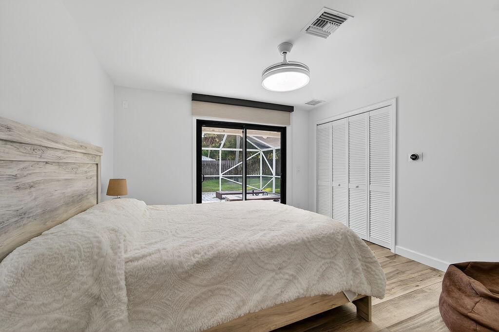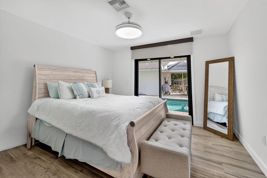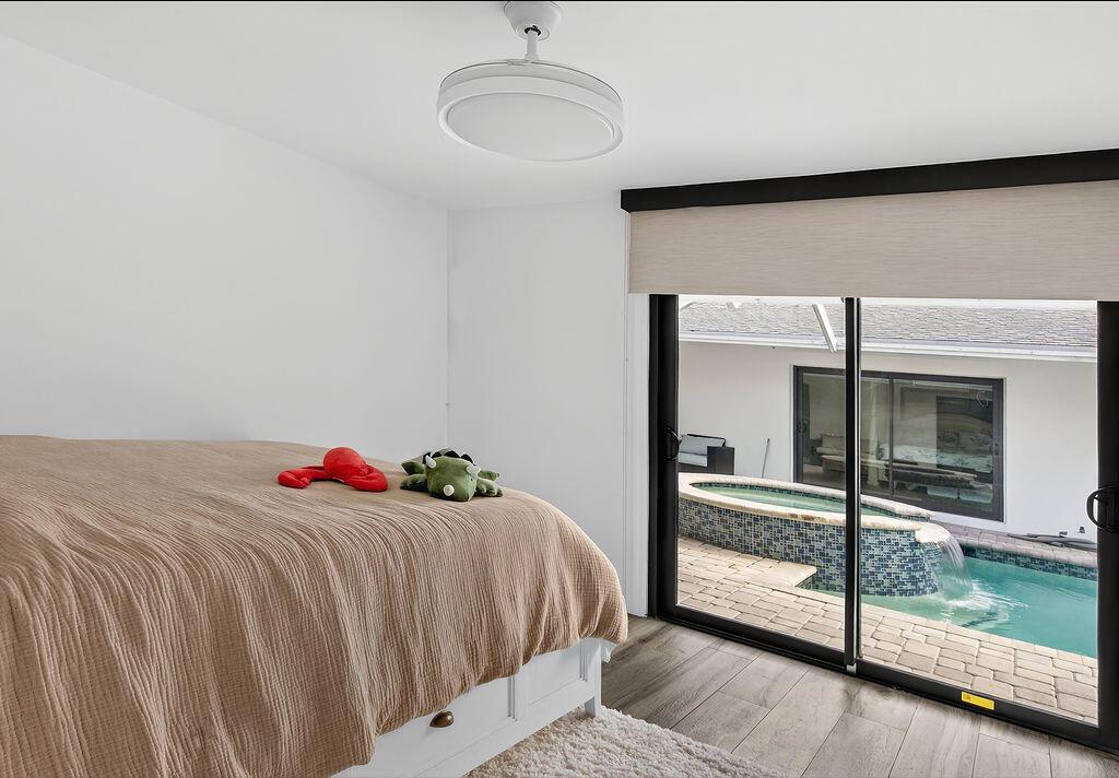 Beautiful 5BR/4BA waterfront home on 1.8 acres with 100 ft of river frontage and ocean access. Fully renovated in 2024 with a custom kitchen, Thermador appliances, Zephyr wine cooler, and whole-house water filtration. Features impact windows/doors, newer roof, 2024 water heater, generator, and 3 newer A/C units. Enjoy a screened pool with jacuzzi and waterfalls, fenced yard with fruit trees, 2-car garage plus separate CBS 3rd garage. Includes a 200-ft dock with boathouse, electric, water, and 16,000-lb lift (dock needs work). Offered fully furnished; personal items and wall decor do not convey. Incredible water views.