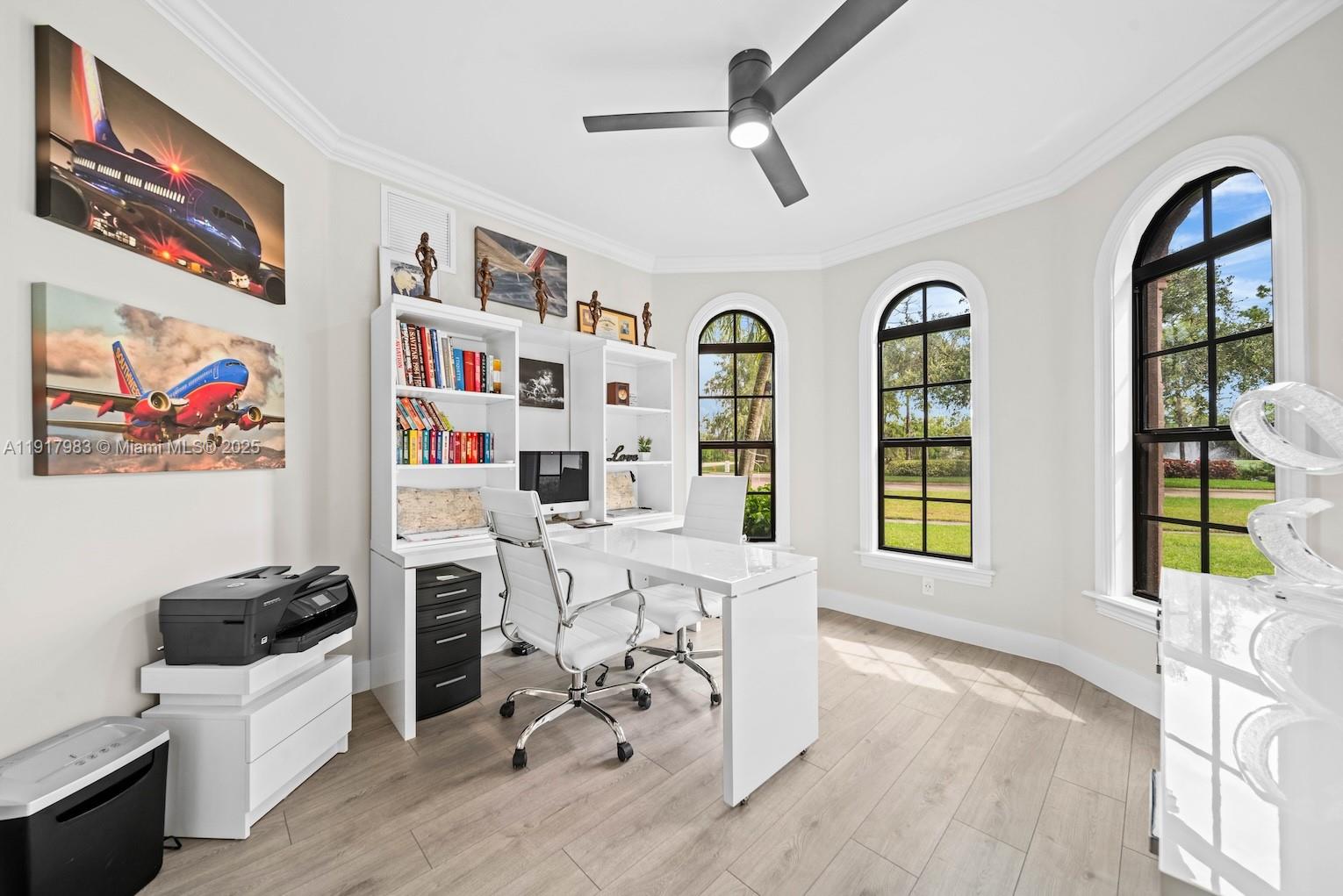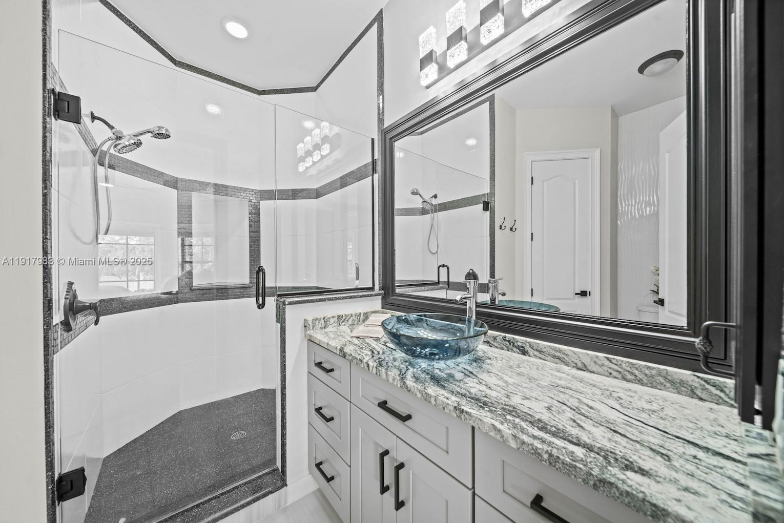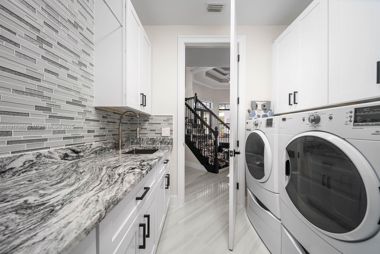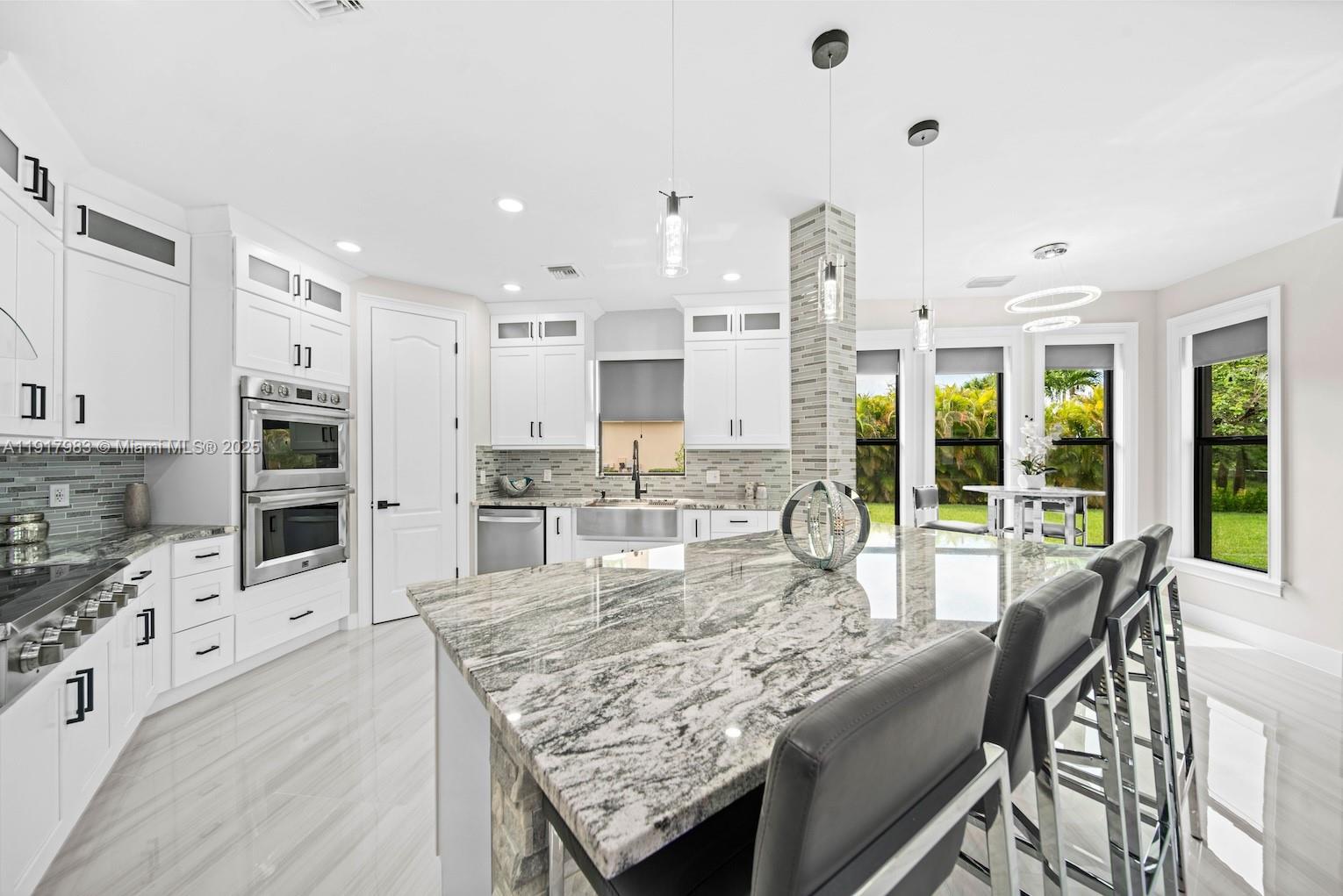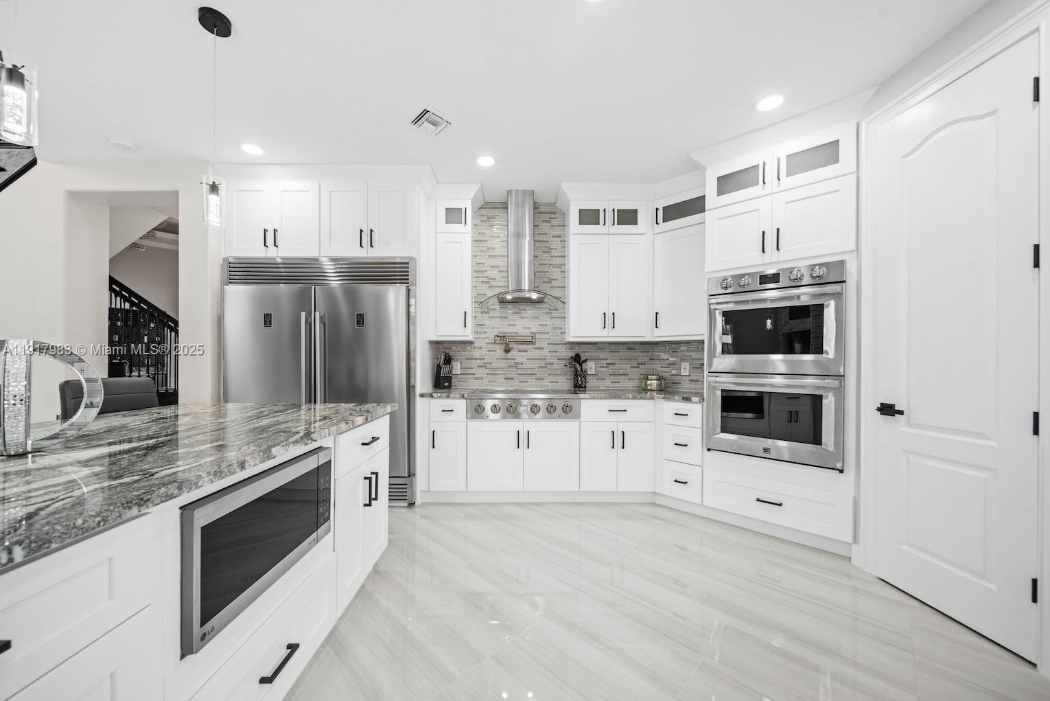 Discover this completely renovated Castle-style estate featuring 4 bedrooms, 4.5 baths, plus a spacious den, all nestled on an oversized premium lot. This extraordinary residence offers a seamless blend of luxury, comfort, and resort-style living with preserve views. The backyard is a true tropical oasis, showcasing a custom oversized pool with multiple waterfalls, a heated spa, and a beautifully designed outdoor kitchen and grill area—perfect for entertaining. An outdoor full bathroom provides added convenience for poolside gatherings. Inside, the home features tile and wood flooring throughout, a large open gourmet kitchen with high-end finishes, and a first-floor primary suite offering privacy and comfort. The architectural details and thoughtful layout create an inviting atmosphere with plenty of natural light. Additional highlights include a stone-coated metal roof, spacious living areas, and an oversized den ideal for an office, gym, or media room. This rare offering combines elegance, quality craftsmanship, and resort-style amenities—truly a one-of-a-kind property. Easy access to the gate and clubhouse. Mandatory equity membership fee of $115,000 due at closing.