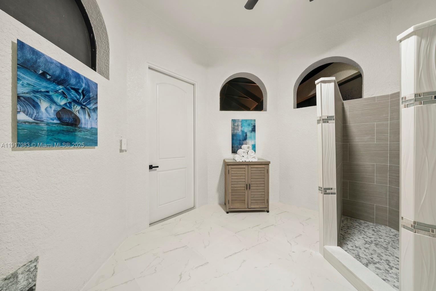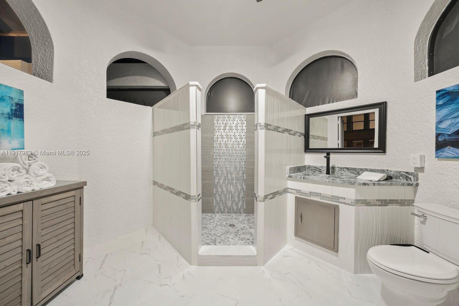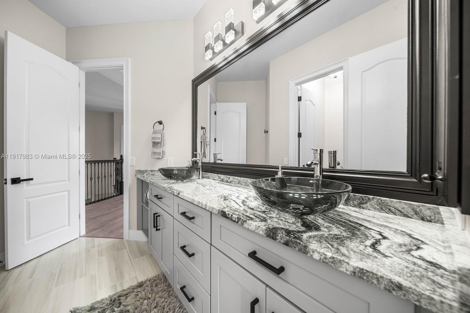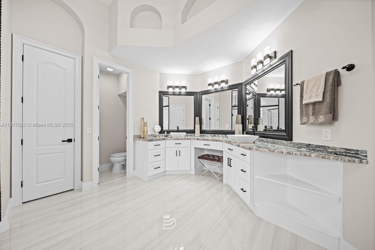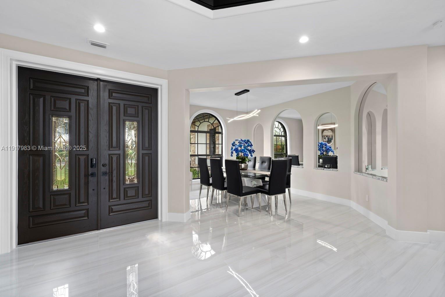 Discover this completely renovated Castle-style estate featuring 4 bedrooms, 4.5 baths, plus a spacious den, all nestled on an oversized premium lot. This extraordinary residence offers a seamless blend of luxury, comfort, and resort-style living with preserve views. The backyard is a true tropical oasis, showcasing a custom oversized pool with multiple waterfalls, a heated spa, and a beautifully designed outdoor kitchen and grill area—perfect for entertaining. An outdoor full bathroom provides added convenience for poolside gatherings. Inside, the home features tile and wood flooring throughout, a large open gourmet kitchen with high-end finishes, and a first-floor primary suite offering privacy and comfort. The architectural details and thoughtful layout create an inviting atmosphere with plenty of natural light. Additional highlights include a stone-coated metal roof, spacious living areas, and an oversized den ideal for an office, gym, or media room. This rare offering combines elegance, quality craftsmanship, and resort-style amenities—truly a one-of-a-kind property. Easy access to the gate and clubhouse. Mandatory equity membership fee of $115,000 due at closing.