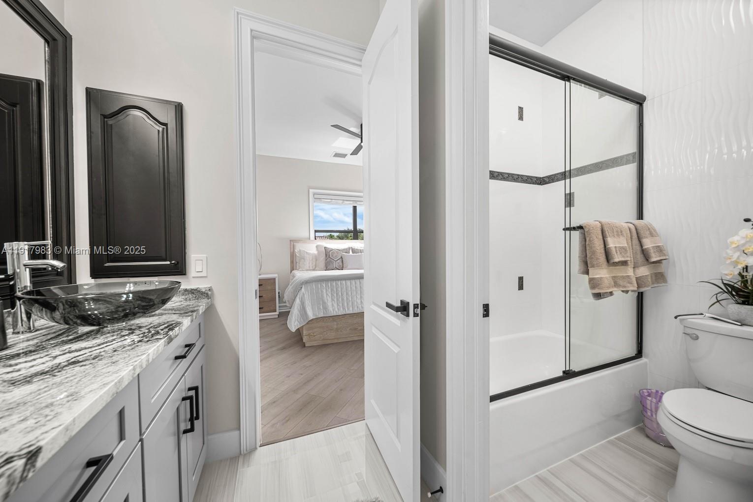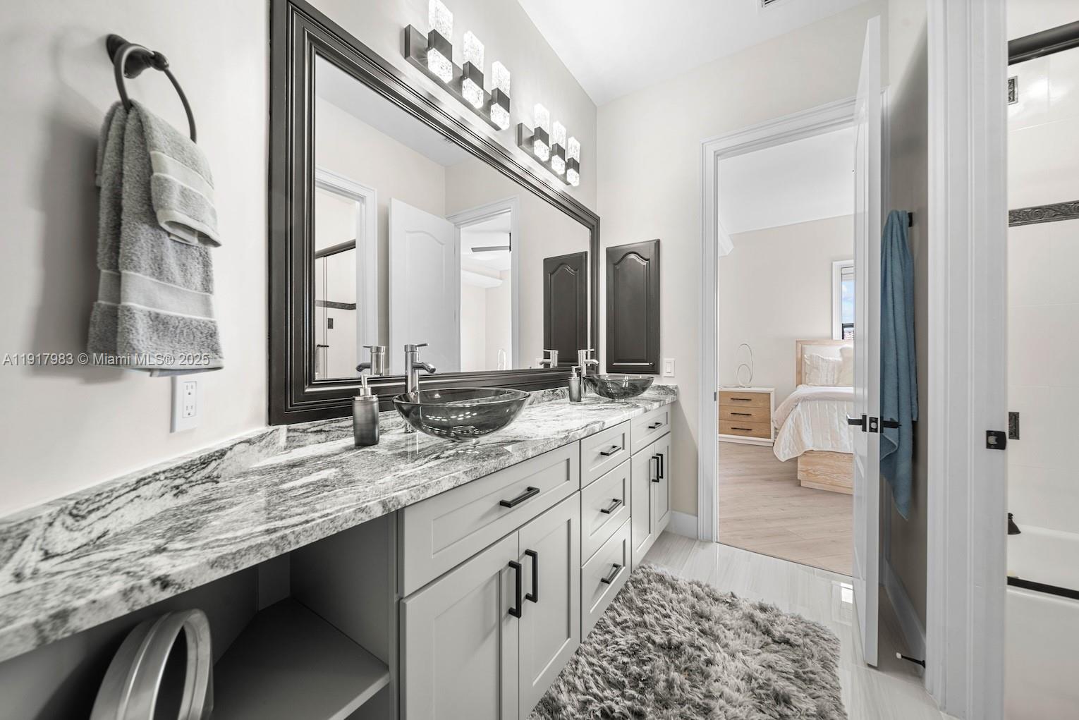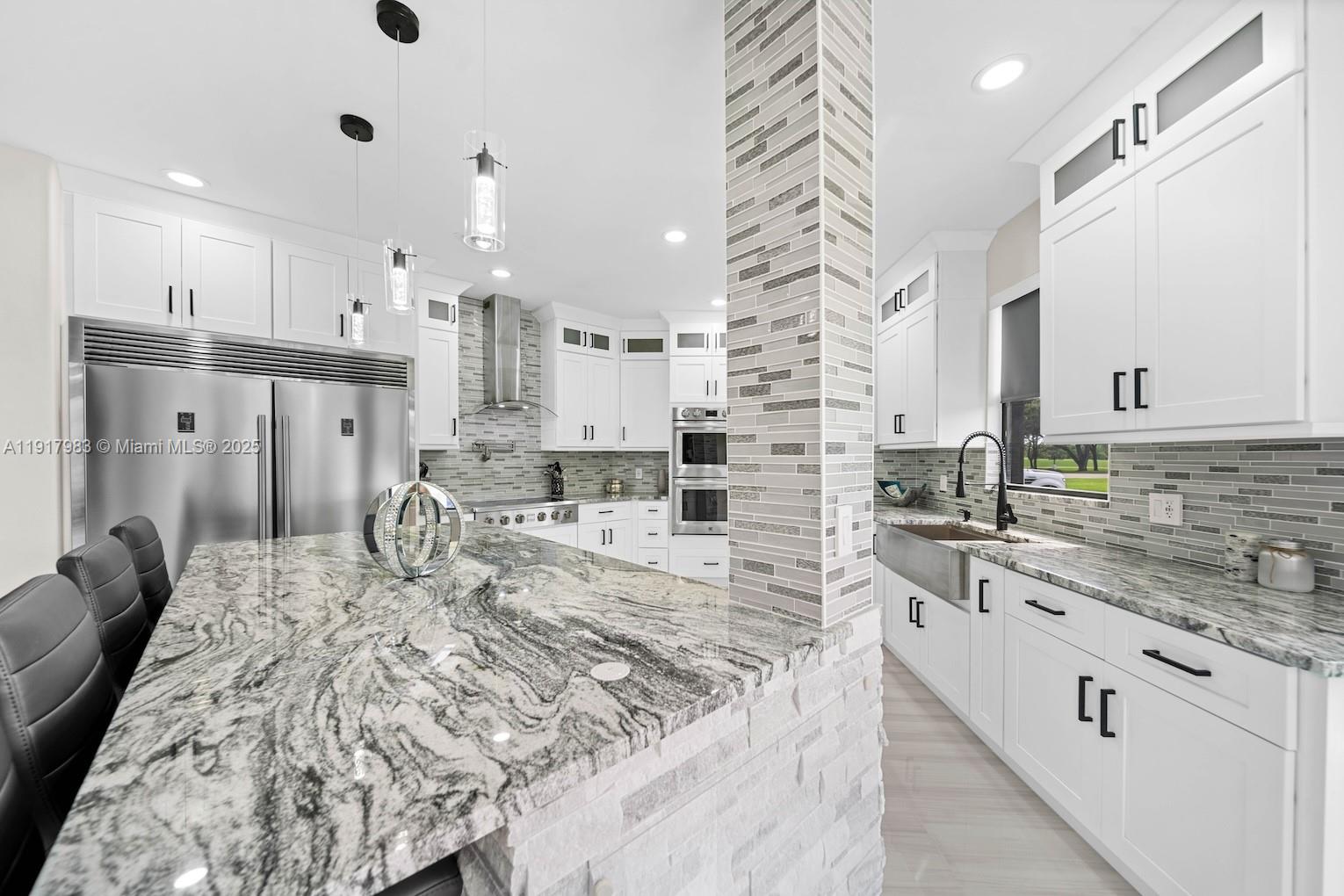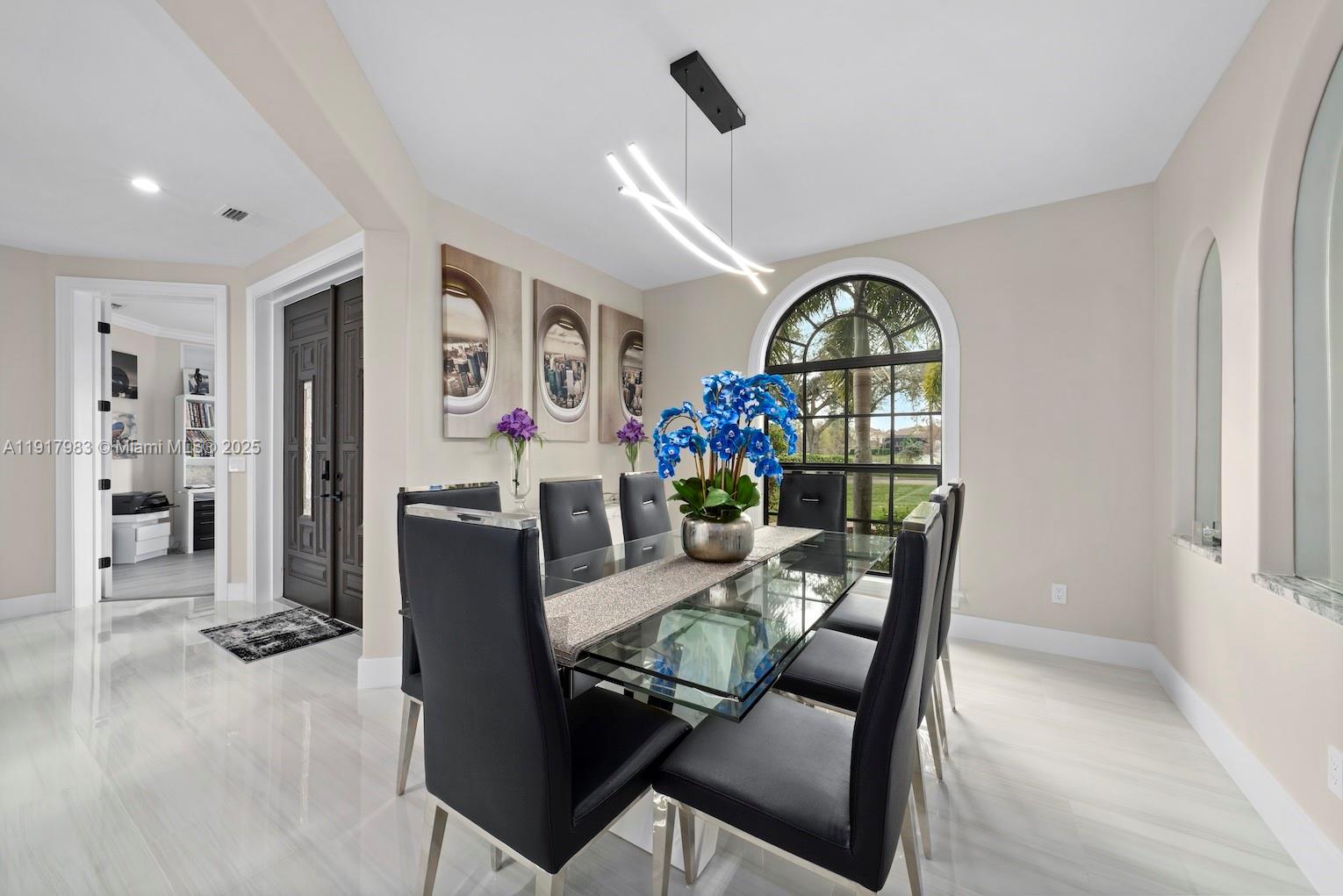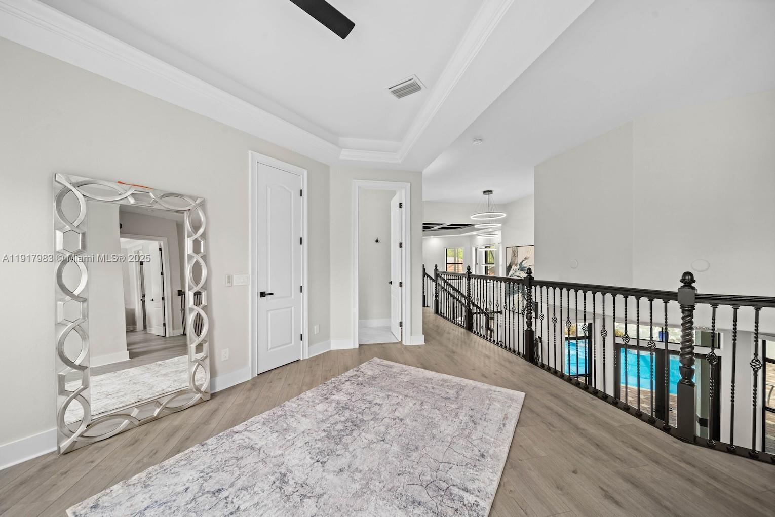 Discover this completely renovated Castle-style estate featuring 4 bedrooms, 4.5 baths, plus a spacious den, all nestled on an oversized premium lot. This extraordinary residence offers a seamless blend of luxury, comfort, and resort-style living with preserve views. The backyard is a true tropical oasis, showcasing a custom oversized pool with multiple waterfalls, a heated spa, and a beautifully designed outdoor kitchen and grill area—perfect for entertaining. An outdoor full bathroom provides added convenience for poolside gatherings. Inside, the home features tile and wood flooring throughout, a large open gourmet kitchen with high-end finishes, and a first-floor primary suite offering privacy and comfort. The architectural details and thoughtful layout create an inviting atmosphere with plenty of natural light. Additional highlights include a stone-coated metal roof, spacious living areas, and an oversized den ideal for an office, gym, or media room. This rare offering combines elegance, quality craftsmanship, and resort-style amenities—truly a one-of-a-kind property. Easy access to the gate and clubhouse. Mandatory equity membership fee of $115,000 due at closing.