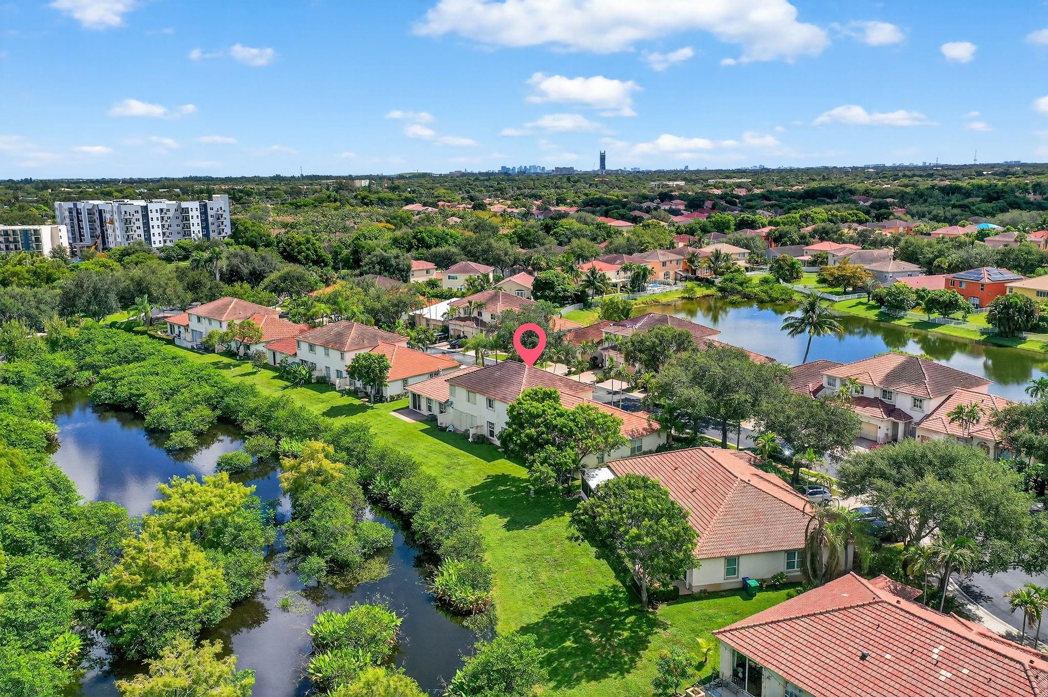 3 bedroom, 3 full bath townhouse PLUS LOFT that can be enclosed for a 4th room. Mini office work station. One full bedroom & bathroom on first floor. Laundry on the first floor. Home is located on a pond w/ privacy hedges. Cul de sac street. Tile & laminate throughout. Smart stainless steel appliances. Hurricane accordian shutters. Approx ages: water heater 2 yrs, washer dryer 5yrs, appliances 3 yrs. HOA includes: cable, alarm, internet, manned guard gate, amenities. Gated community w/pool, kids pool, clubhouse, gym, tennis. Centrally located. Pets allowed.
