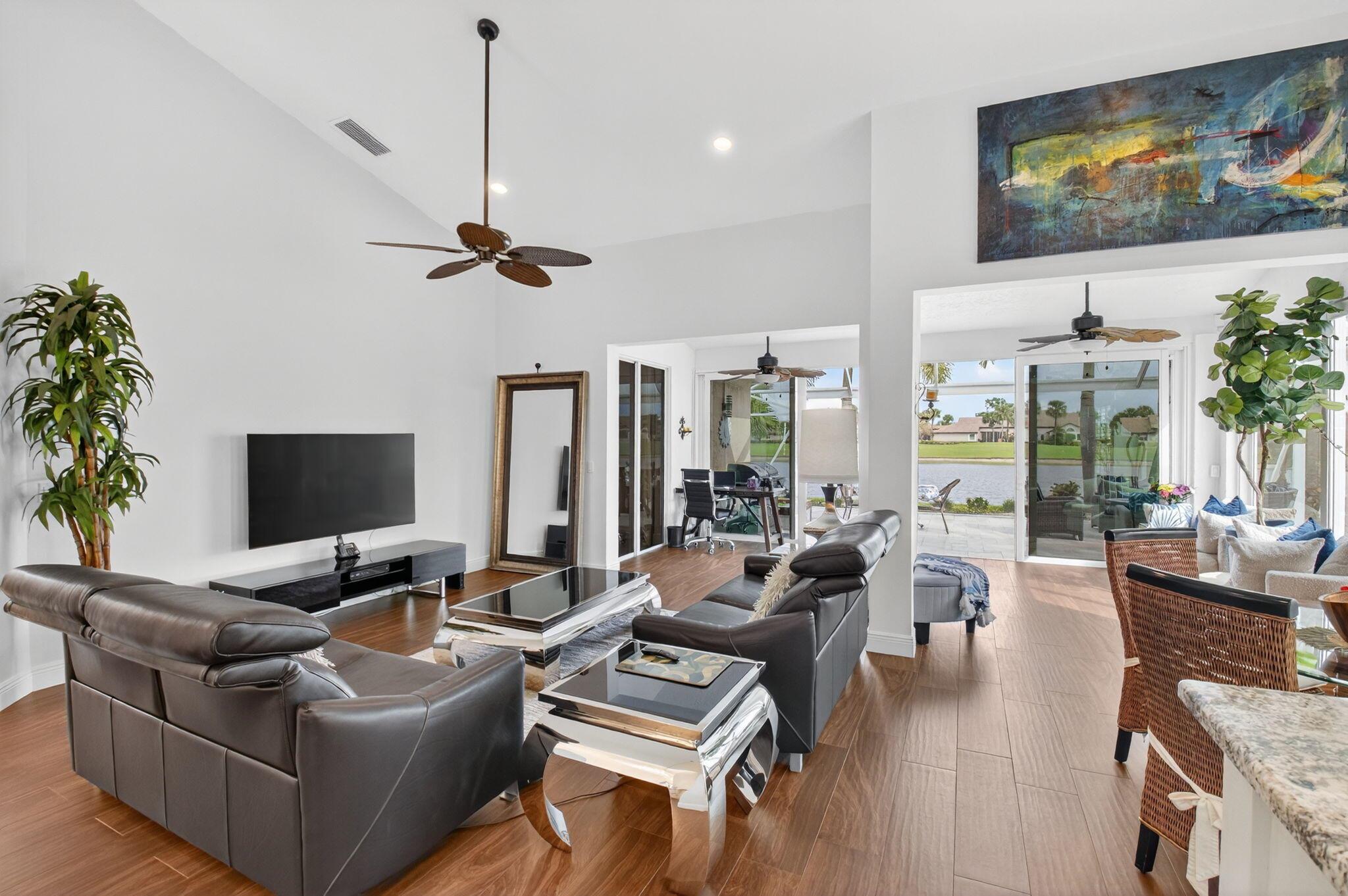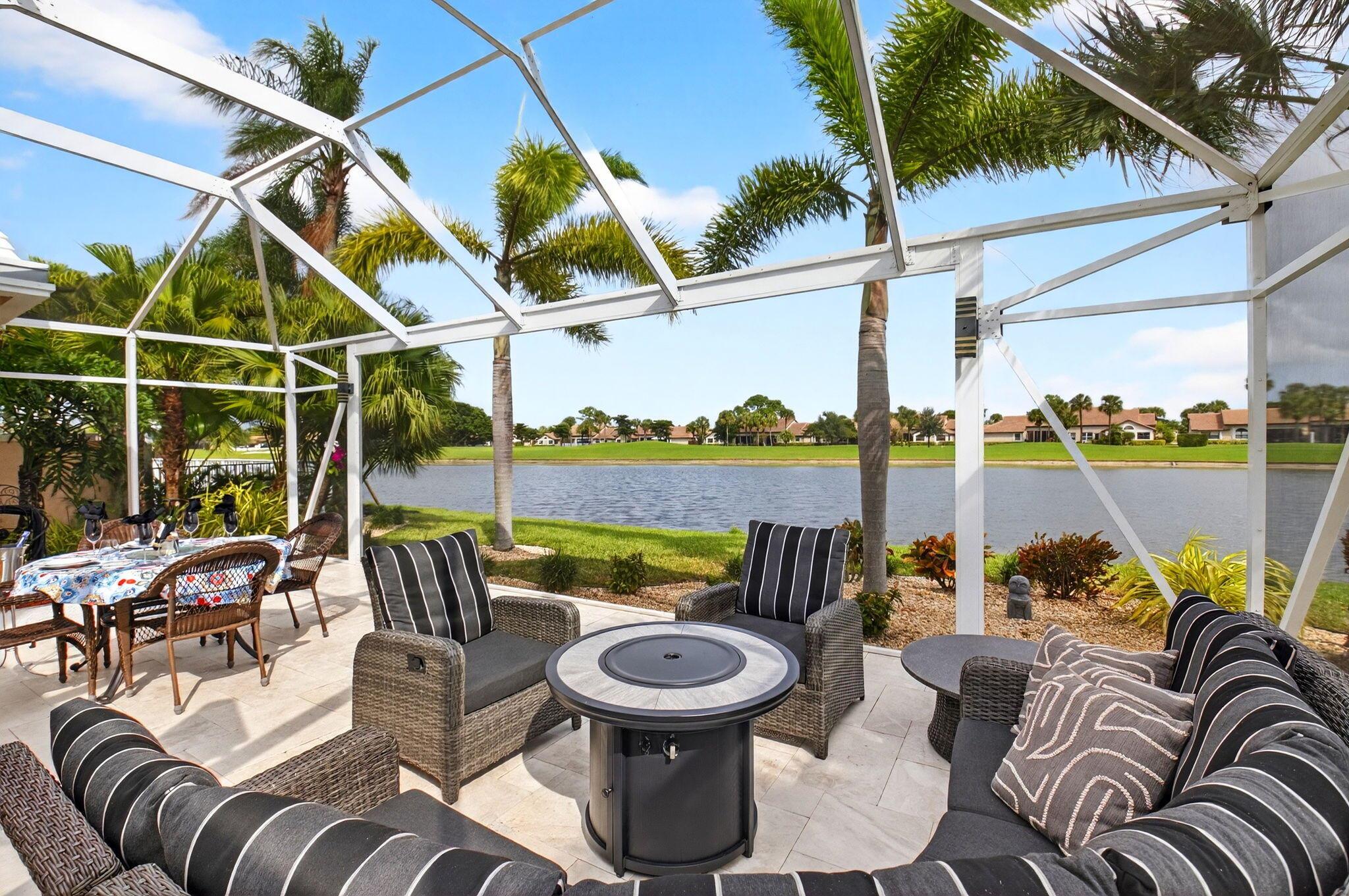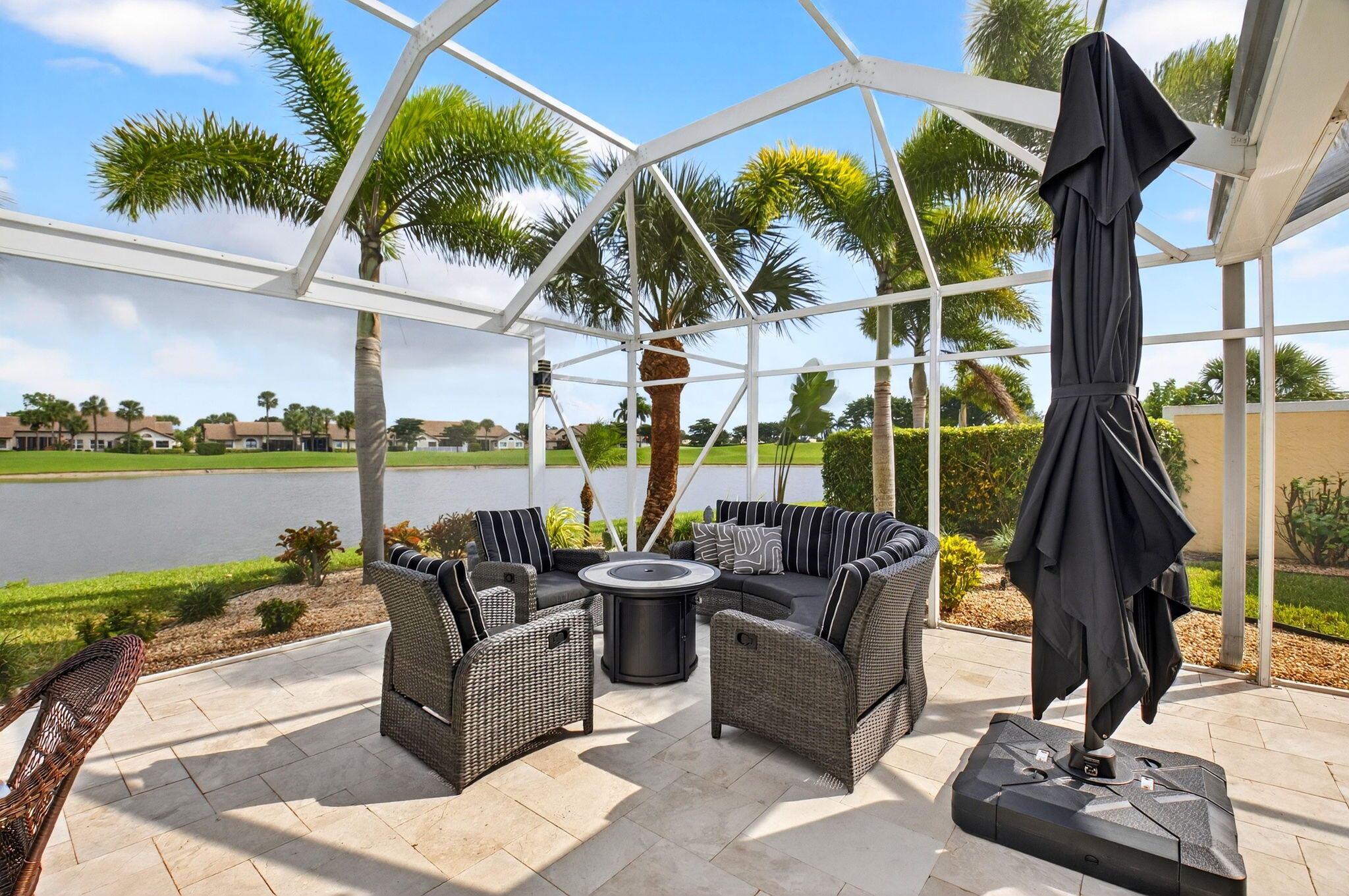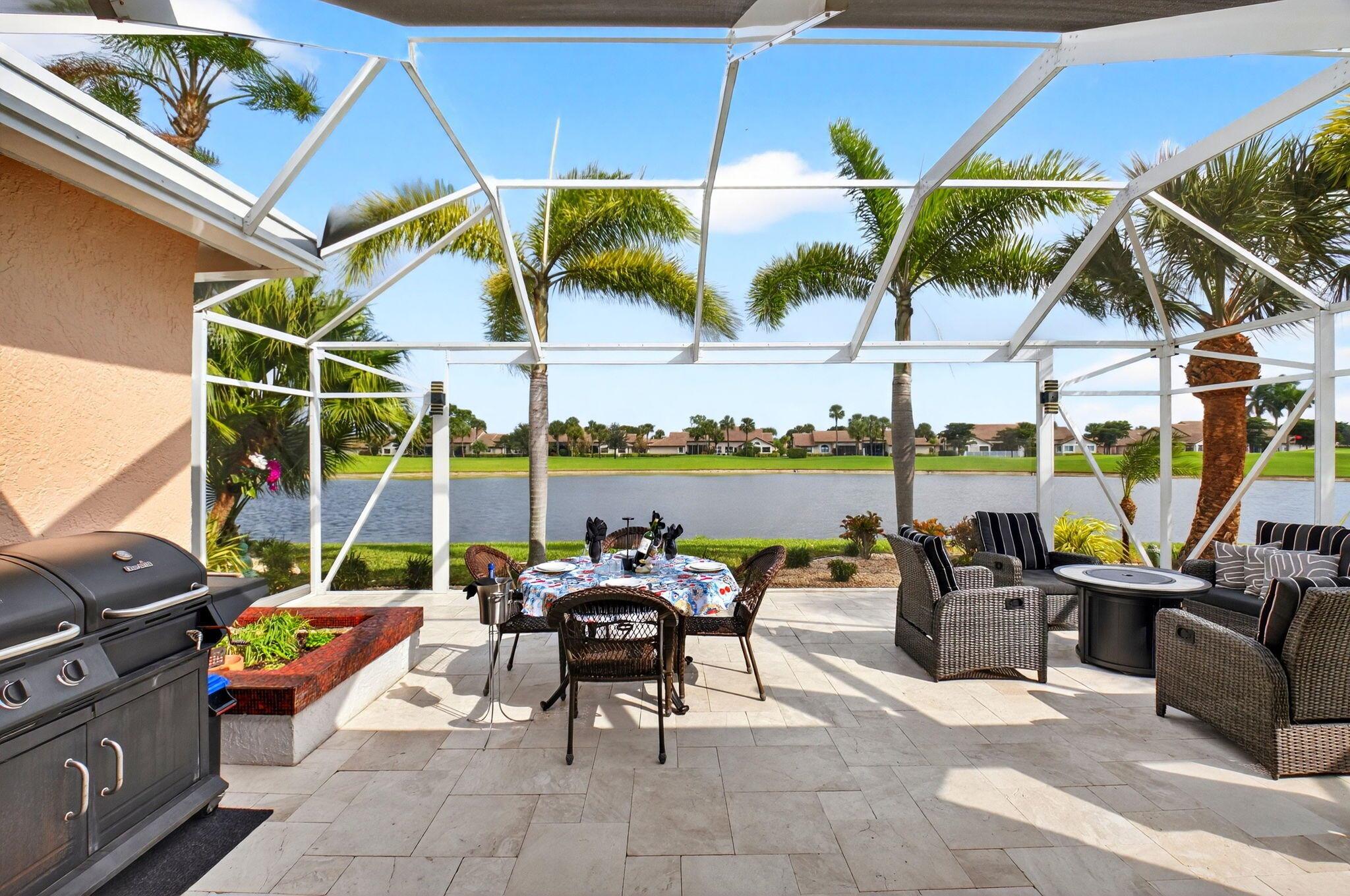 EXTENSIVE RENOVATIONS 3BR/2BA. New ROOF, IMPACT GLASS, extra square footage added overlooking a serene lake & golf view on the 5th hole. Enjoy your mornings & evenings in your NEW SCREENED LANAI enjoying the sunset, sunrise & wildlife. Kitchen & Baths all redone in soothing neutral colors. This home comes fully furnished excluding some artwork & personal items. Owners are seasonal so lightly used. There is nothing to do but move-in. Buyer to verify all info. Aberdeen is a mandatory membership club, please see attachments for fee info. Aberdeen features a challenging & immaculate Jim Fazio 18-hole golf course, 14 har-tru tennis courts, 6 pickleball courts, state of the art fitness, 3 pools at main clubhouse, 3 golf & 3 racquet pros, golf & tennis pro shops, 2 bocce ball courts, see more.