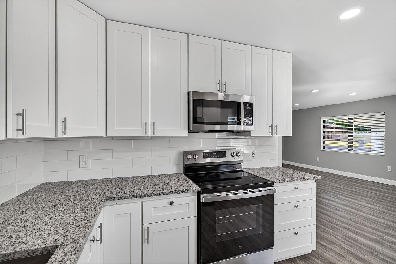 Its all done for you at this lovely, refreshed 3/2 home! Enjoy peace of mind w/ the solid CBS construction, 2021 roof, 2022 whole house solar panels (totally paid off- HELLO monthly electric savings $$!), 2020 AC & updates around every turn. Enjoy the breezy carport, covered patio & fenced yard that's nearly a third of an acre w/ a storage shed & playhouse! Fresh paint inside/outside + throughout there is new: flooring, baseboards, lighting, fans & blinds. The kitchen is thoughtfully complete w/ SS appliances, granite, subway tile, a pantry & even lazy susan cupboard! FHA seasoning date 12/30.