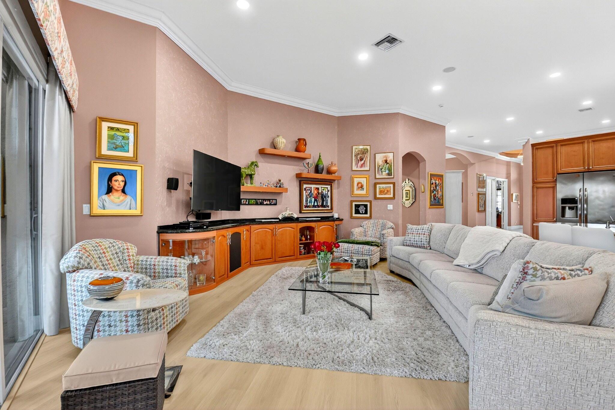 This magnificent tropical paradise, Chatam model home is located on the quietest street in Manchester Lakes Wycliffe Golf & Country Club with amazing lake/fountain views is priced right and ready to go. Spectacular double glass entry doors. The Chatam model is the perfect layout for entertaining family and friends including, a large living room, formal dining room, renovated kitchen open to the family room, large primary bedroom with 2 fitted walk-in closets, a beautifully renovated primary bath, 2 guest bedrooms each with renovated full baths, office/den or optional 4rd bedroom with French doors and a renovated powder room. If you are looking for peace and tranquility, look no further. A large patio, full screen enclosure with the latest picture window design with lake & fountain views.