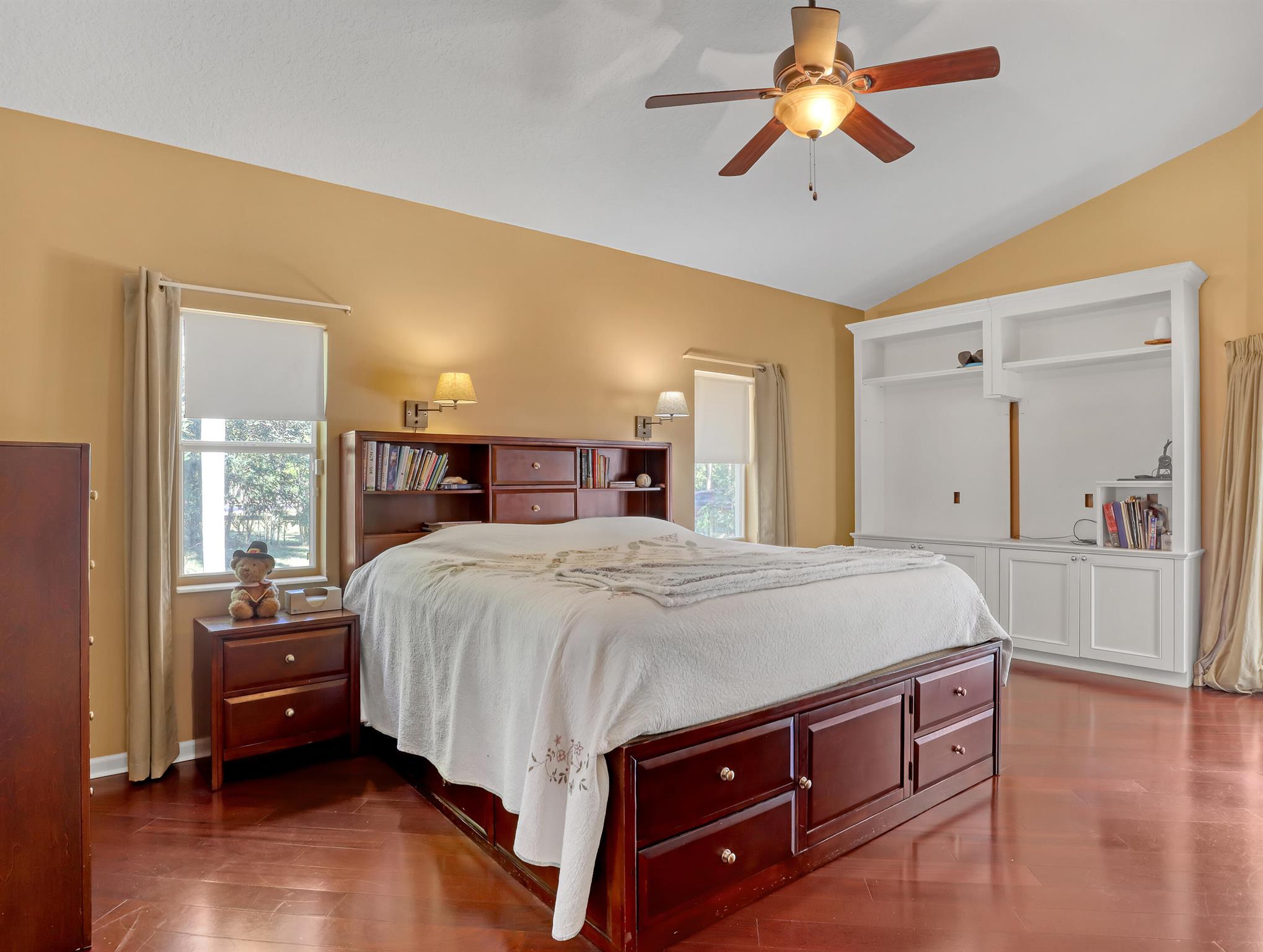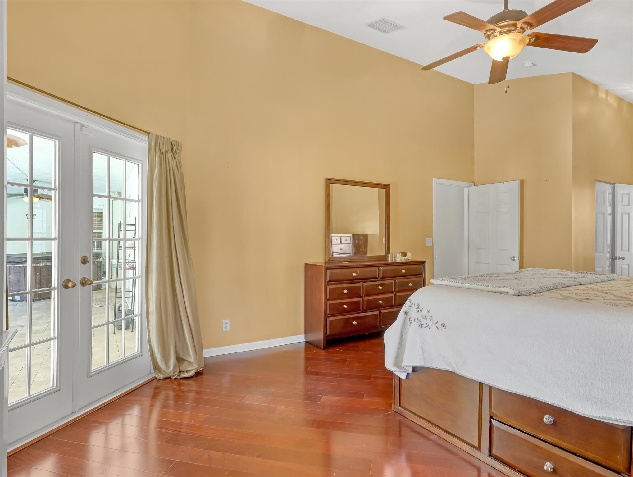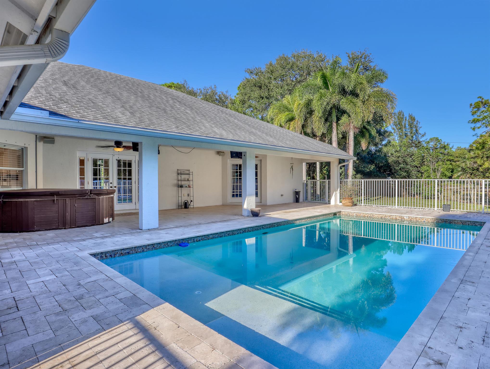 Welcome Home... to your 4 bdrm, 3 bath, 3 car garage, pool home PLUS 1,050 sq ft annex bldg (w/ 3 bay doors, fully insulated, electric & a/c) on almost 1.5 acres. Corner lot w/ fully fenced yard w/ entry gates, heated pool, cov'd patio and trees that provide privacy. With NO HOA this is a great property for anything your heart desires! The custom built home includes updated kitchen, French doors, TV w/ Sound Bar, new driveway, roof 2021, and pool & annex bldg 2016. Private secondary bedroom with its own bathroom adds flexibility, while two additional bedrooms provide privacy for everyone. It also includes hot tub, cabinets in garage, beautiful tile floors throughout. This home is waiting for your touches to make it your own. *Corner lot has paved road (on one side)