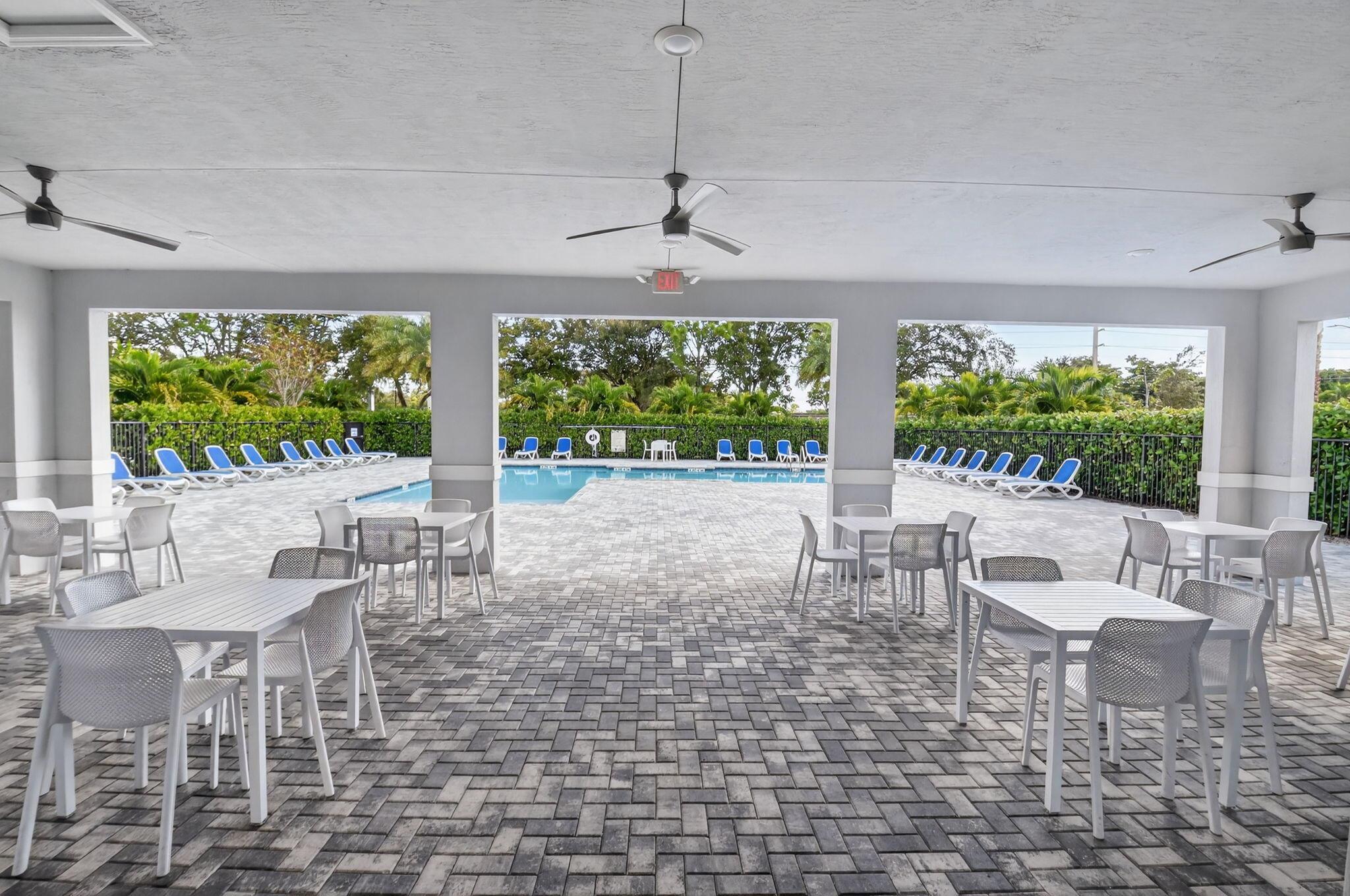 Experience one of the most sought-after layouts, featuring 3 bedrooms plus a versatile den that easily serves as a 4th bedroom or dedicated office, along with 2.5 beautifully designed bathrooms. The open kitchen shines with white cabinetry, luxe quartz countertops, stainless steel appliances, and an in-home laundry area. Entertain with ease at the sleek built-in bar and enjoy tranquil lake views that elevate everyday living. Step outside to an extended paved patio--perfect for relaxing, hosting, or dining al fresco. With impact windows and doors, a 1-car garage, and access to a gated community with a sparkling pool, this home blends comfort, style, and peace of mind. Ideally located near highways, shopping, dining, beaches, and supermarkets, convenience is truly all around you.
