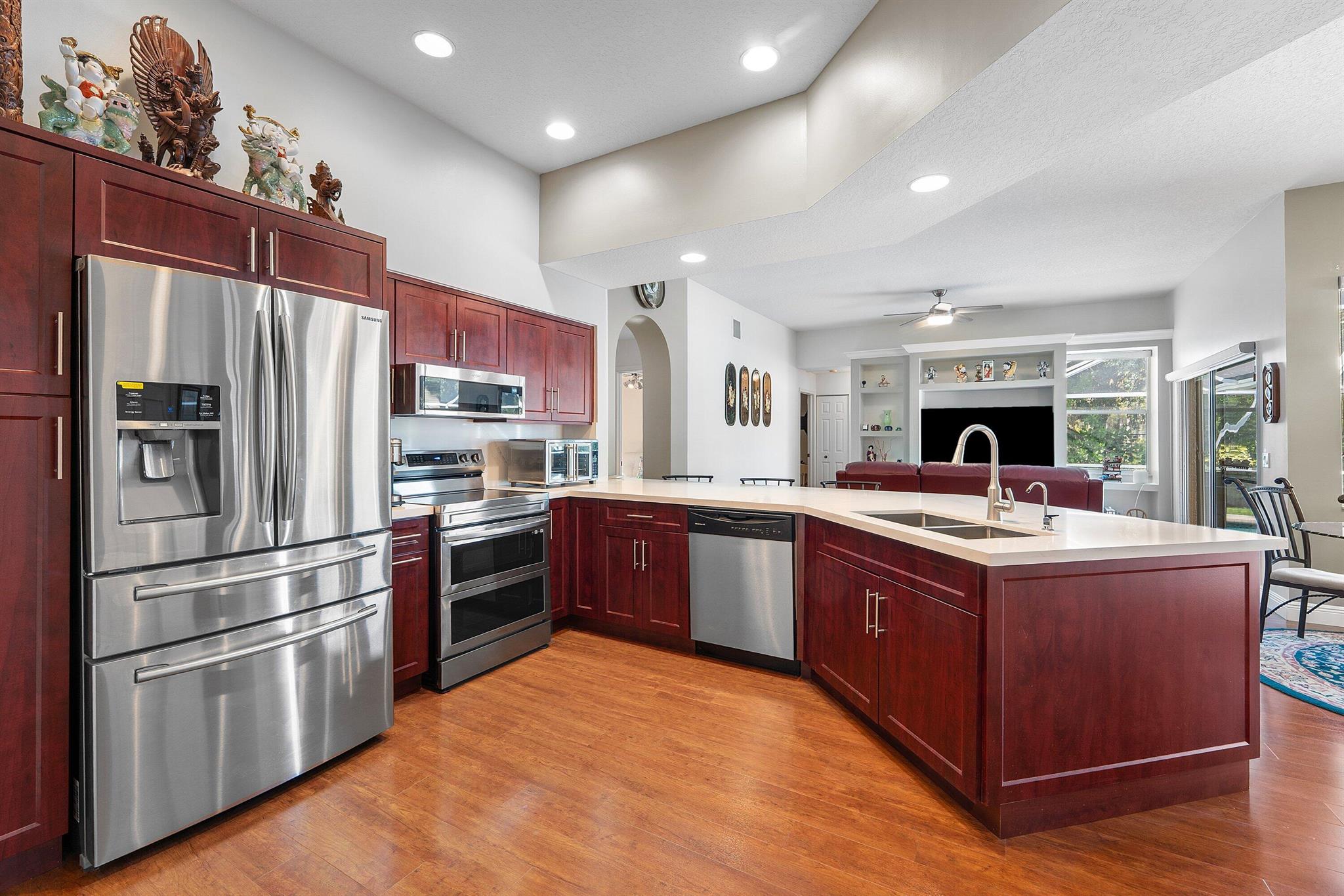 All Ages Welcome - Stunning Pool Home in Gated Community. This beautifully remodeled 5-bedroom, 3-bathroom home with a 2-car garage offers the perfect blend of comfort and style. Featuring an amazing split floor plan with 3 separate bedroom zones, it's ideal for families or guests seeking privacy. Freshly painted exterior, newer roof (2024), circular driveway. Modern kitchen with soft-close drawers, quartz countertops, and matching backsplash.Screened patio and sparkling pool - perfect for gatherings and relaxation.Sprinkler system on well water for easy lawn care. Located in a prime area near Equestrian Grounds, Wellington Mall, shopping centers, restaurants, Lion Country Safari, and with easy access to the airport, this home combines convenience with resort-style living.