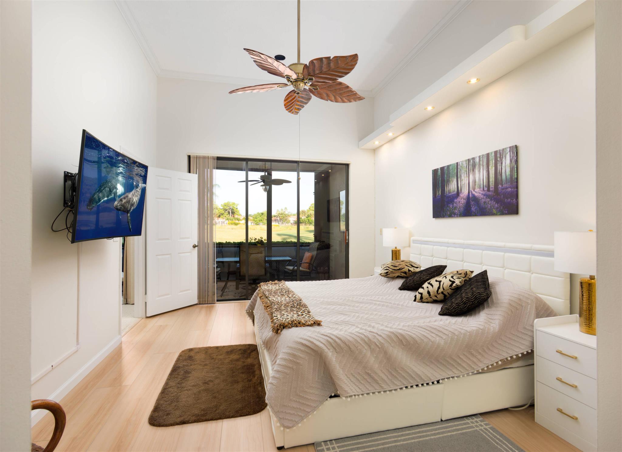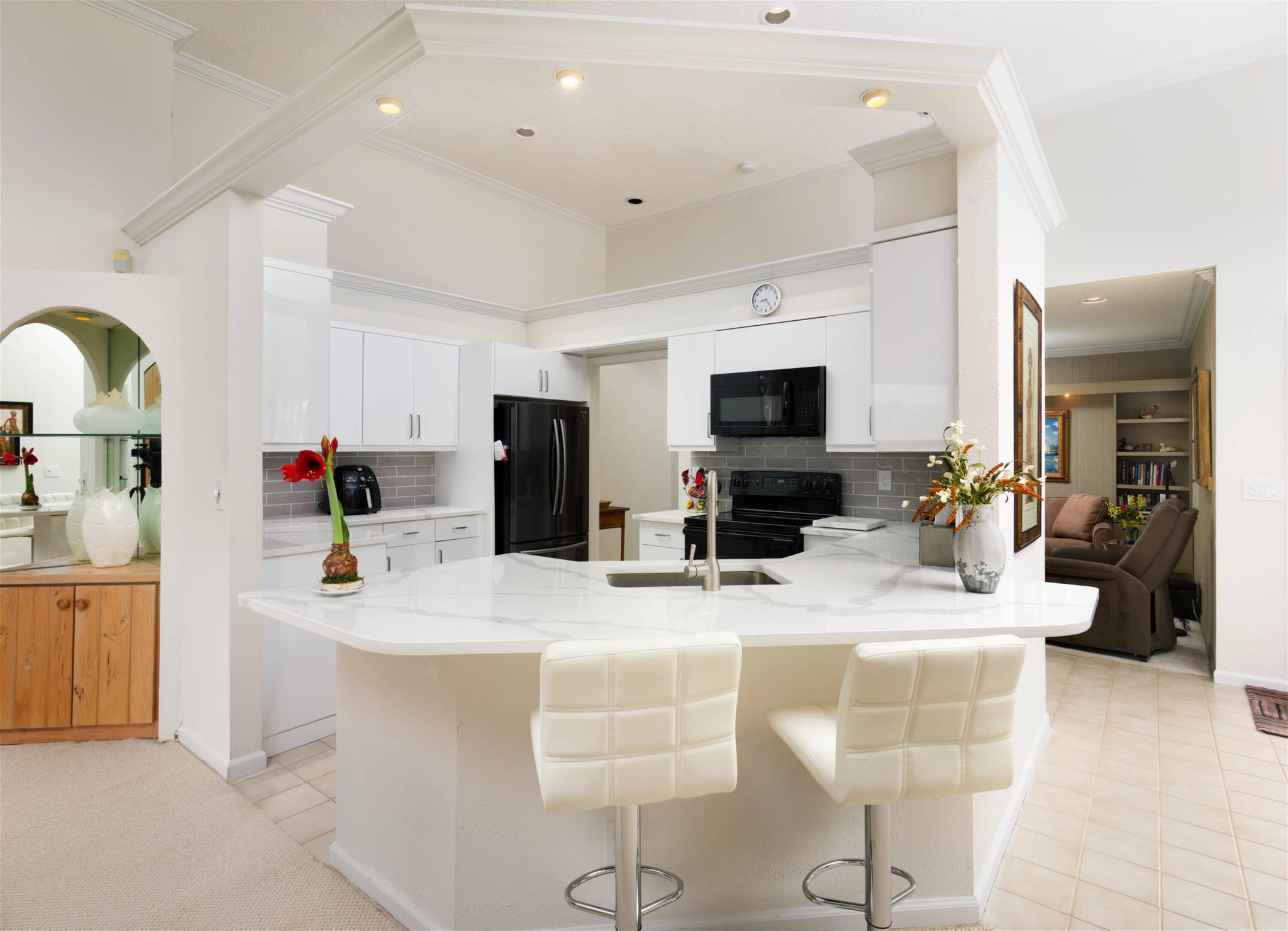 Set along the picturesque fairways of PGA National, this beautifully maintained single-story townhouse offers an inviting blend of comfort, style, and effortless indoor-outdoor living. Bright and airy with high ceilings and abundant natural light, the open-concept living and dining areas flow seamlessly to a covered, screened patio overlooking the golf course and tranquil lake beyond--an ideal setting for morning coffee or evening relaxation. The kitchen features crisp white cabinetry, marble-look quartz countertops, and a sleek glass subway tile backsplash, along with a convenient snack bar perfect for casual dining or entertaining. A flexible den/office provides an additional living space that can easily serve as a third bedroom. The spacious primary suite is a peaceful retreat, enhanced