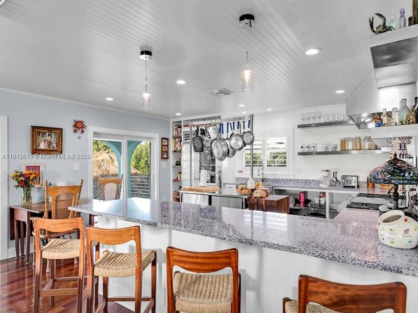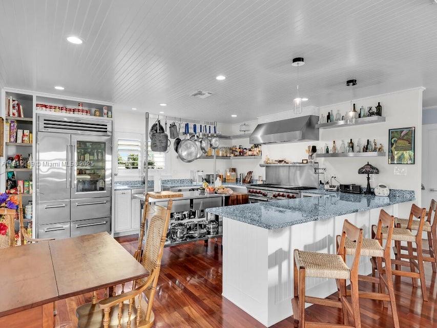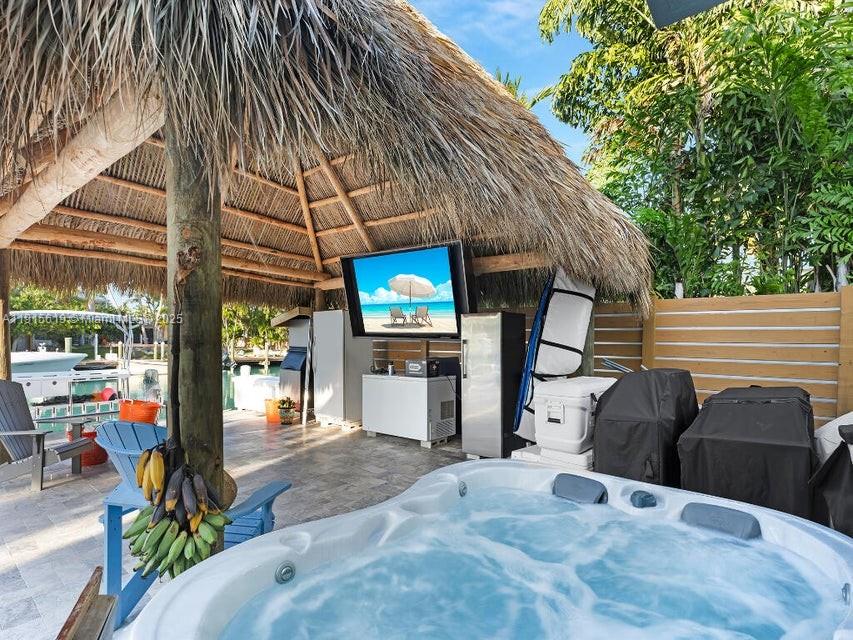 This 2 bed 2 bath home on the second floor. Recently gone through major renovations from top to bottom- inside out. Open concept with brazilian wood floor, fully furnished, chefs kitchen with top of the line wolf appliances. A warp around balcony to enjoy the water and spectacular sunset views. On the lower level you have a one car garage used as storage a separate laundry room, cabana bath and a room. New pool with jacuzzi, hot tub and a tiki hut with a TV. A 75ft dock