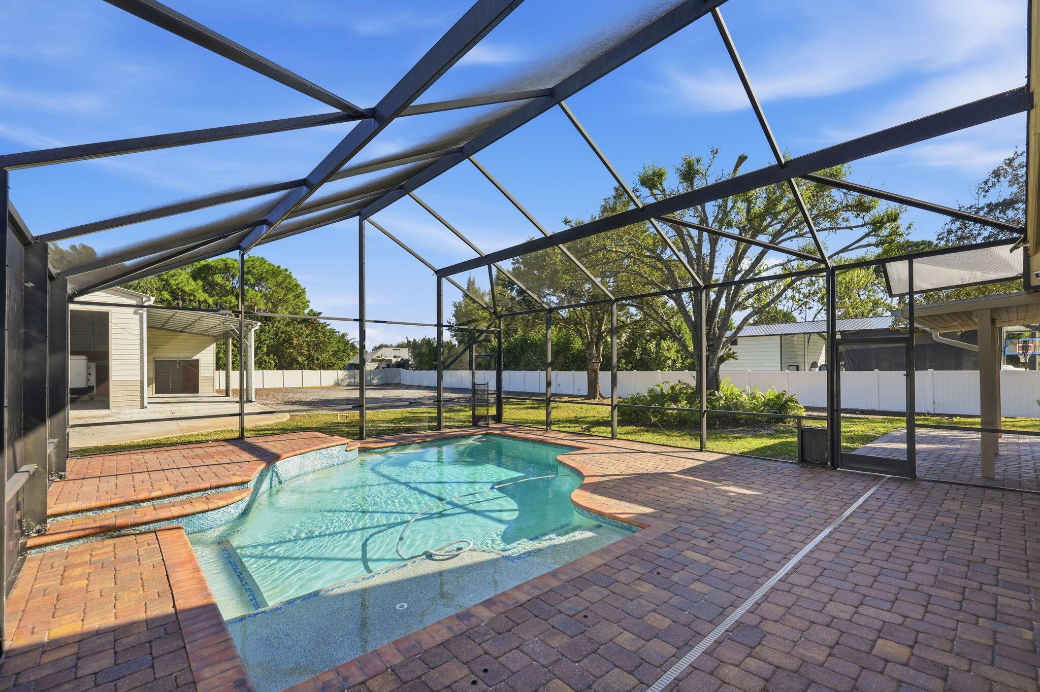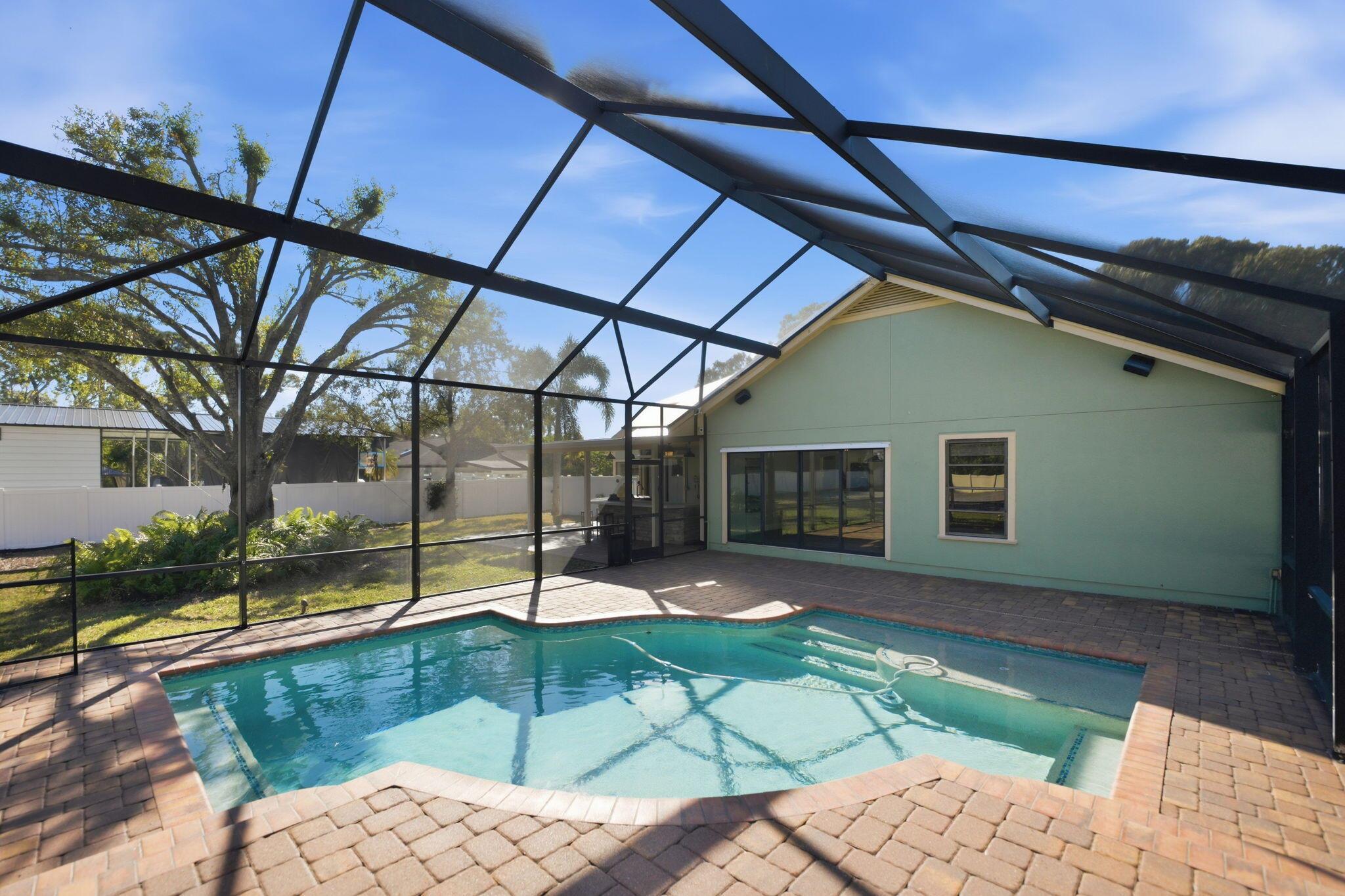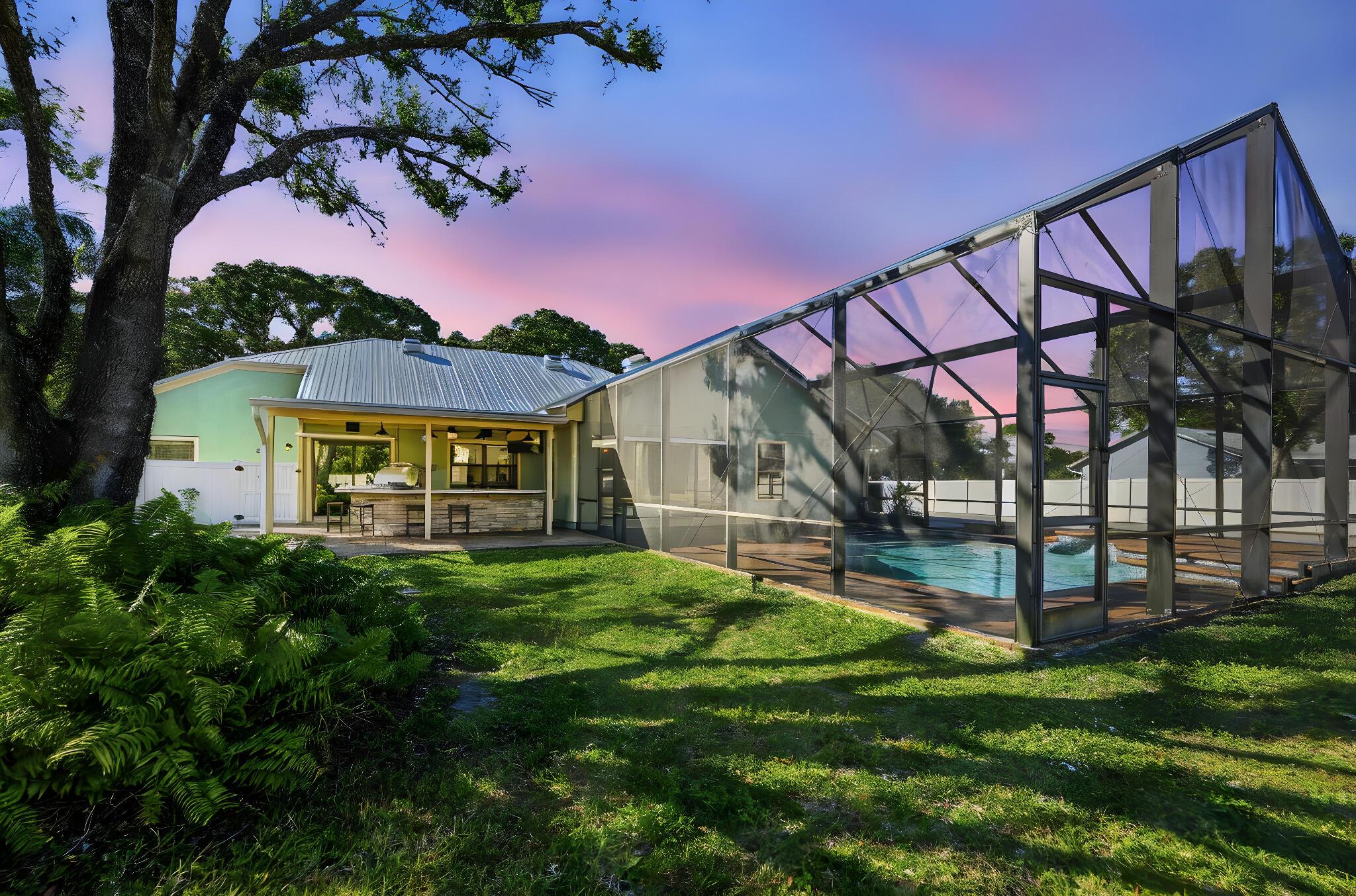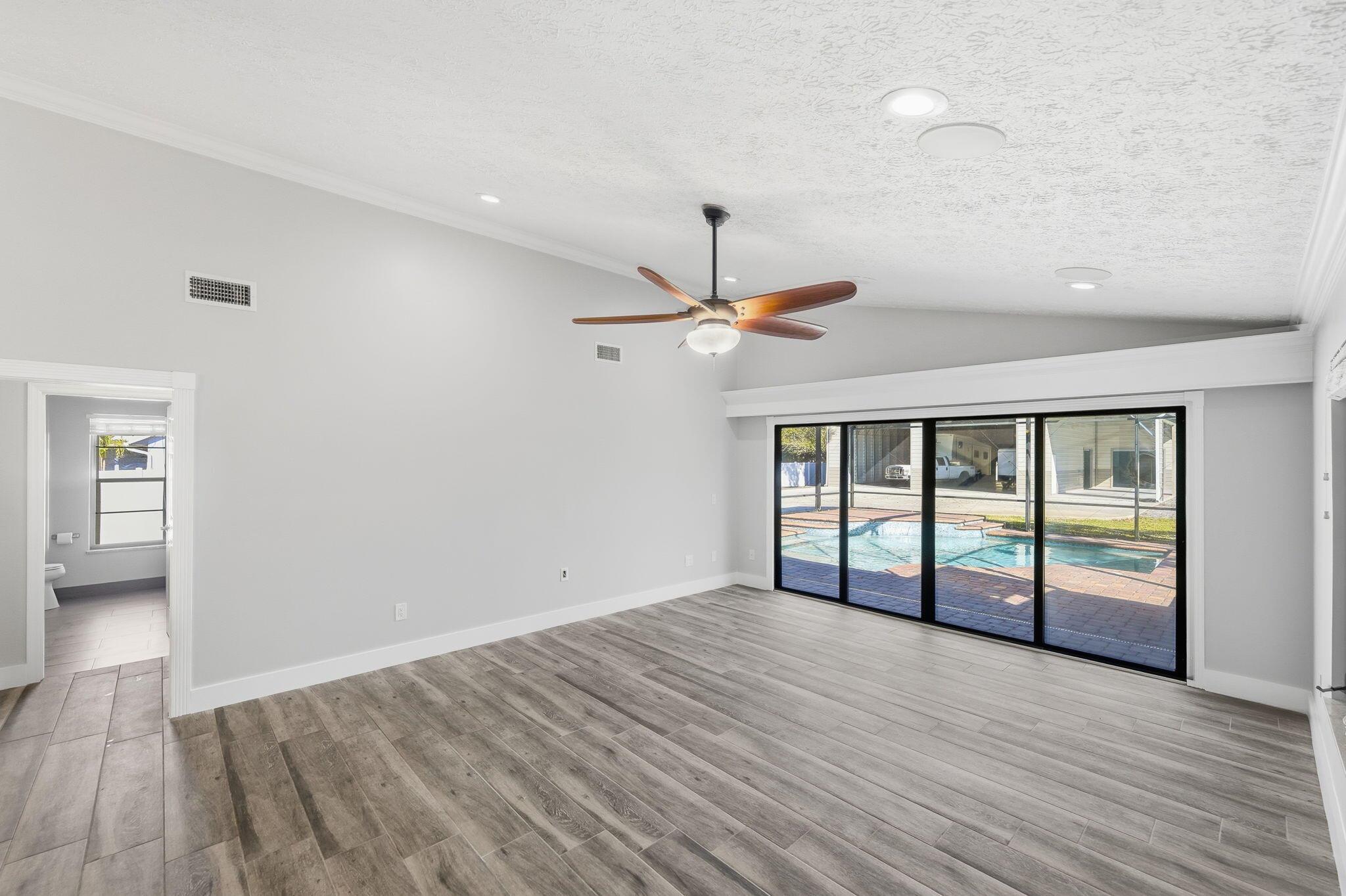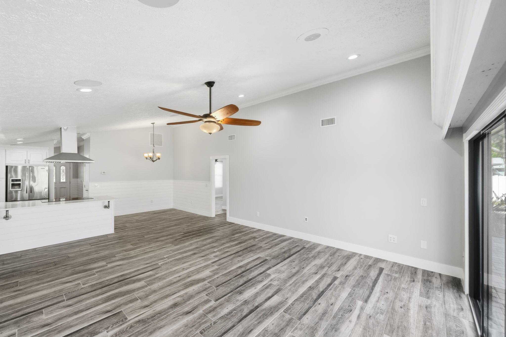Located on 0.91 acres, this well-maintained home features numerous updates and versatile living spaces. Interior features include 3 bedrooms, 2 full baths, a primary suite with soaking tub and separate shower, a separate living room, open family room, and flexible dining/bonus room. The kitchen offers an induction cooktop, soft-close cabinetry, quartz countertops, a ceramic farm sink, and updated appliances. A bar area with wine storage and a separate laundry room add convenience for entertaining. Fresh paint, crown molding, canned lighting, and integrated sound complete the interior. Exterior highlights include a newer roof and gutters (2022), dual AC, fully fenced yard with electric gate, and a covered summer kitchen updated in 2025 with grill, sink, fridge, and pavers. The heated